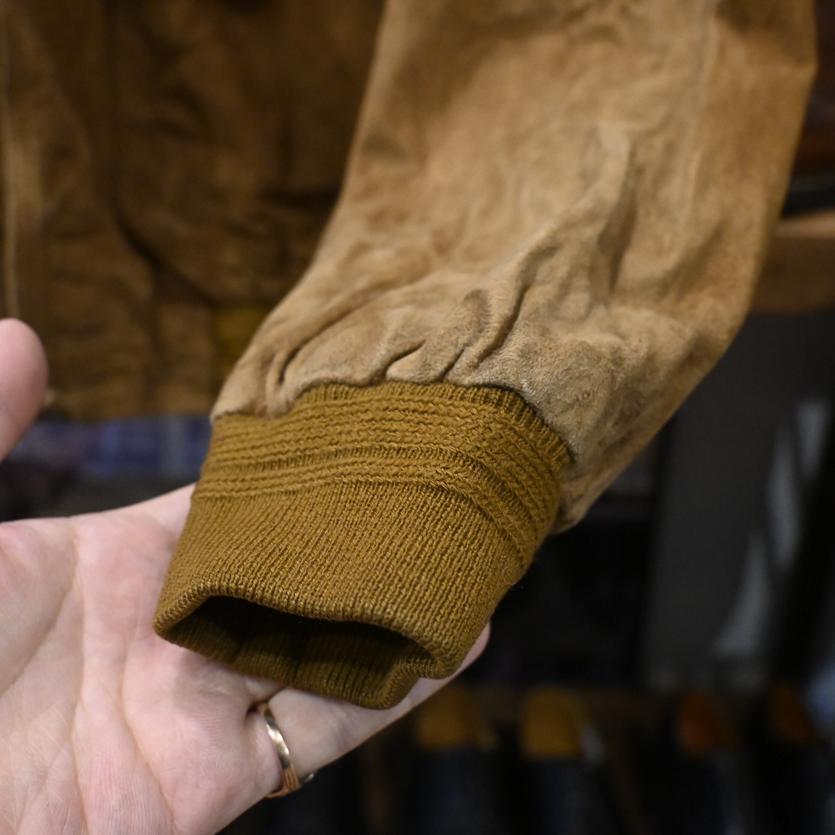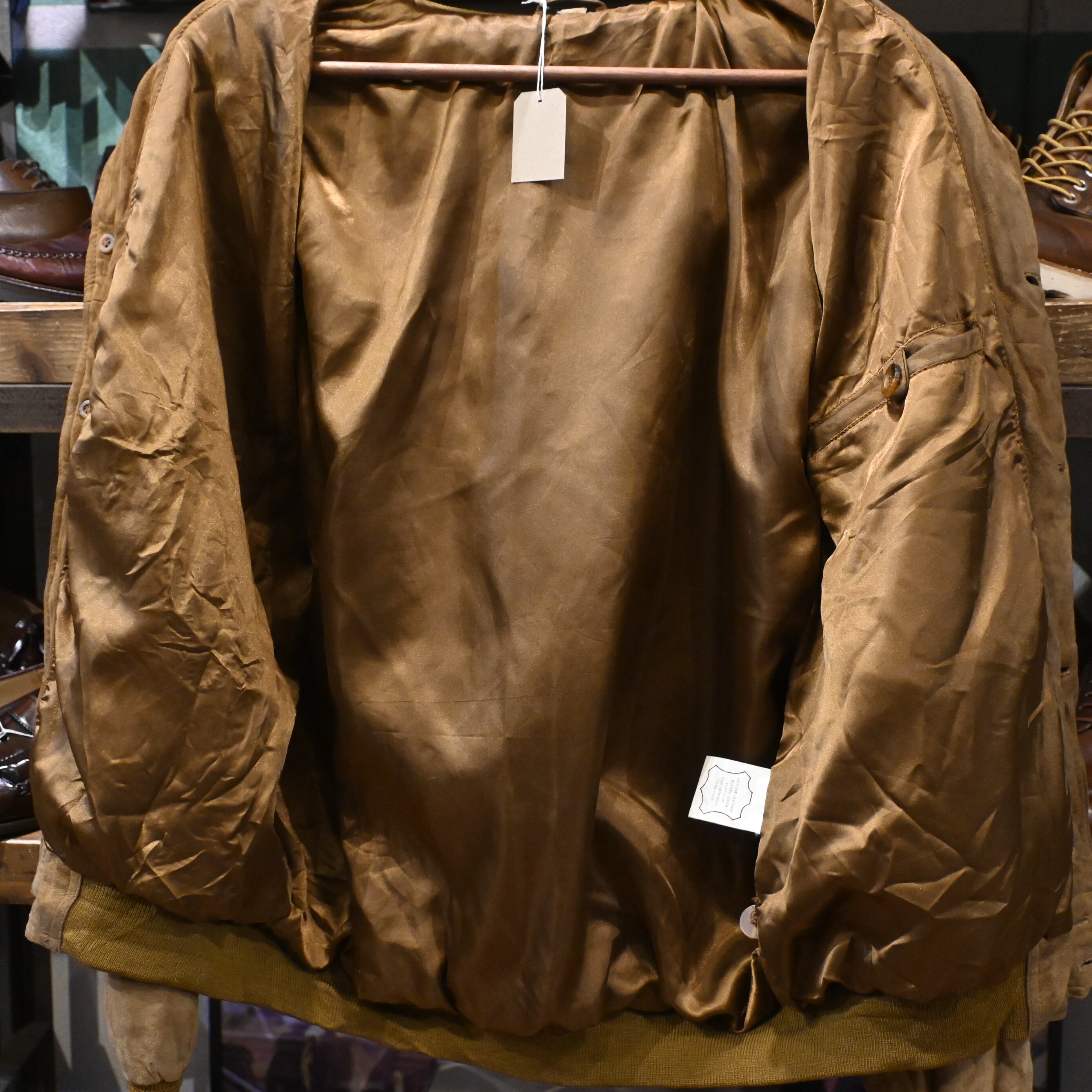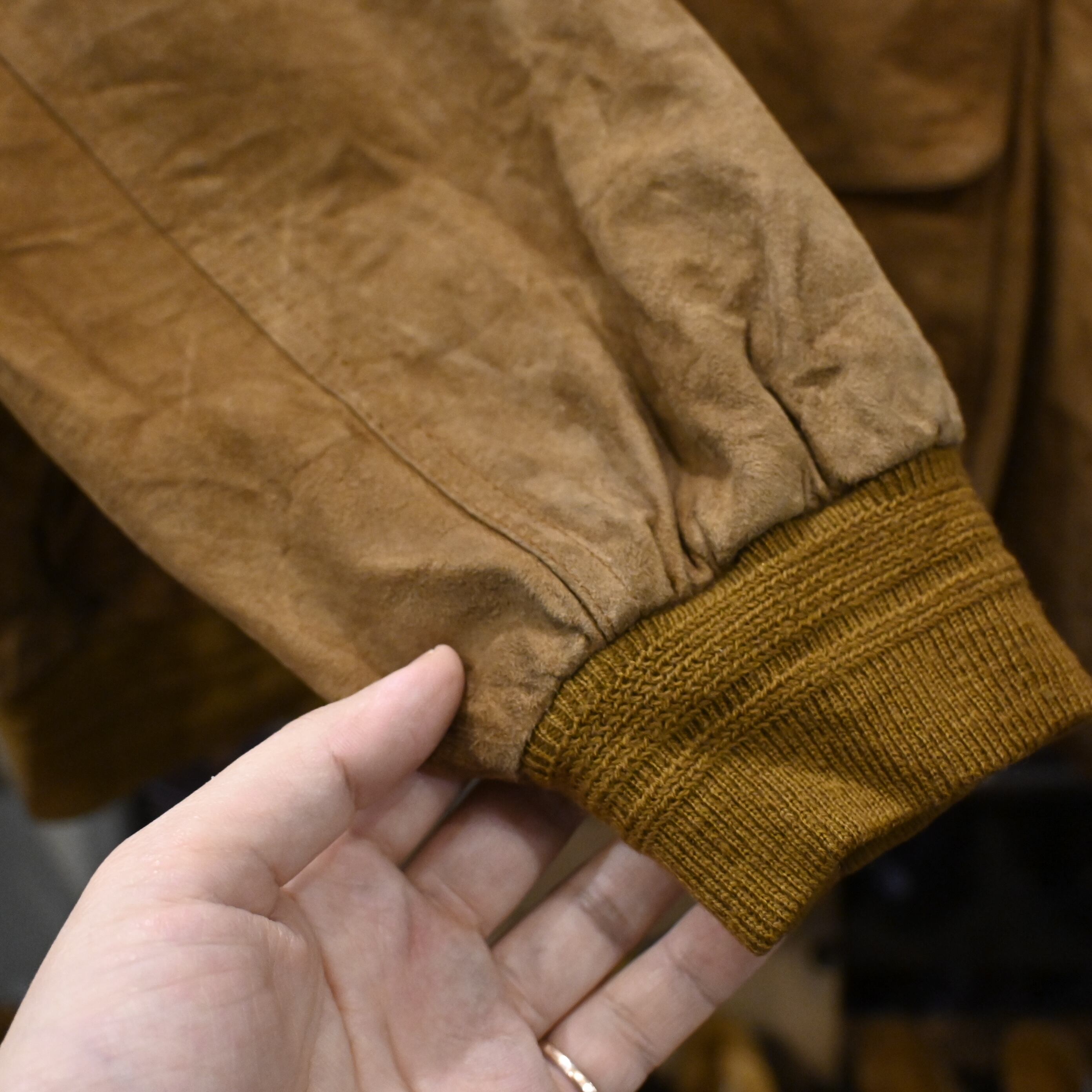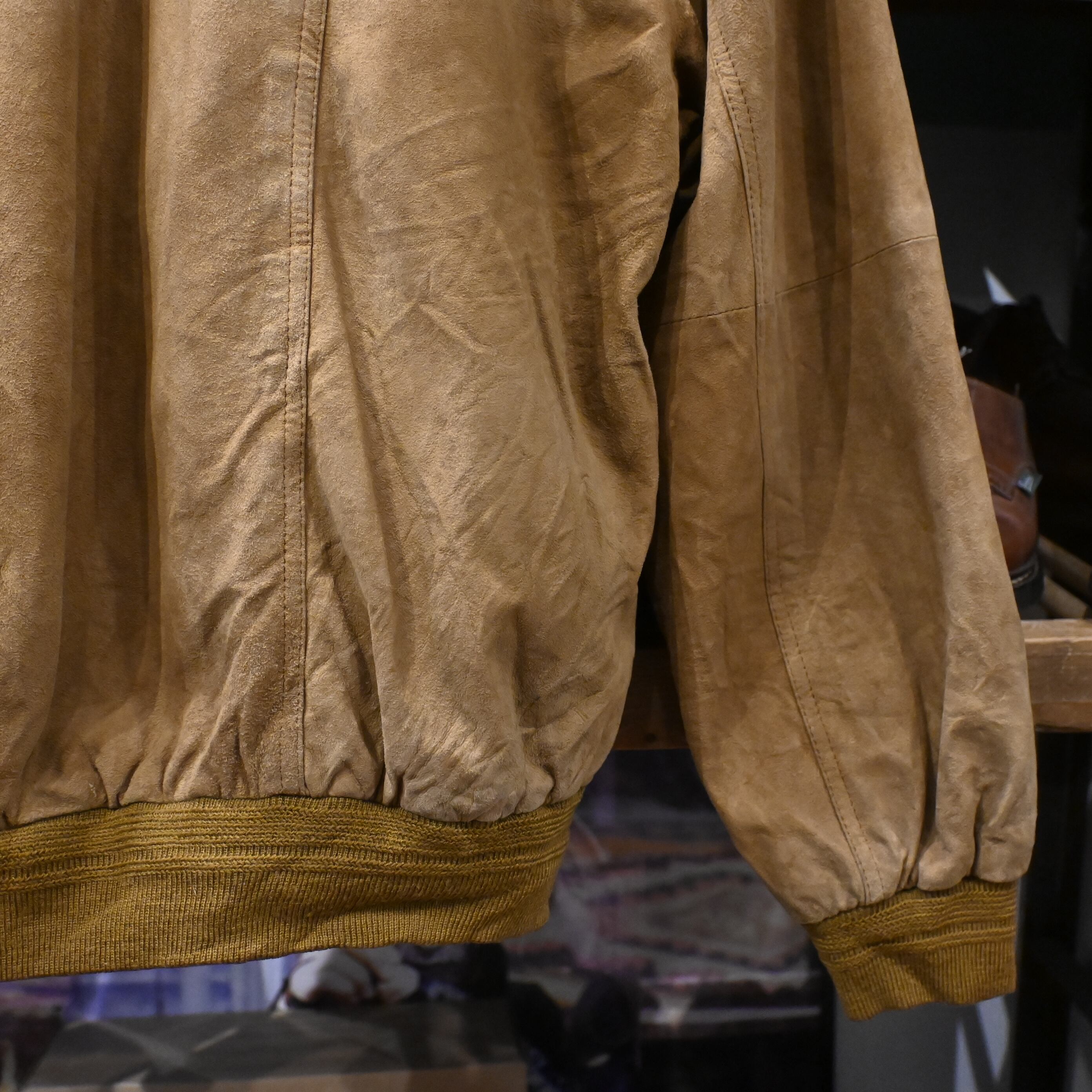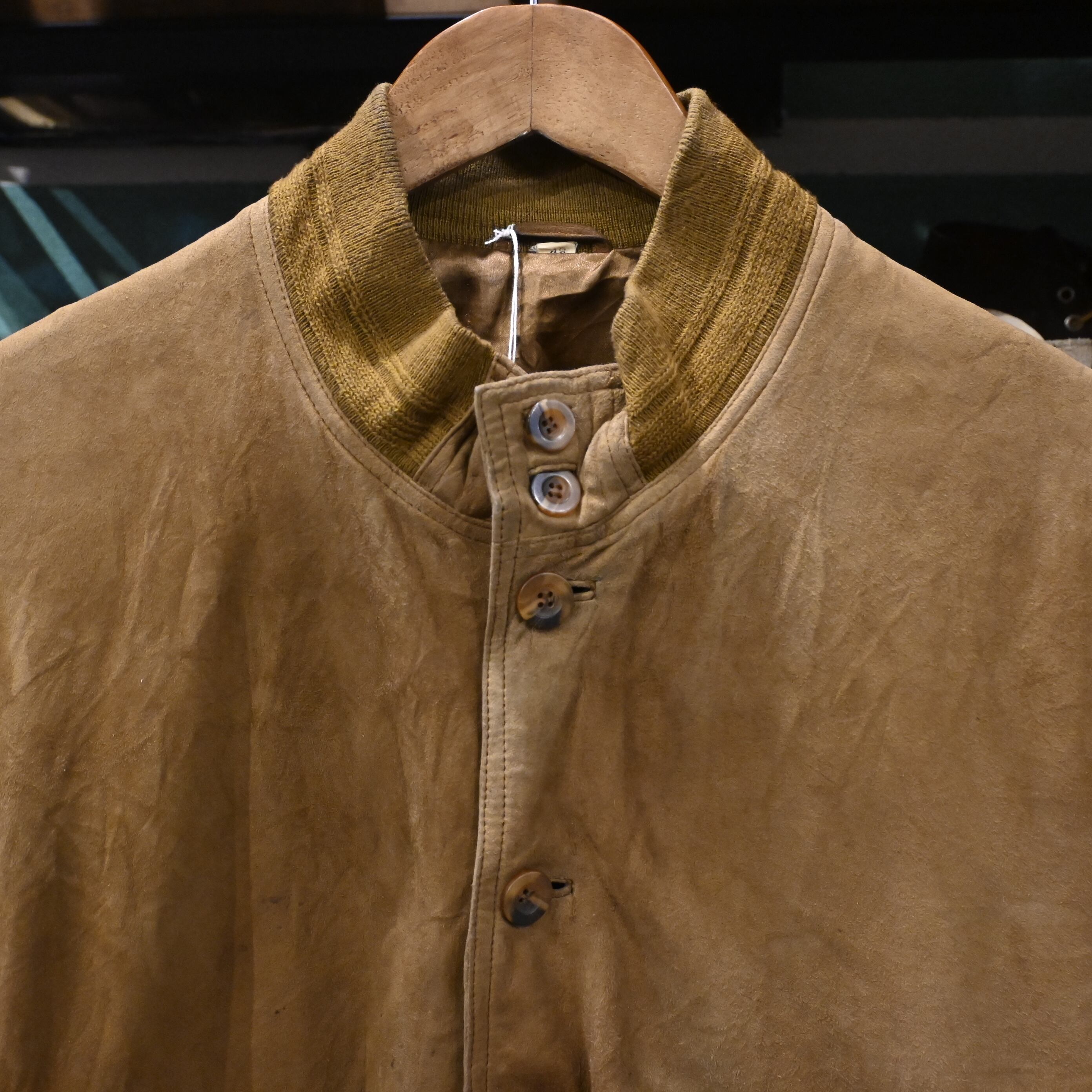 しっとりとした質感のスエードレザーを使用し、長年の着用によって生まれたムラ感・色の濃淡が非常に雰囲気のある一着です。