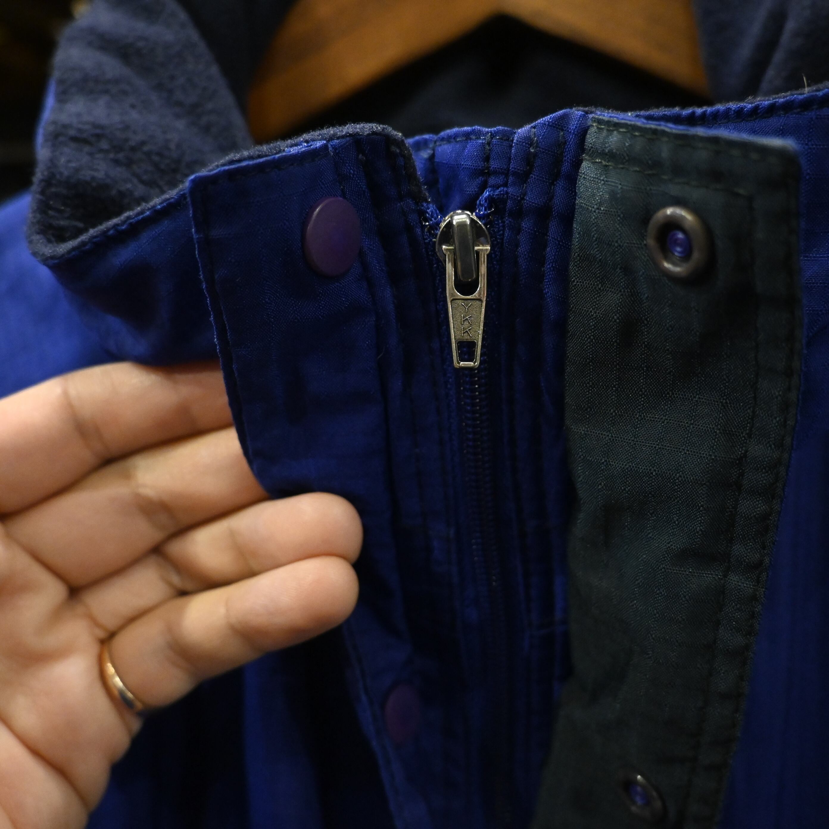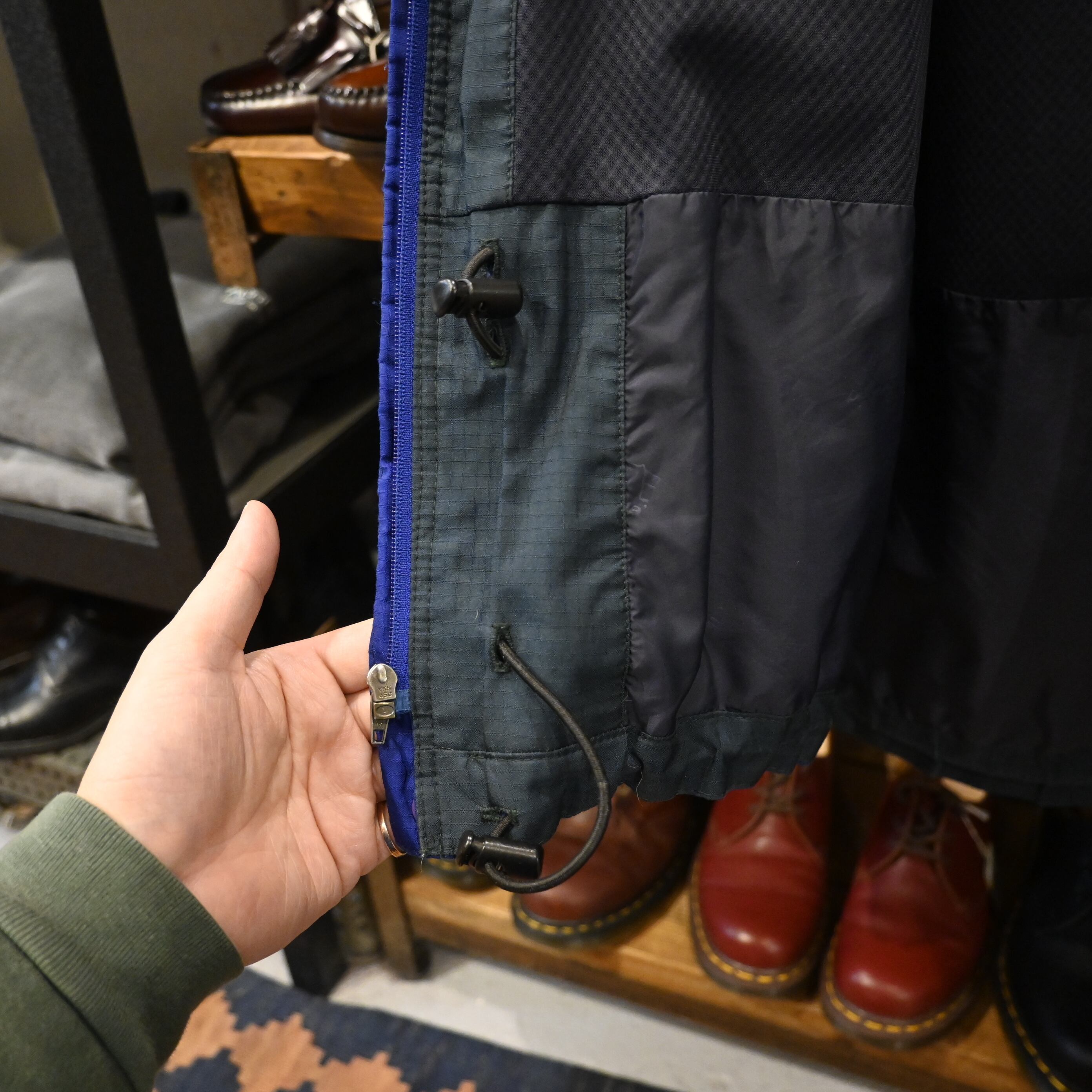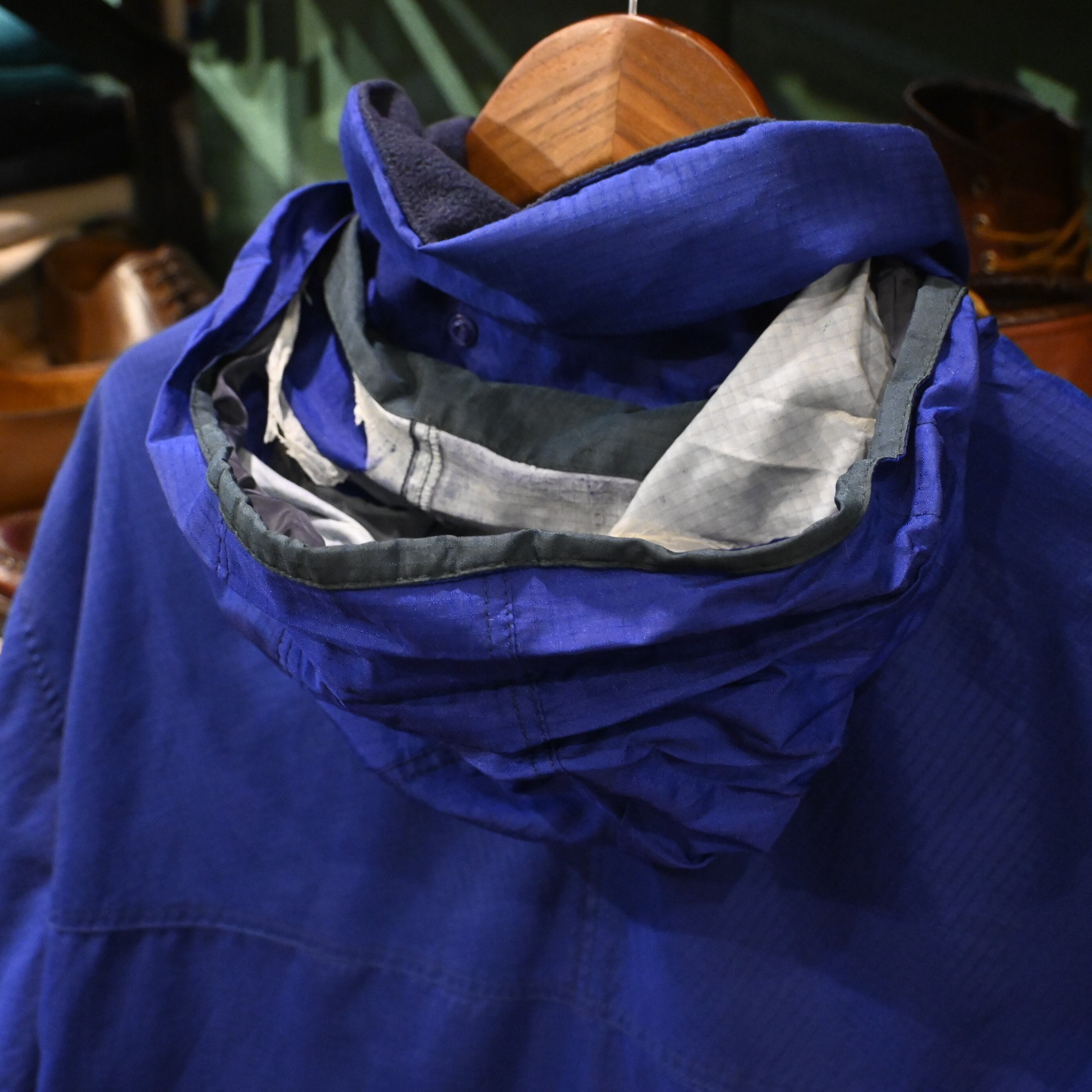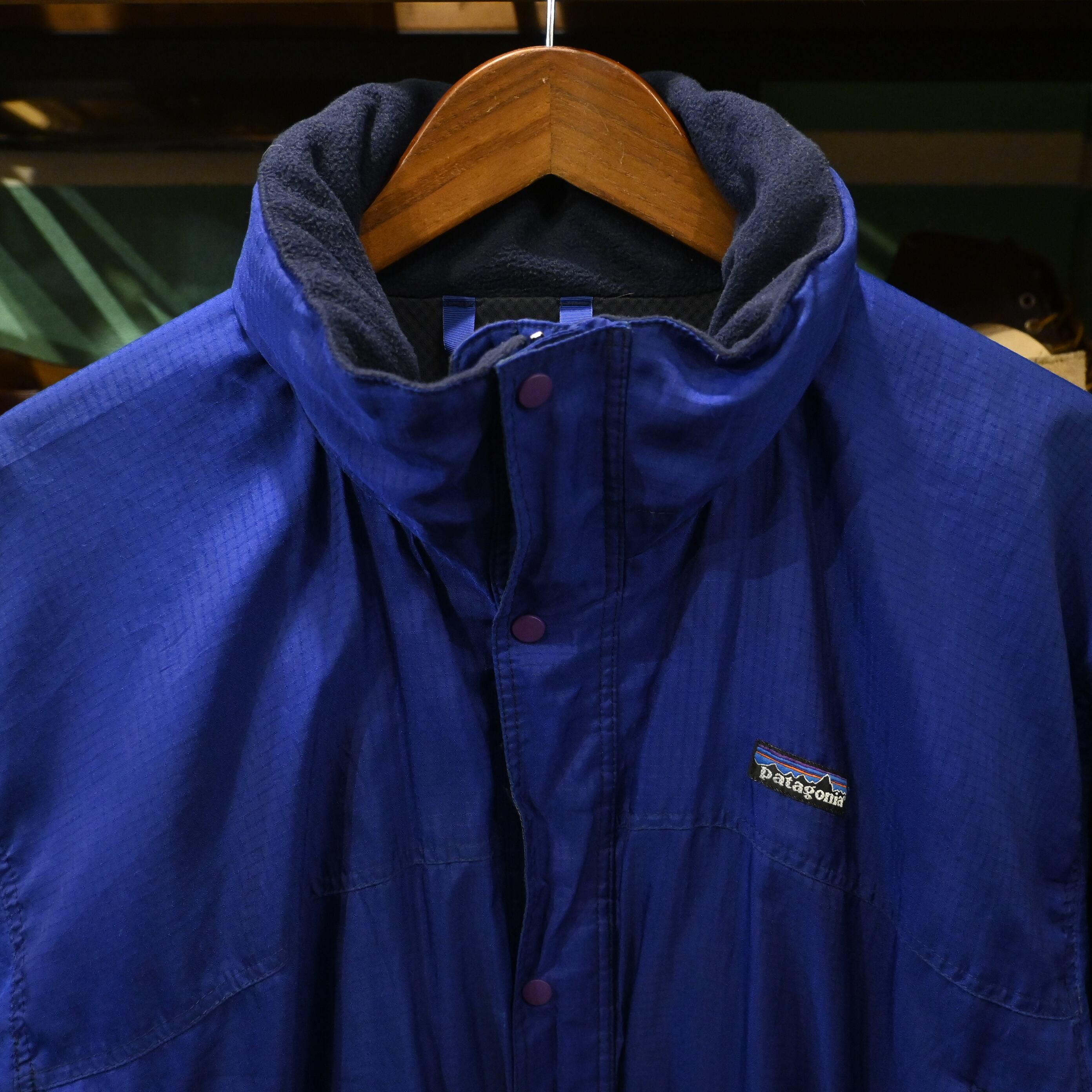 発色の良いブルーカラーが目を引く、当時のパタゴニアらしい機能美とカラーリングが魅力の一着です。