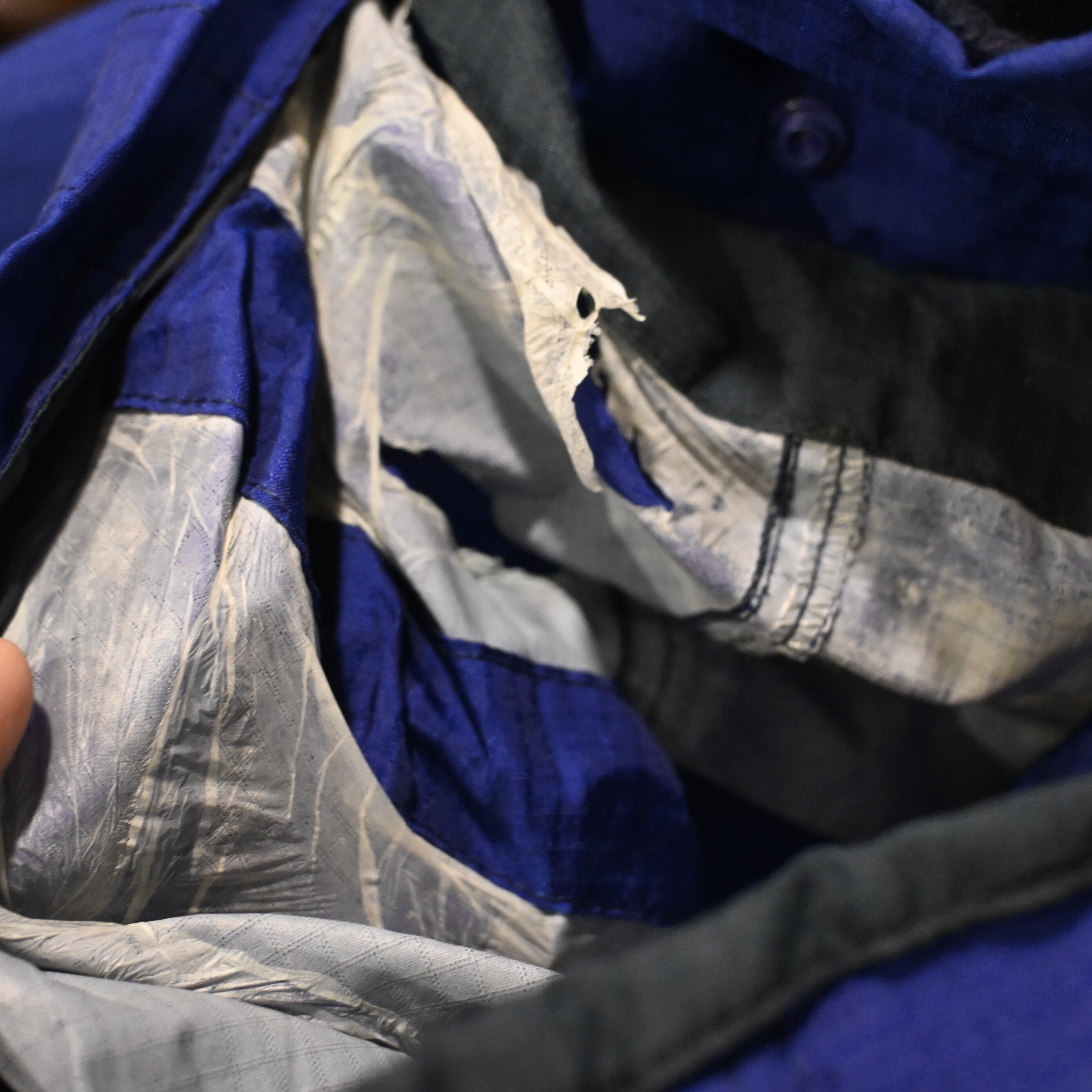 USED フードの内部ダメージあり(フード収納可能)。首元後ろ側ピンホール。