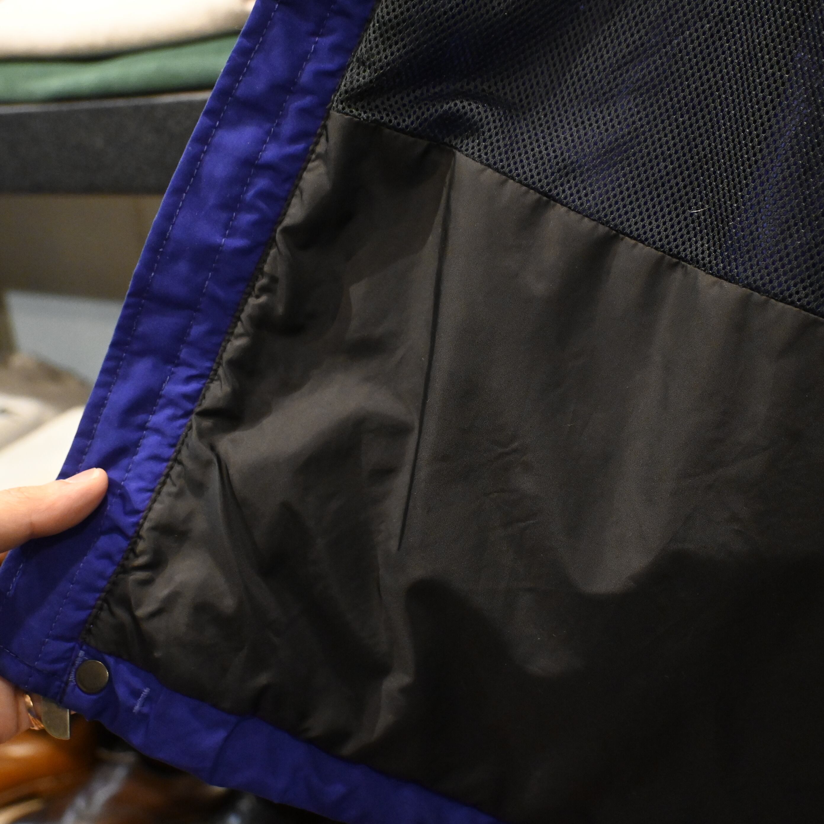 2000年代初頭らしいややゆとりのあるシルエットで、スウェットやフリースの上からも着用しやすいサイズ感。