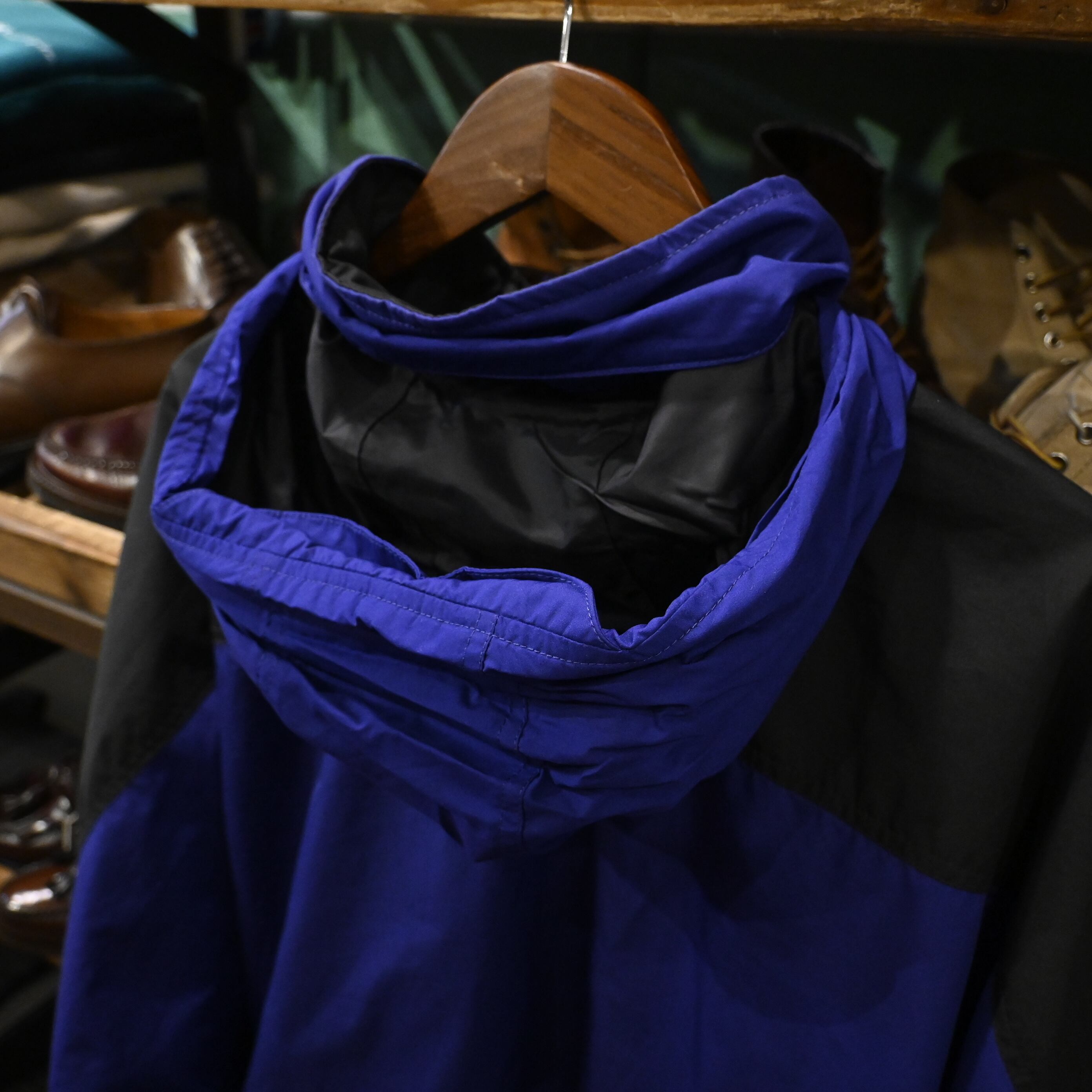 ブランド定番の切り替えデザインを踏襲した、ブルー×ブラックのツートーンカラーが印象的な一着です。