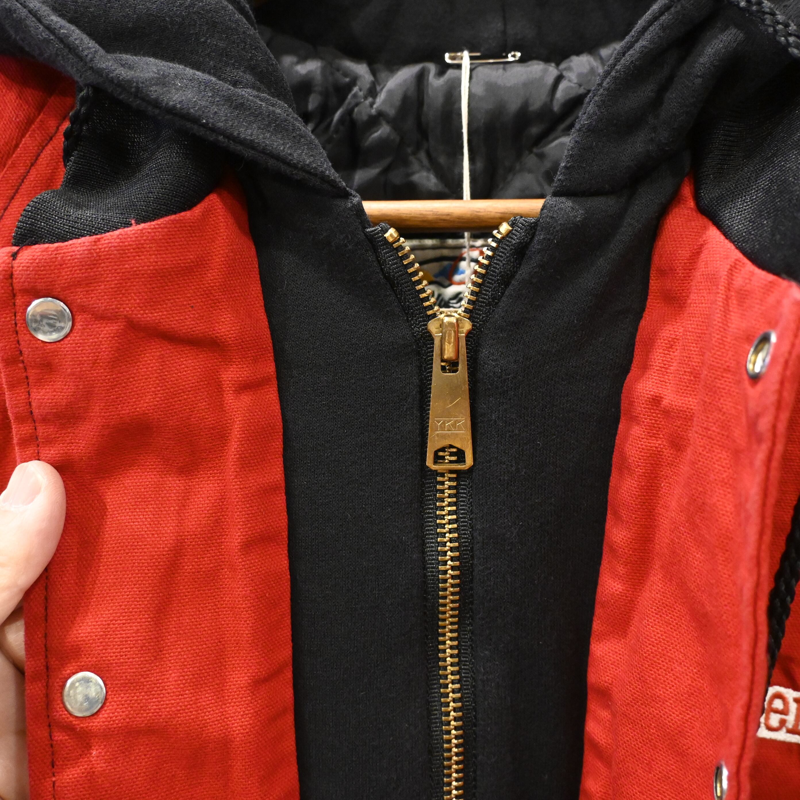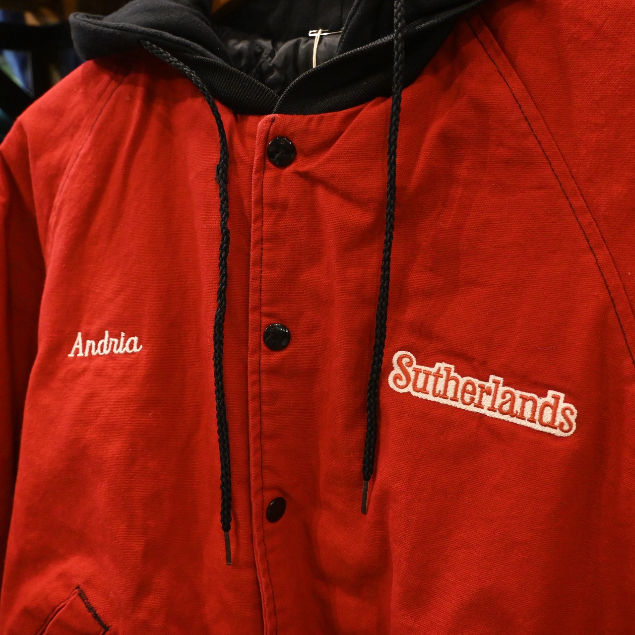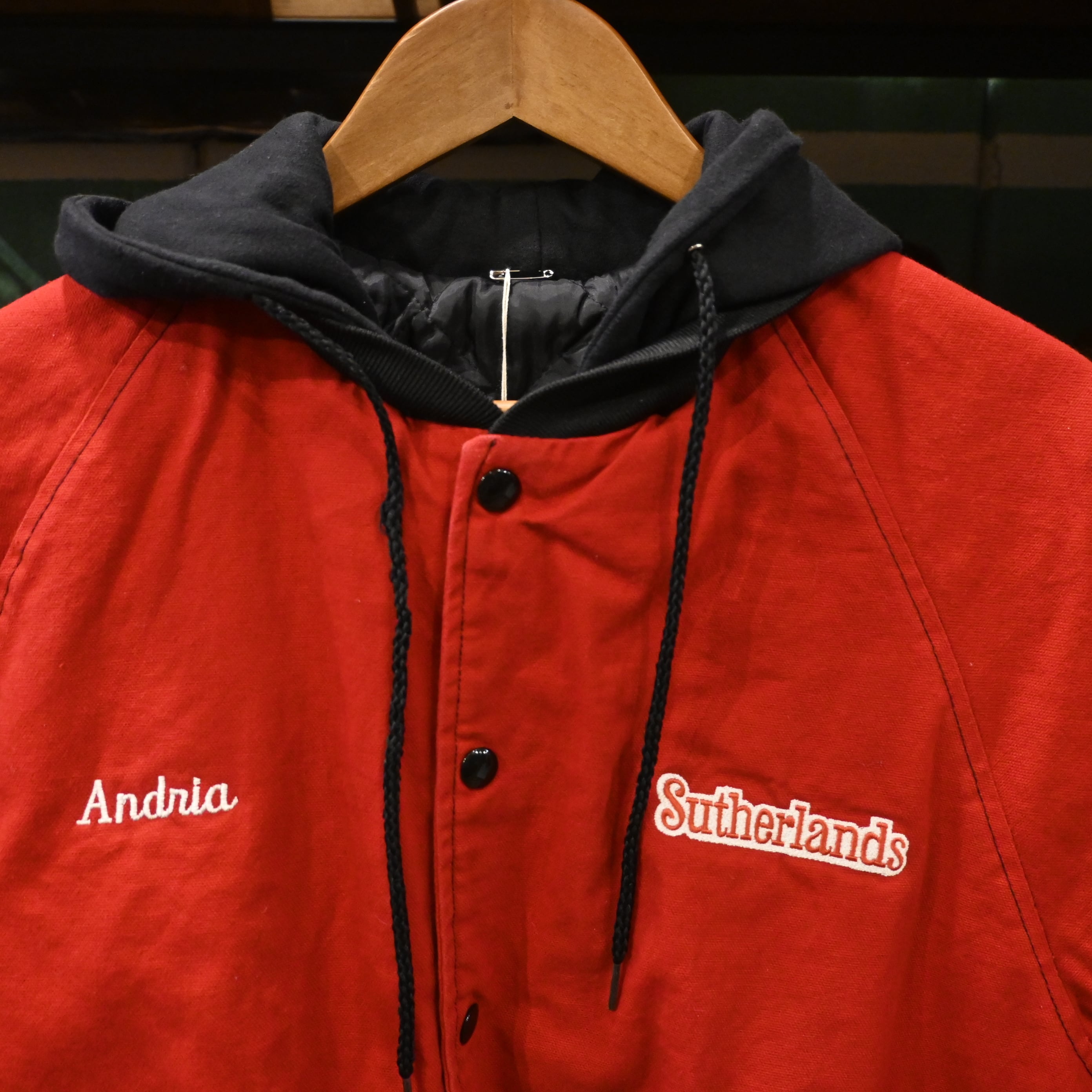 【L / USA製】Sutherlands 刺繍 フード付き コーチジャケット キルティングライナー Red / 80-90s Vintage