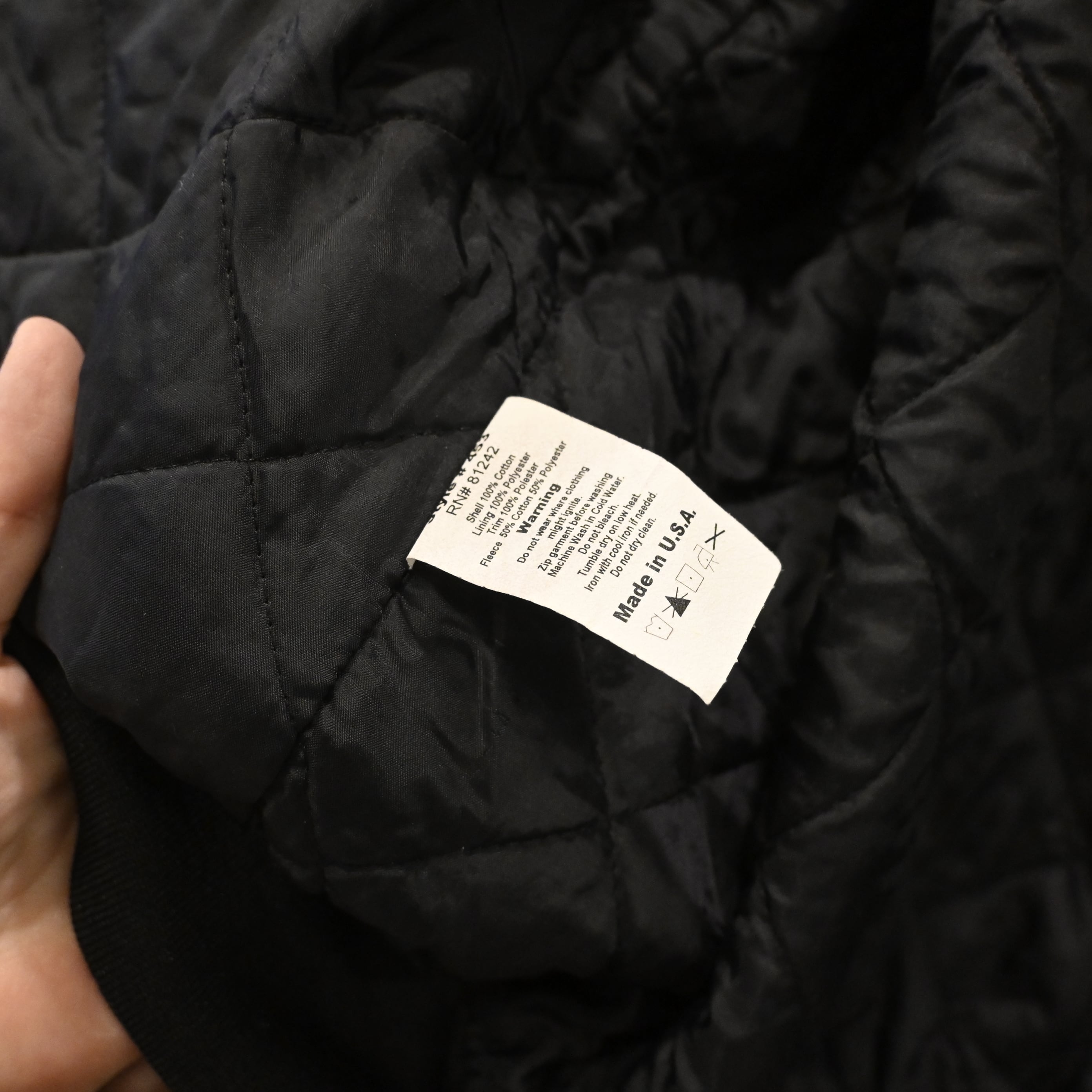 裏地は中綿入りキルティング仕様で、防寒性も確保された実用的な作り。