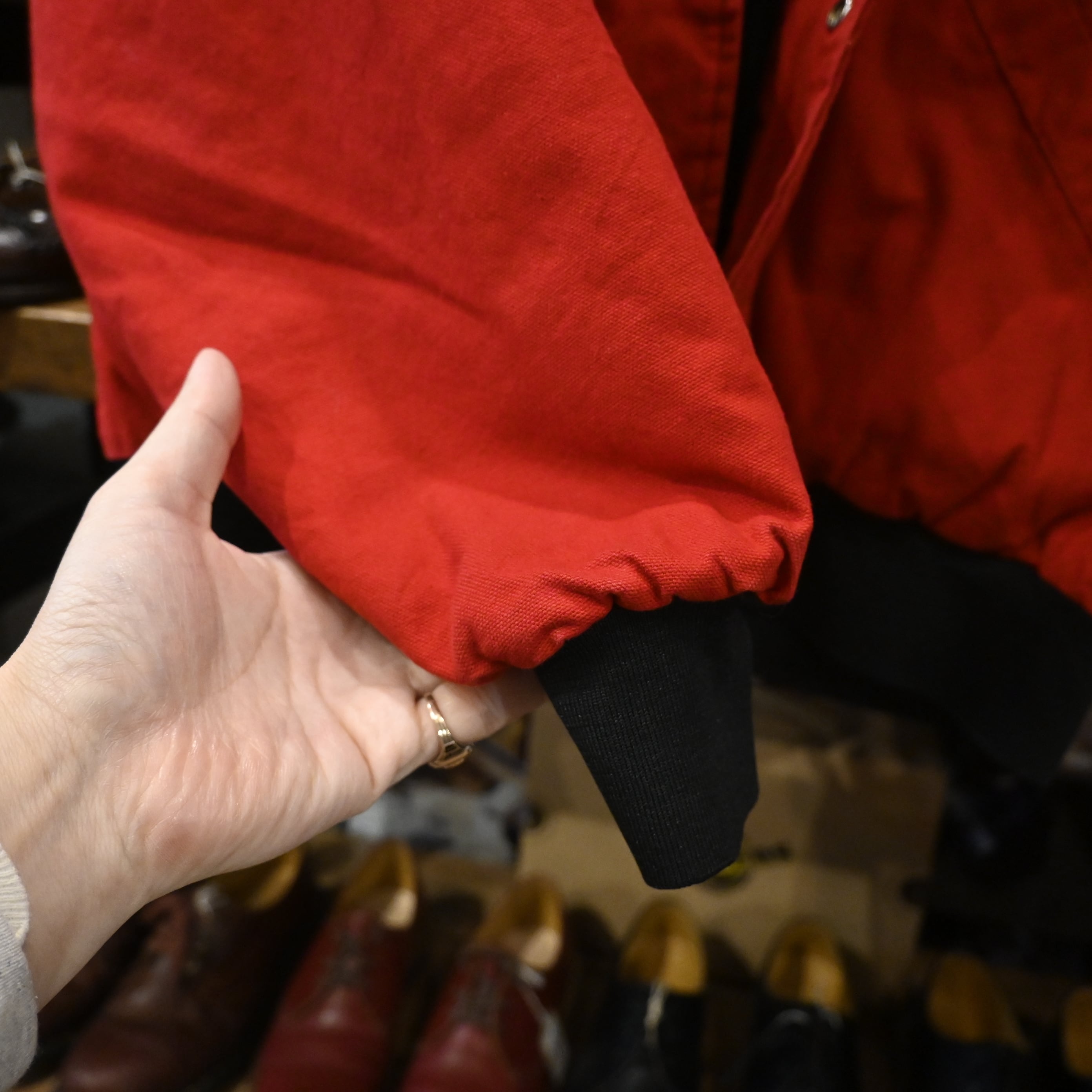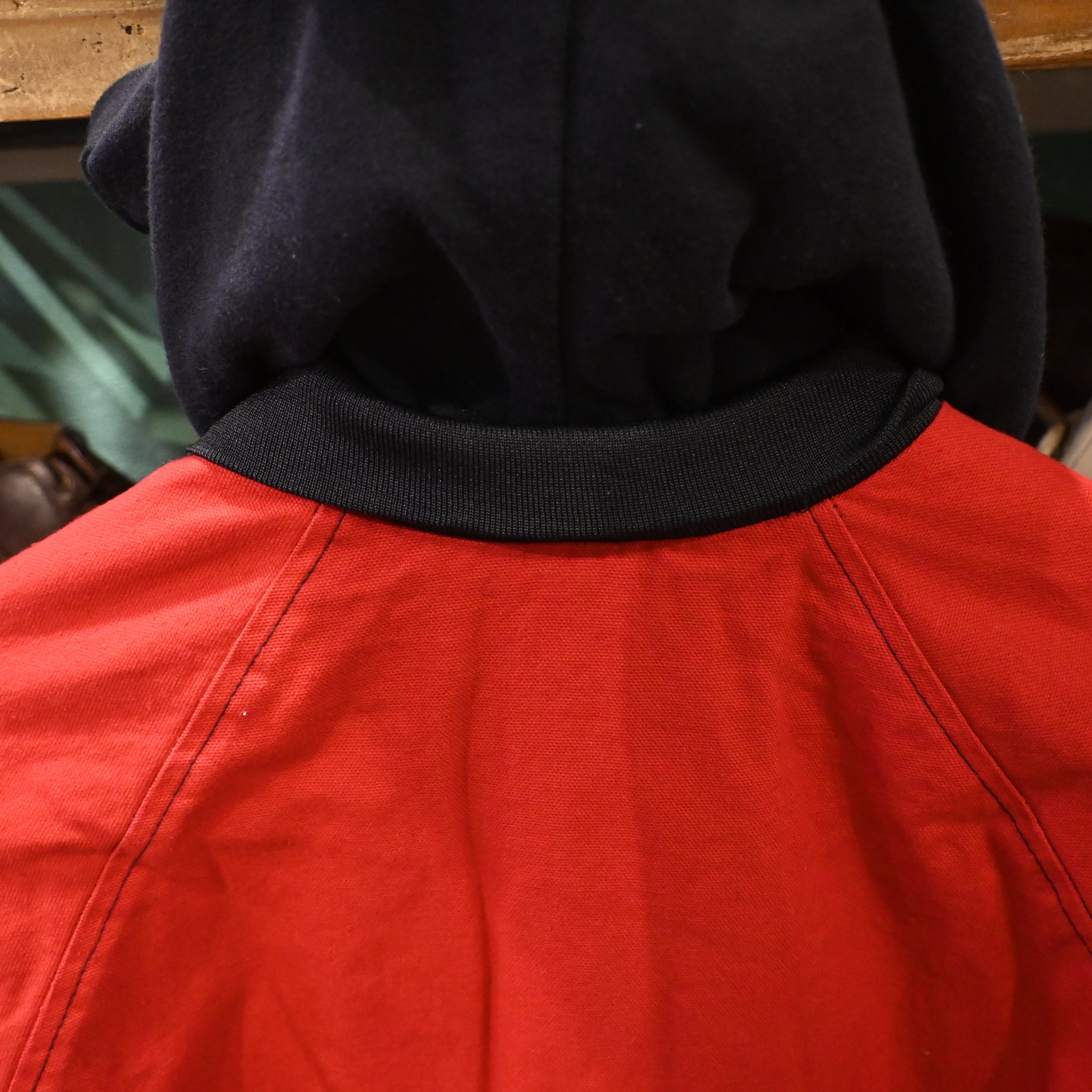ボディは発色の良いレッドに、ブラックフードの切り替え。