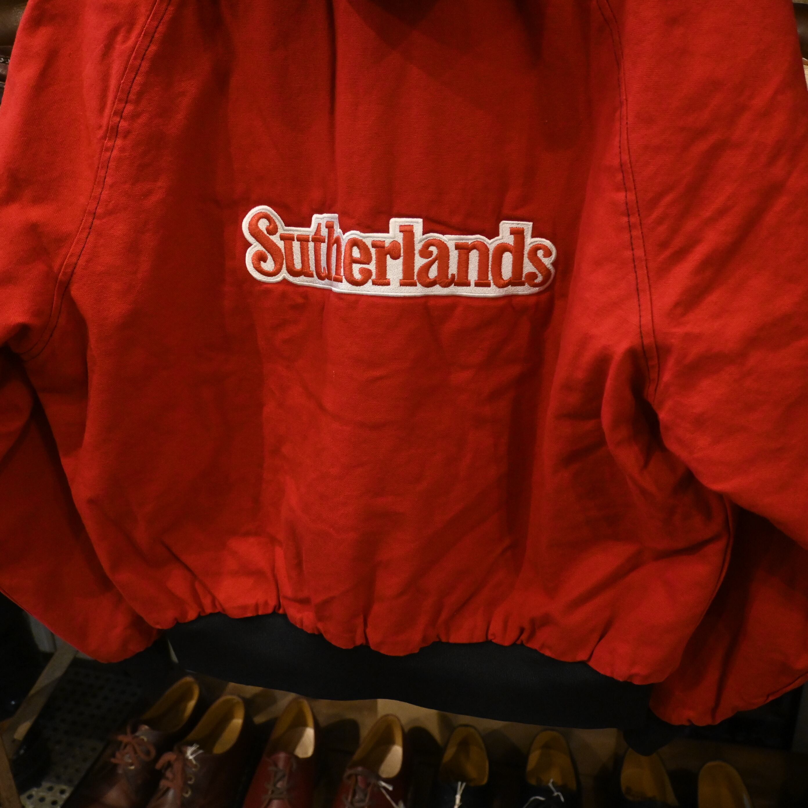 フロントと背面には「Sutherlands」の刺繍、胸元には個人名と思われるネーム刺繍が入り、実際に使用されていた背景を感じさせる一点物ならではの存在感があります。