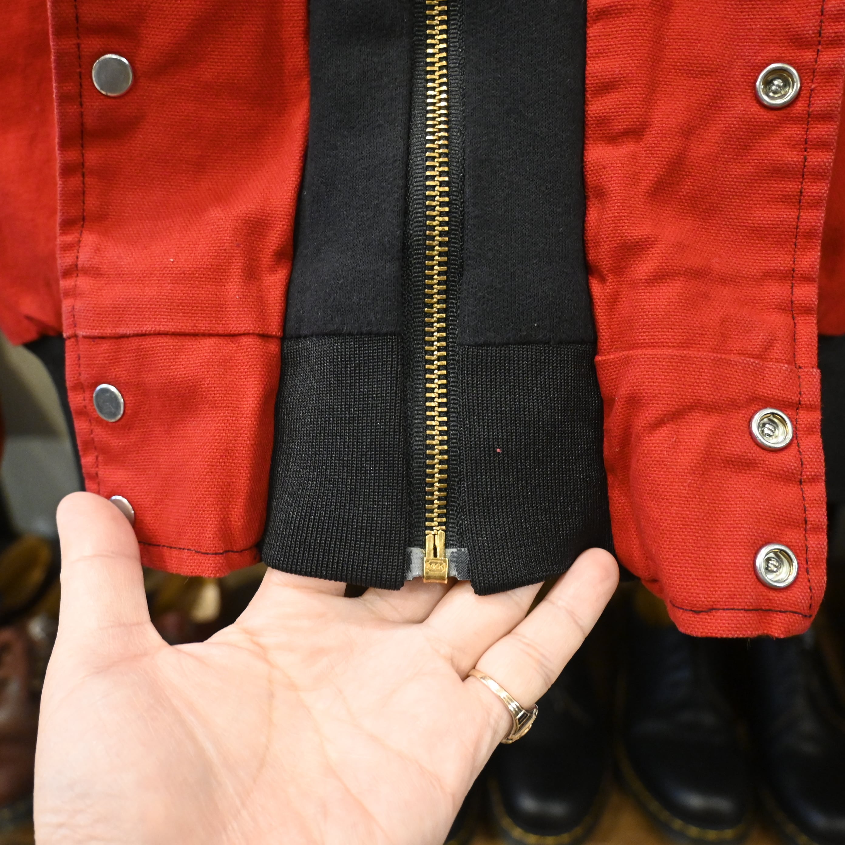 フロントはスナップボタン+ジップの二重構造。