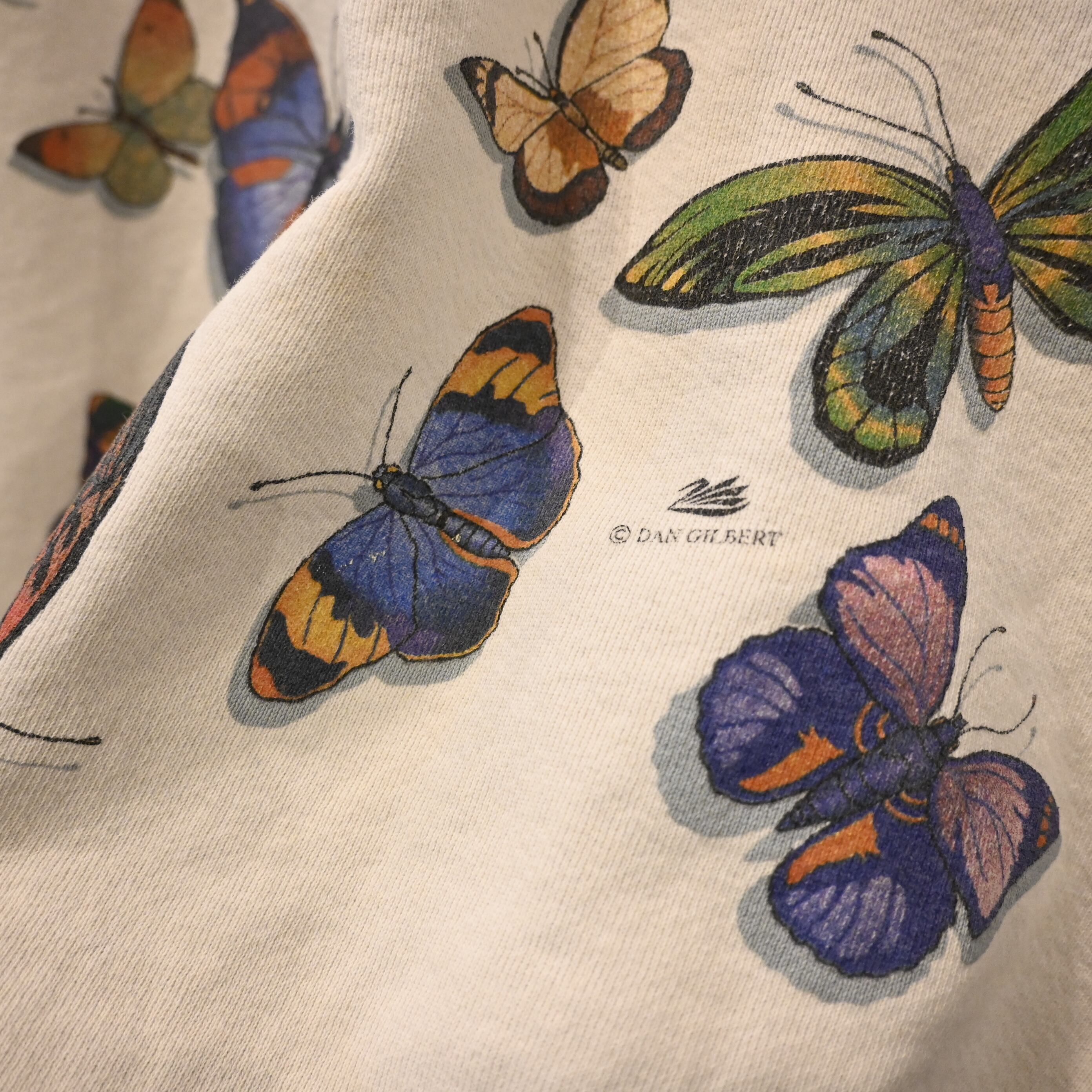HARBORSIDE GRAPHICSによる、バタフリーモチーフのアートプリントが印象的なヴィンテージスウェット。90年代〜2000年代頃のUSA製ボディに、図鑑のように配置された蝶のグラフィックが特徴的な一枚です。