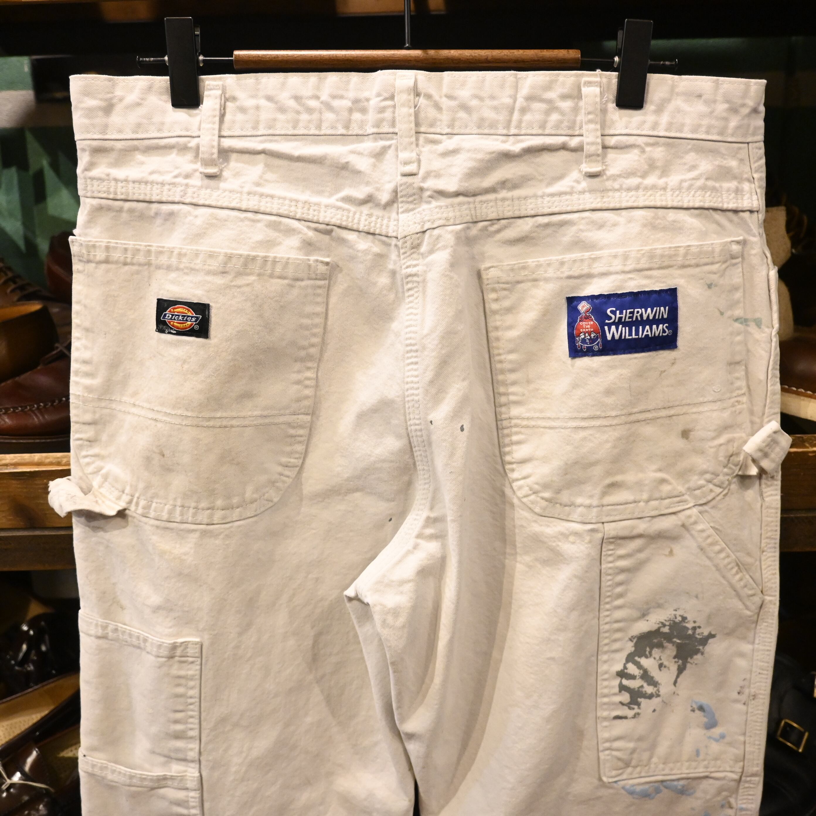 アメリカを代表するワークウェアブランド〈Dickies〉と、老舗ペイントメーカー〈Sherwin Williams〉のダブルネームが入る希少なペインターパンツ。