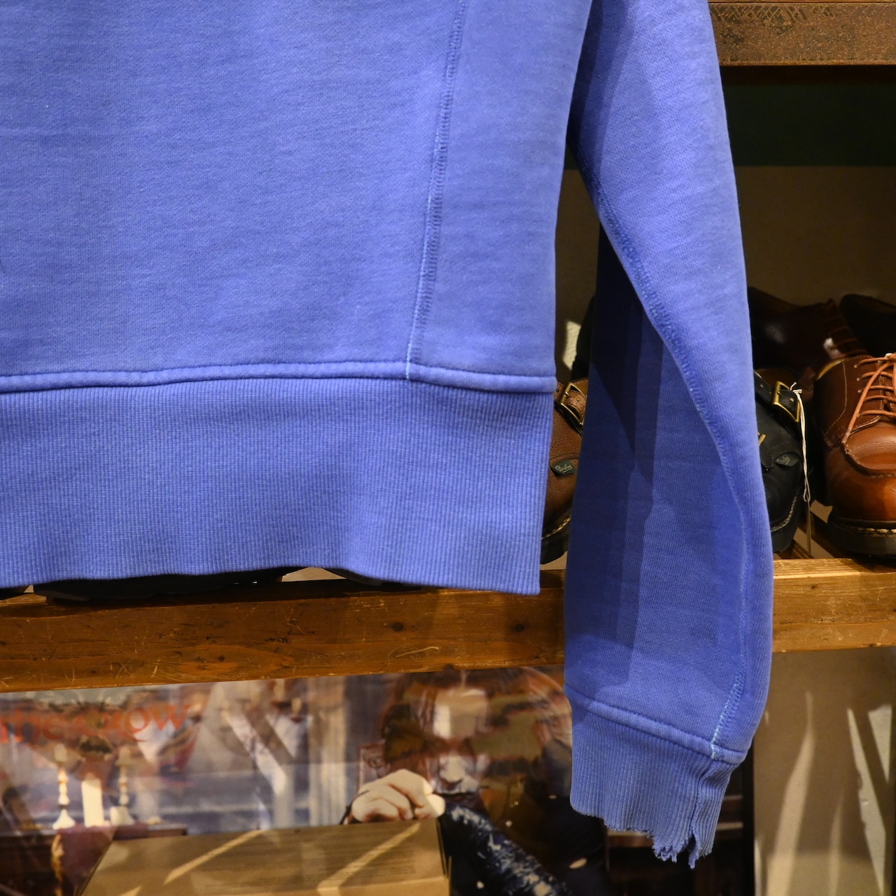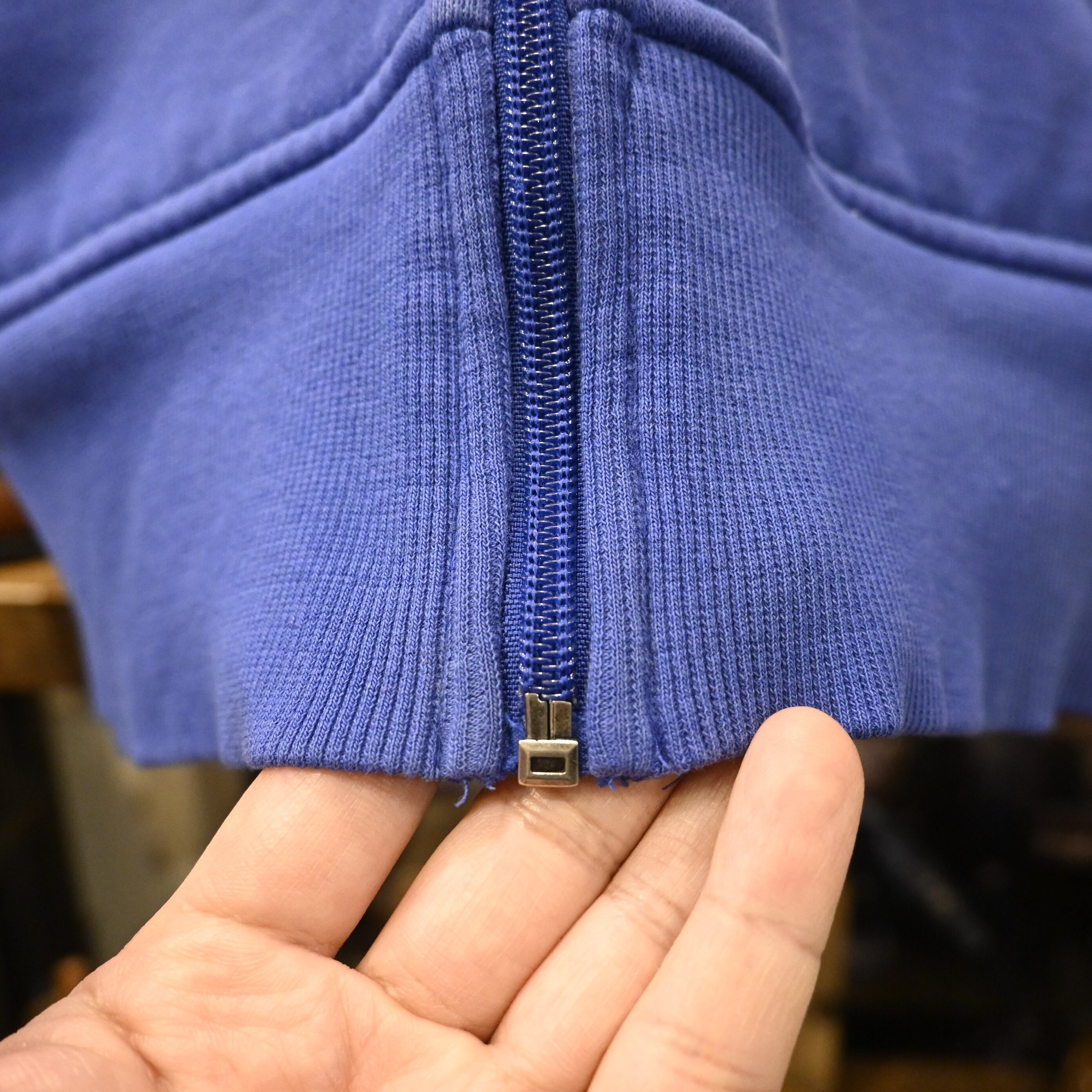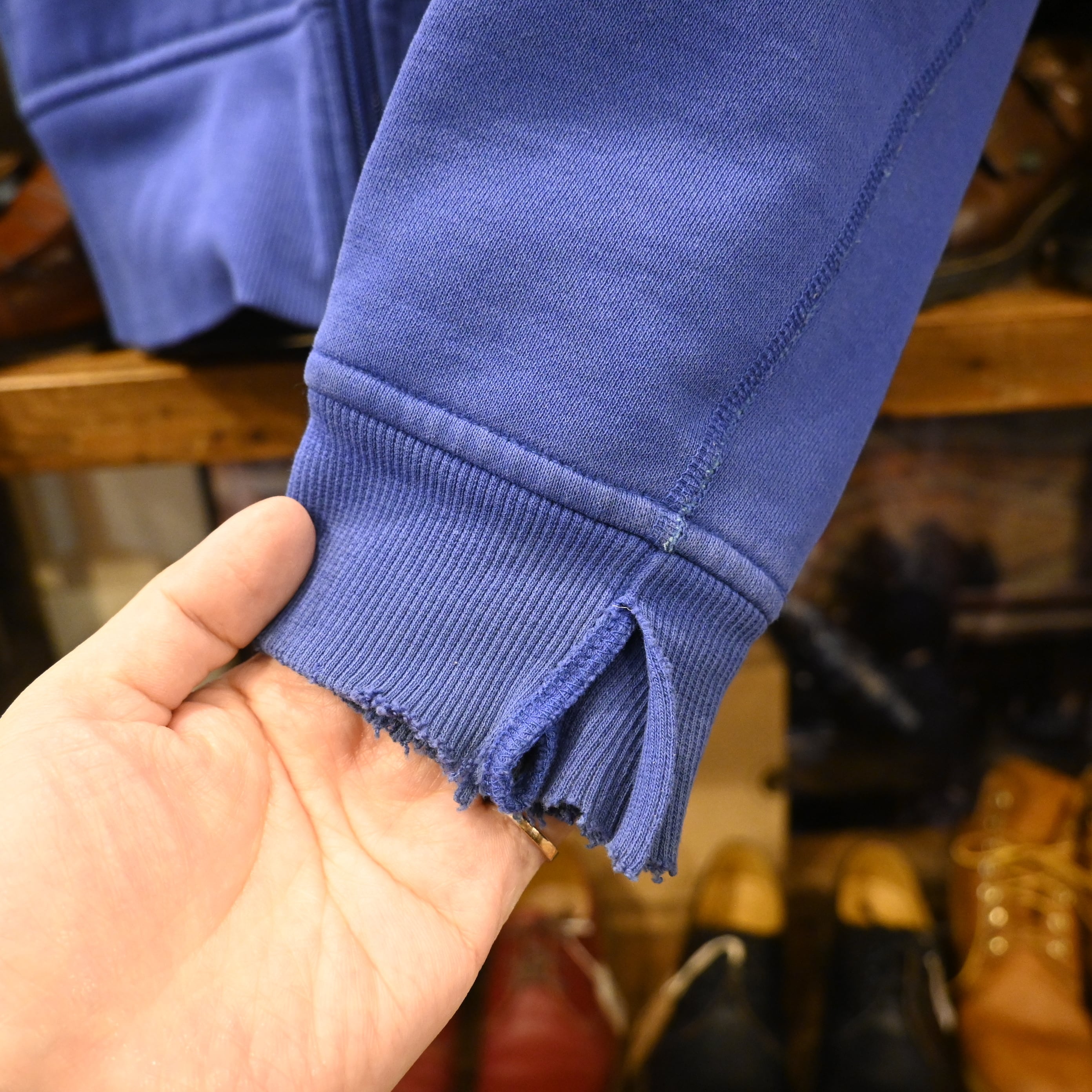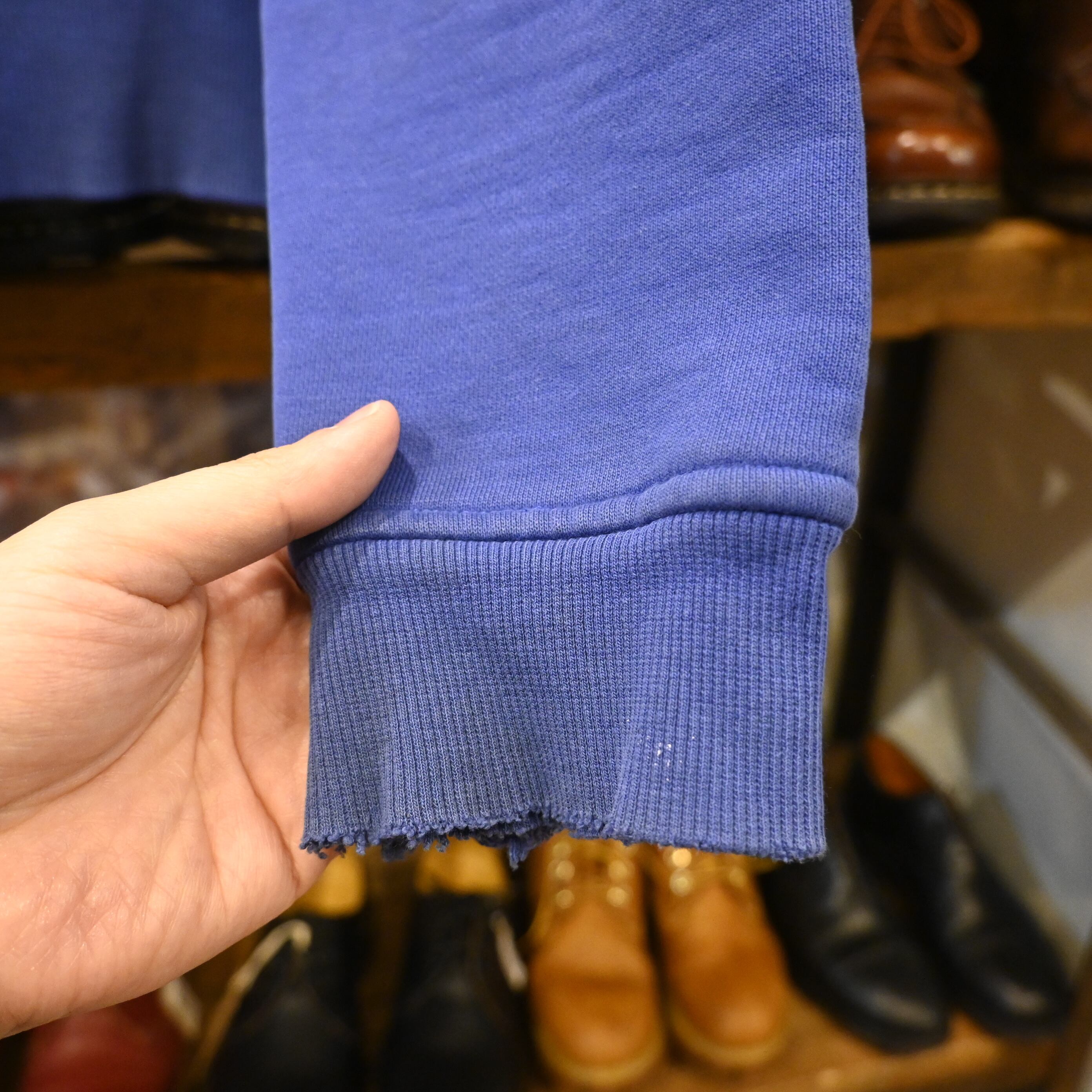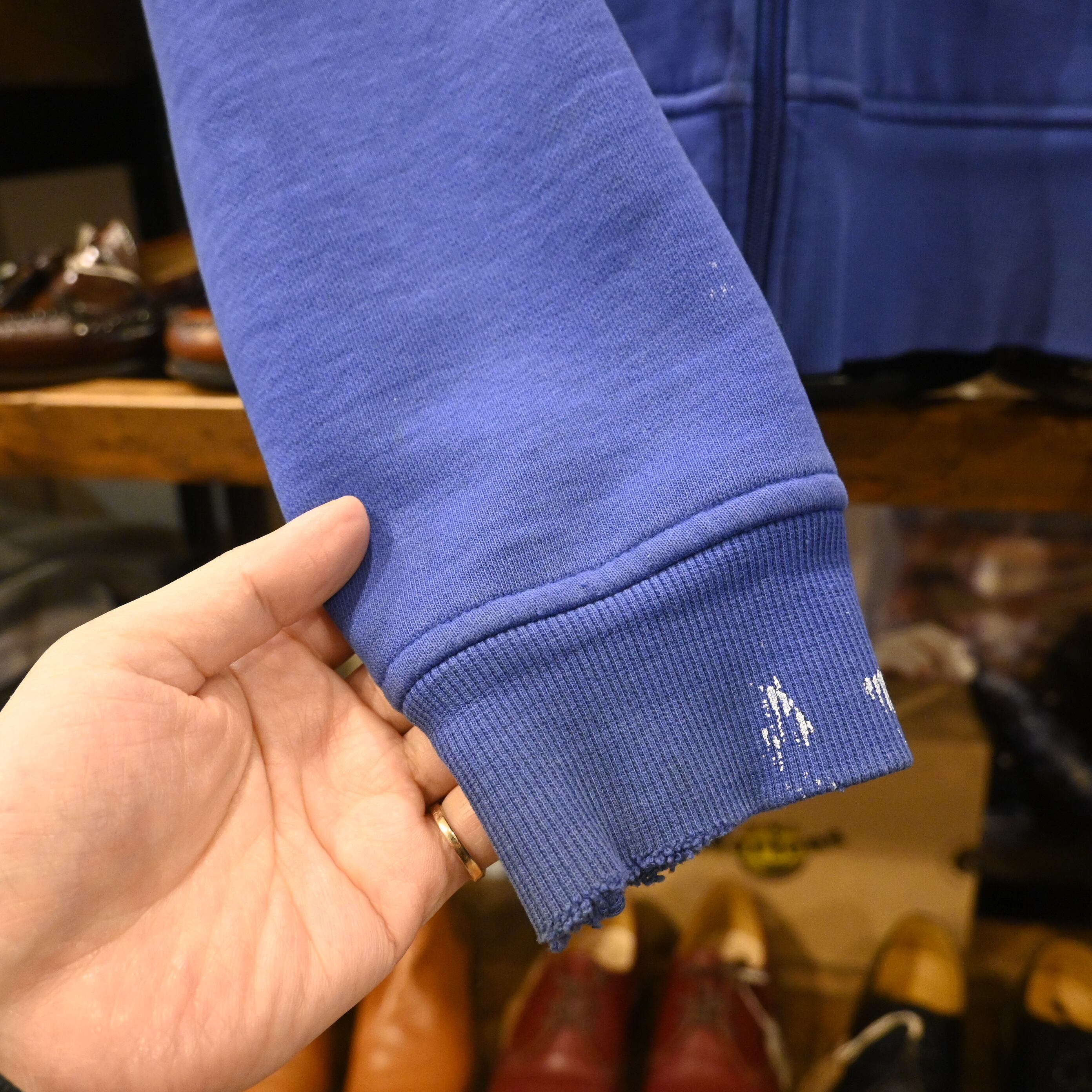 USED品のため、袖周りにダメージや汚れ、リブ部分のほつれ等が見られます。