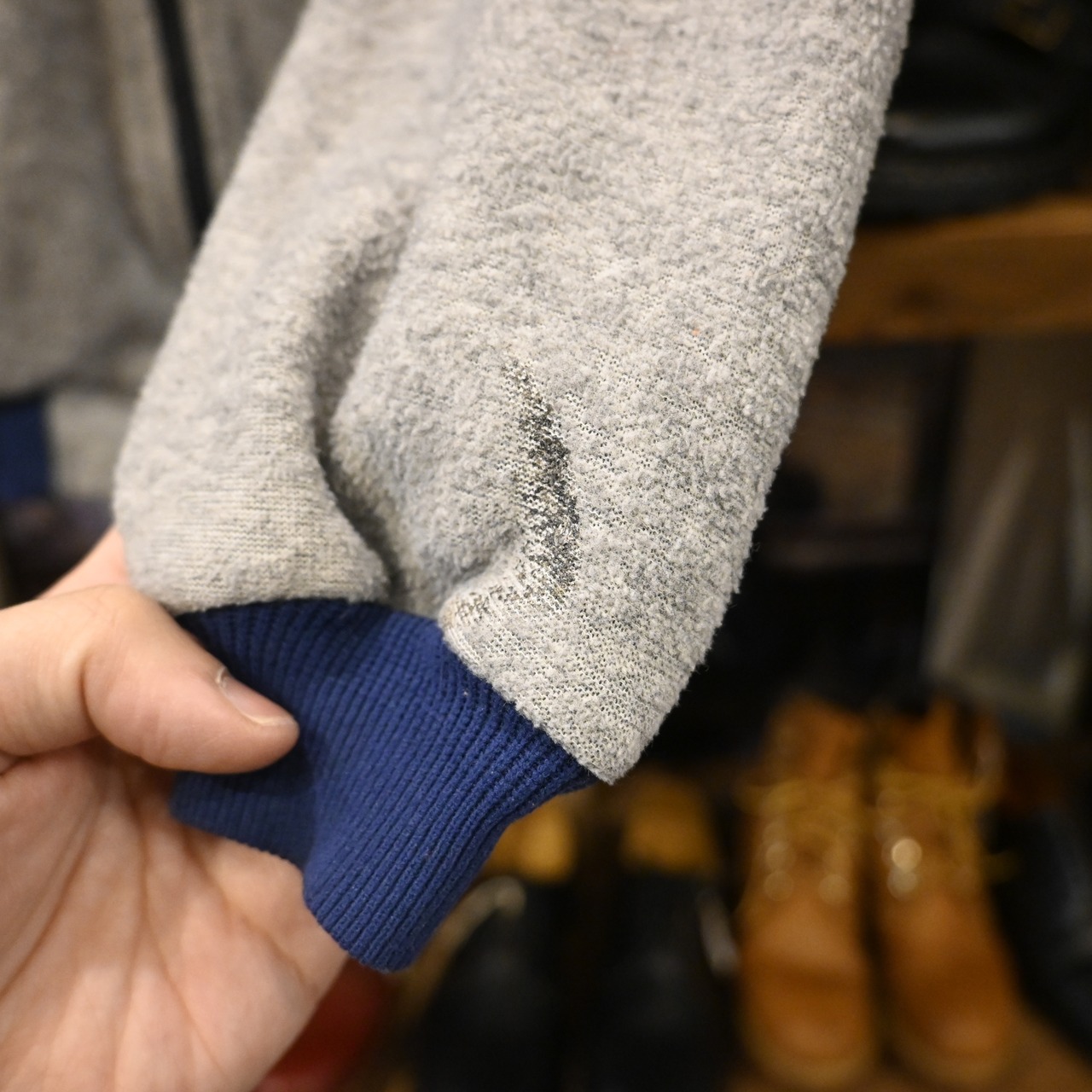 現行モデルとは異なる、肉厚で粗めのフリース質感、クラシックなシルエットが特徴です。
