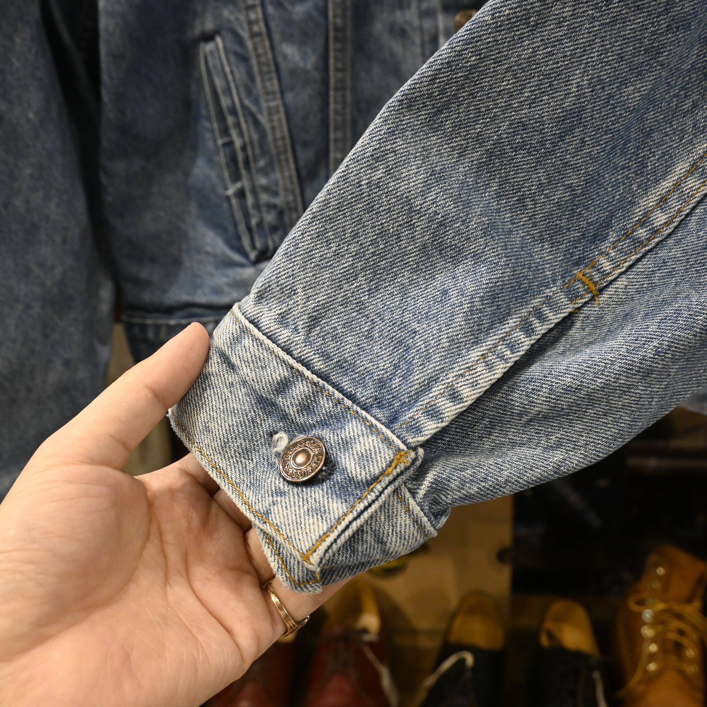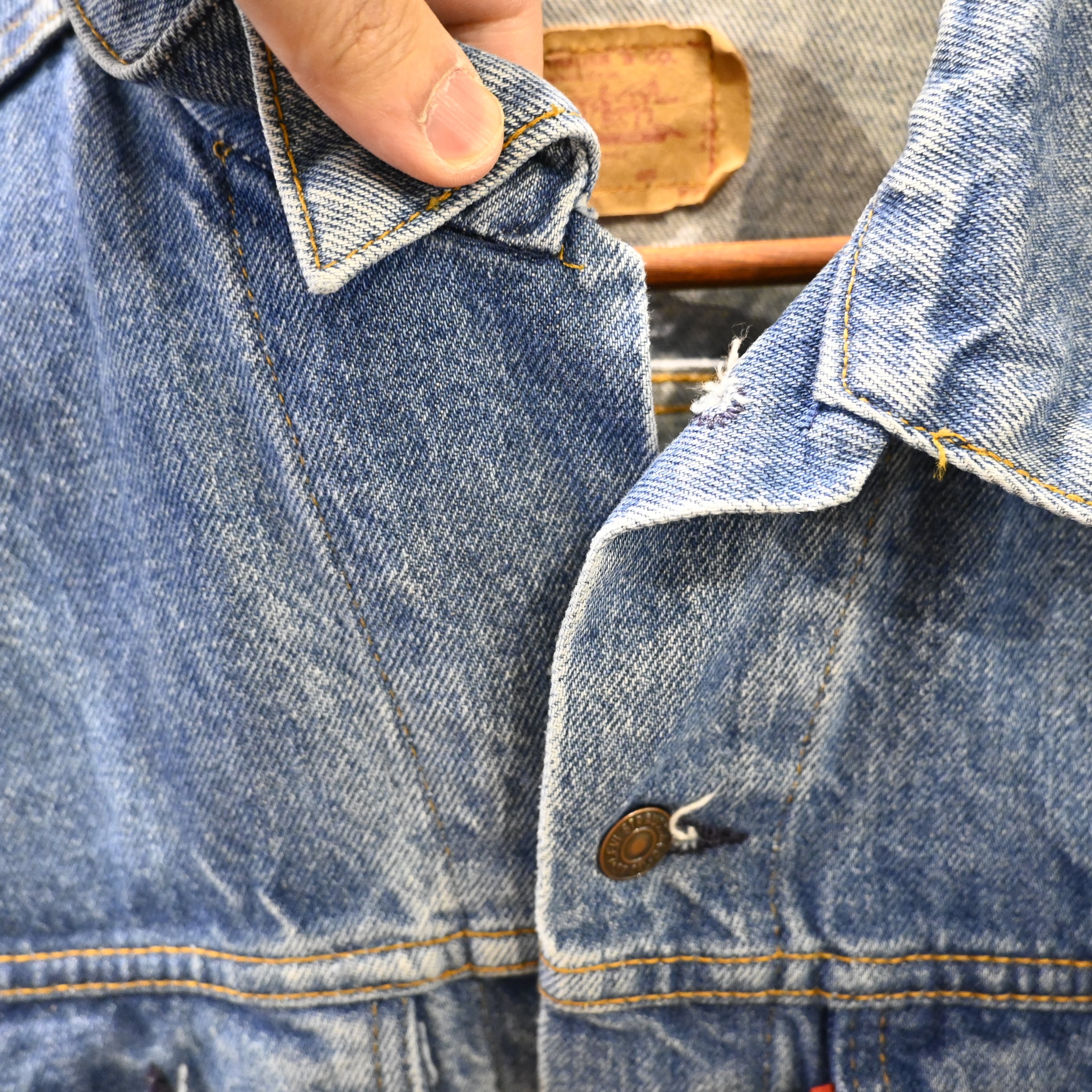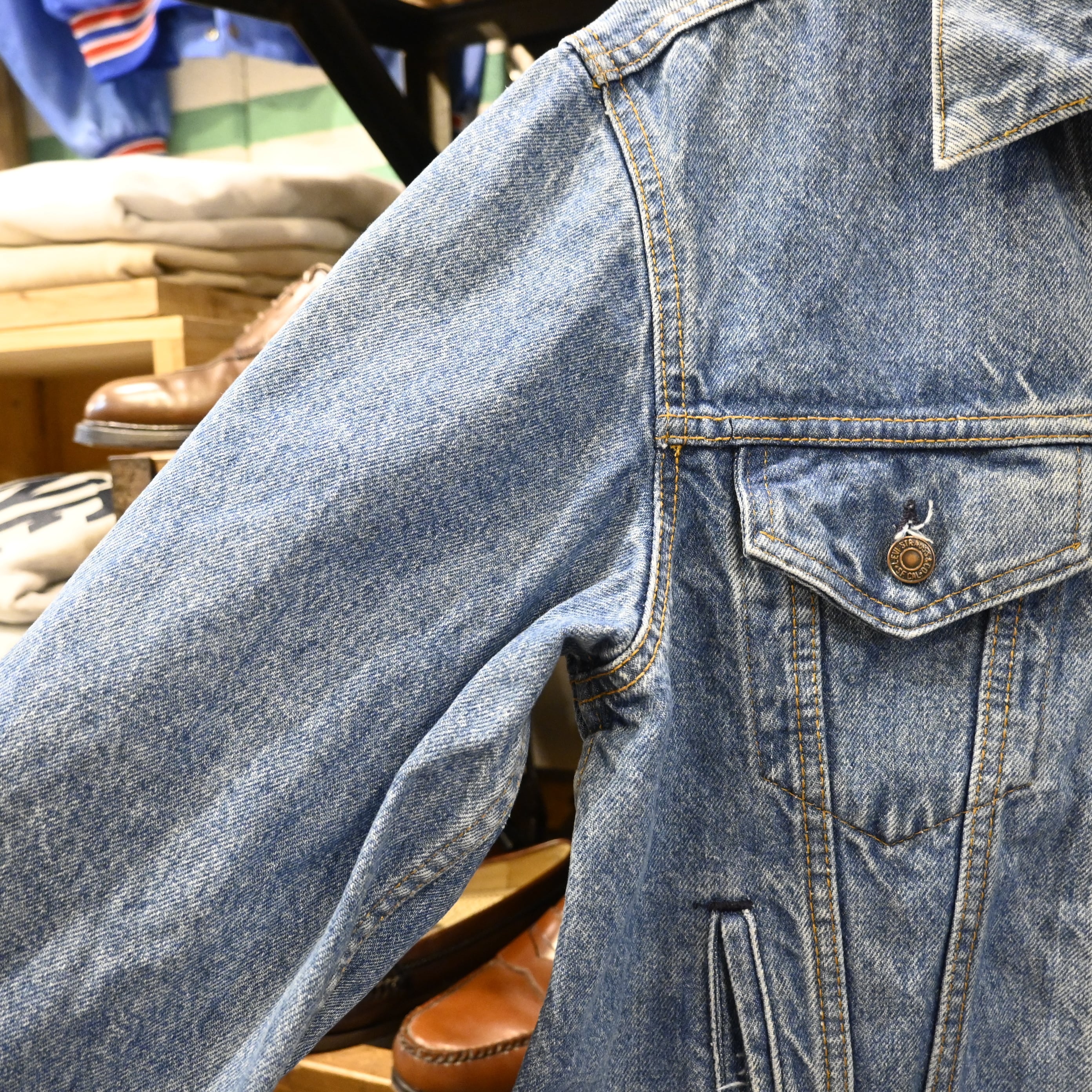 フロントトップボタンに欠損が見られますが、着用には支障はなく、ヴィンテージらしい風合いとして捉えられるコンディション。