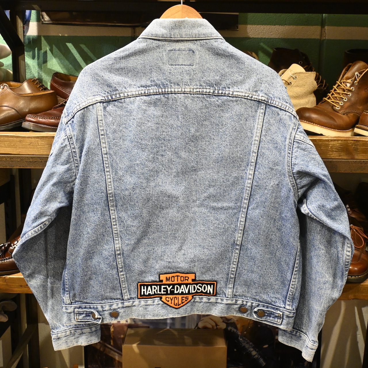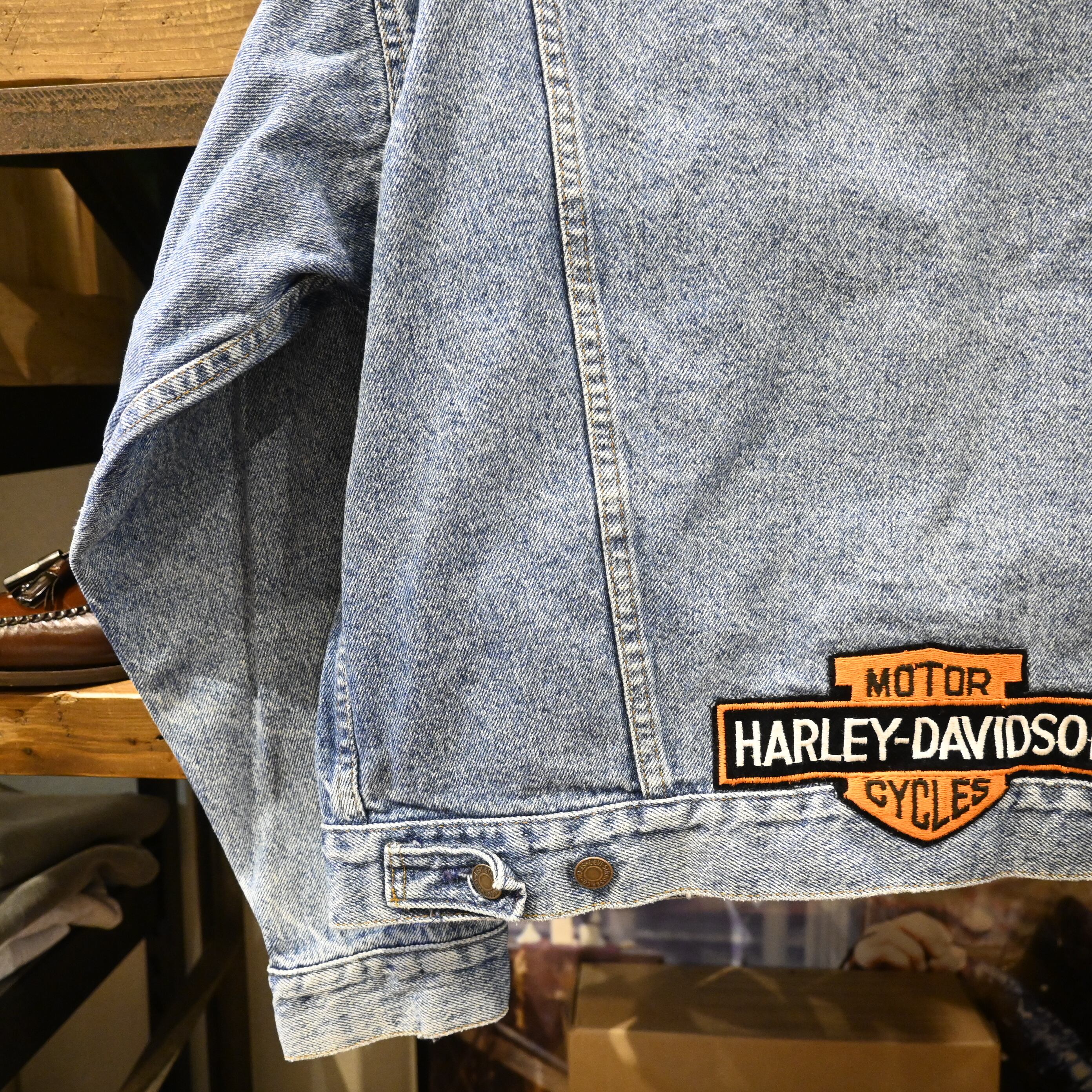 背面裾部分にはHarley-Davidsonのロゴパッチ、