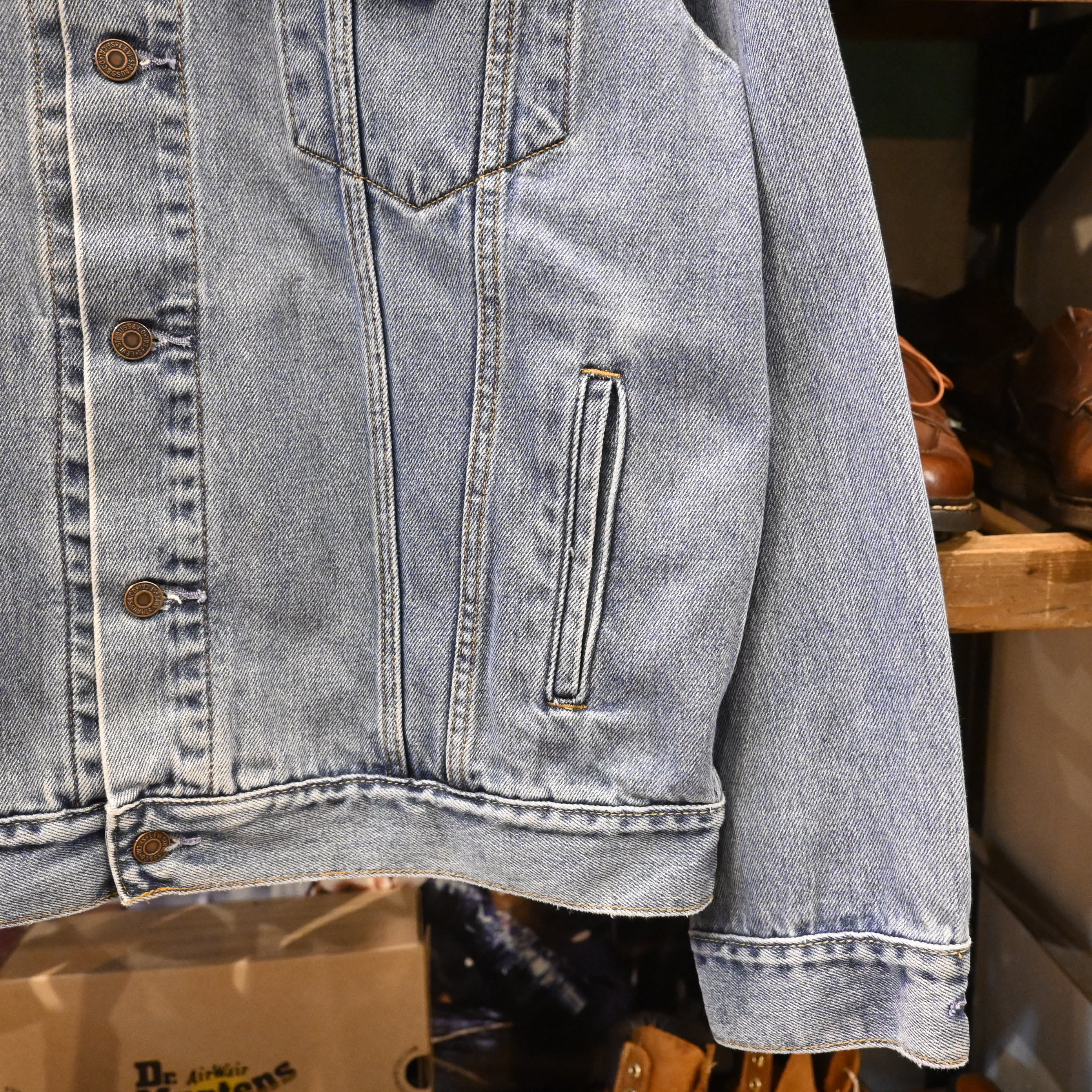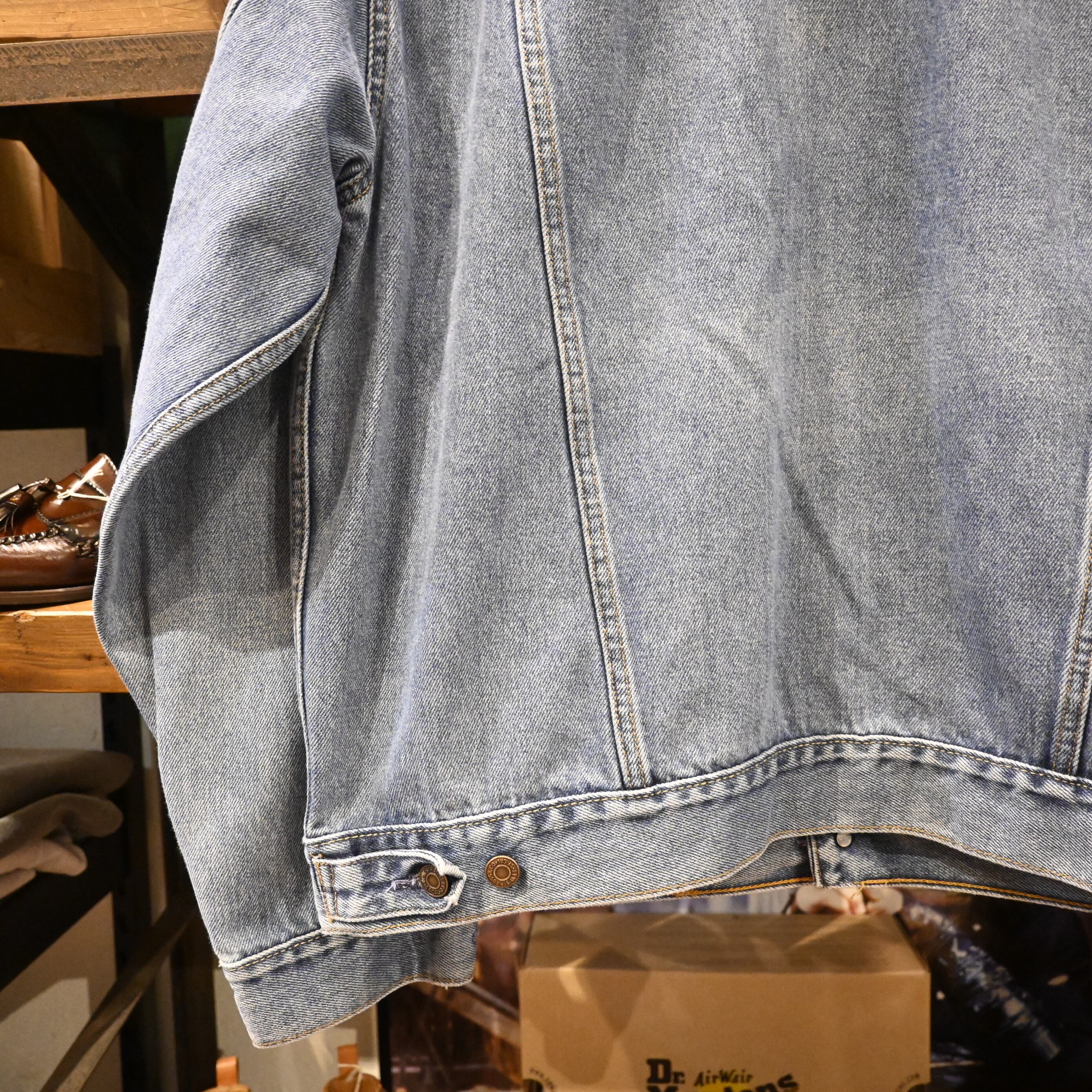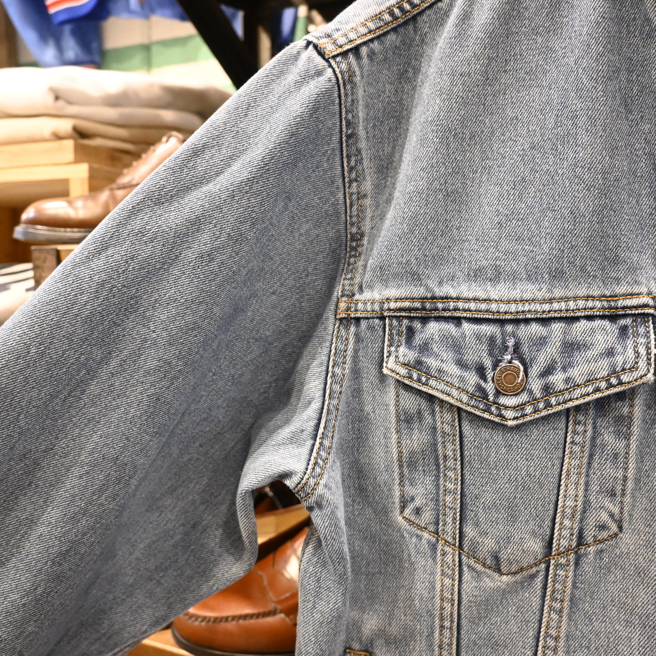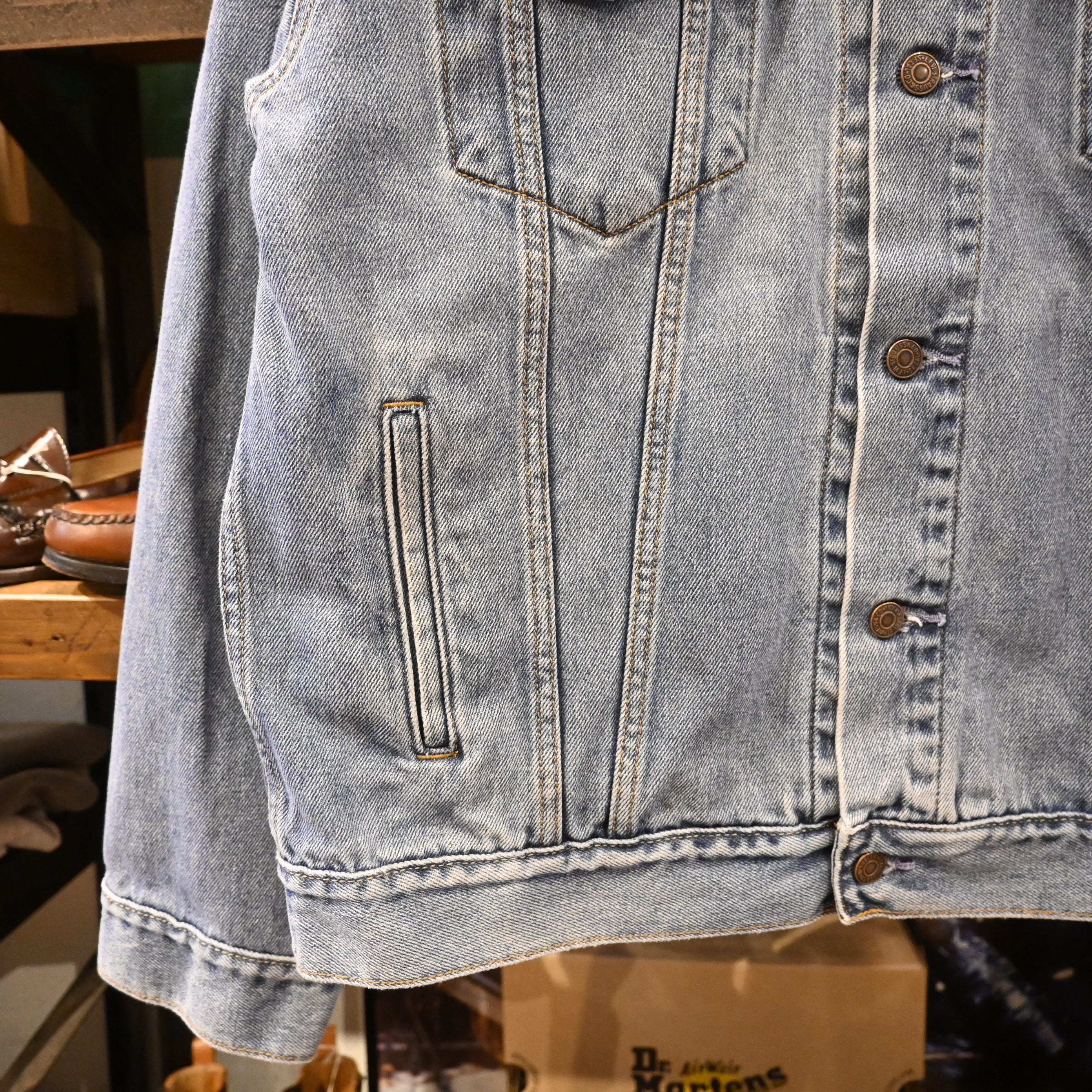 程よくフェードしたブルーデニムの色味が特徴で、ヴィンテージライクな表情を持ちながらも、現代的なスタイリングに馴染む一着。
