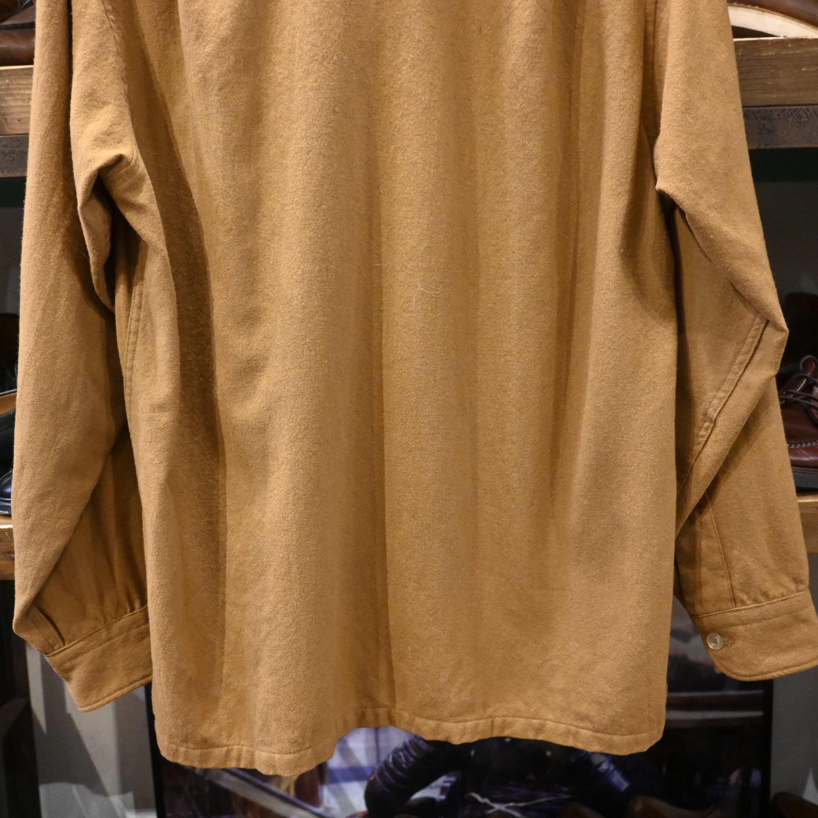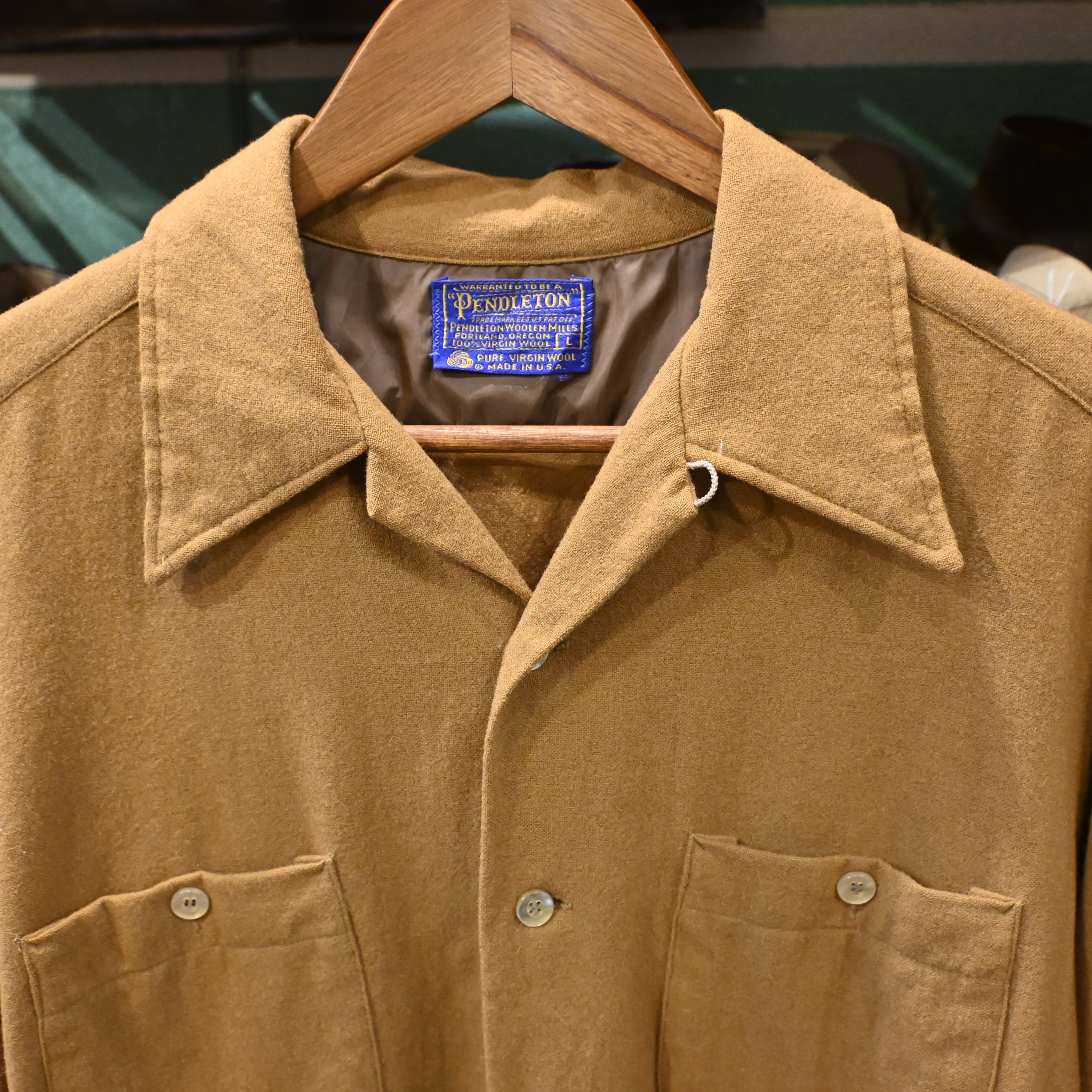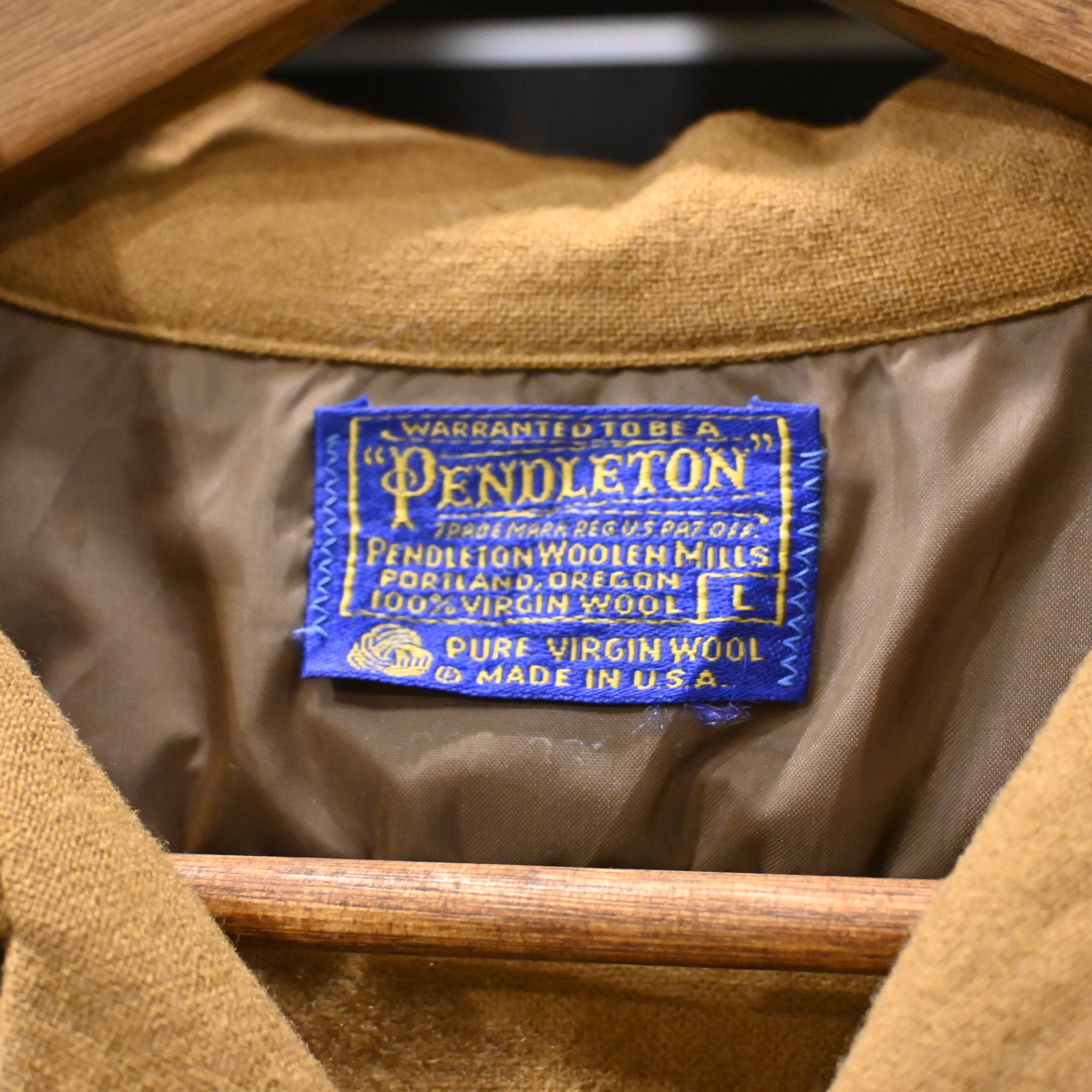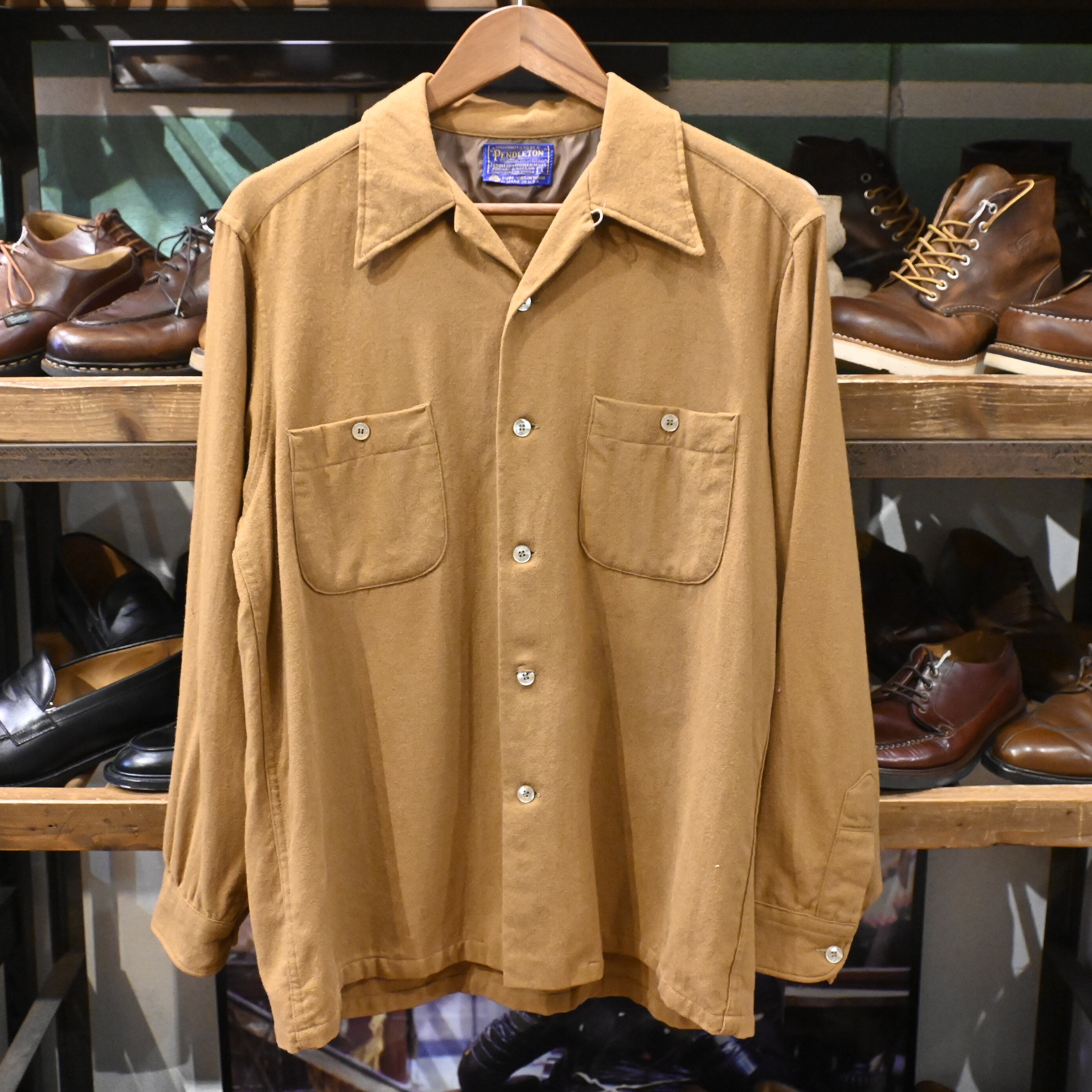 こちらは70-80年代頃のUSA製。ペンドルトンらしい上質なピュアヴァージンウールを使用した、無地ブラウンの一着です。