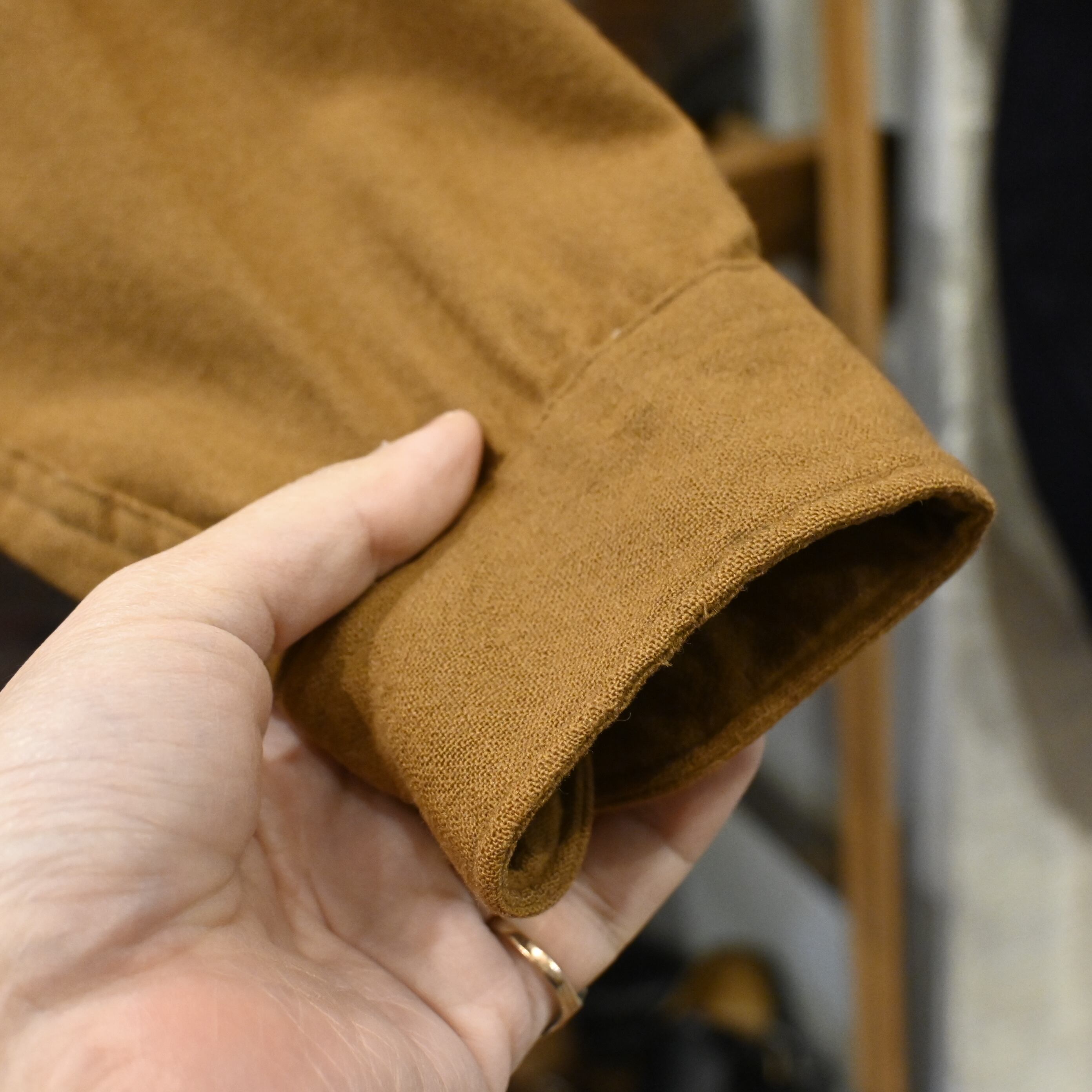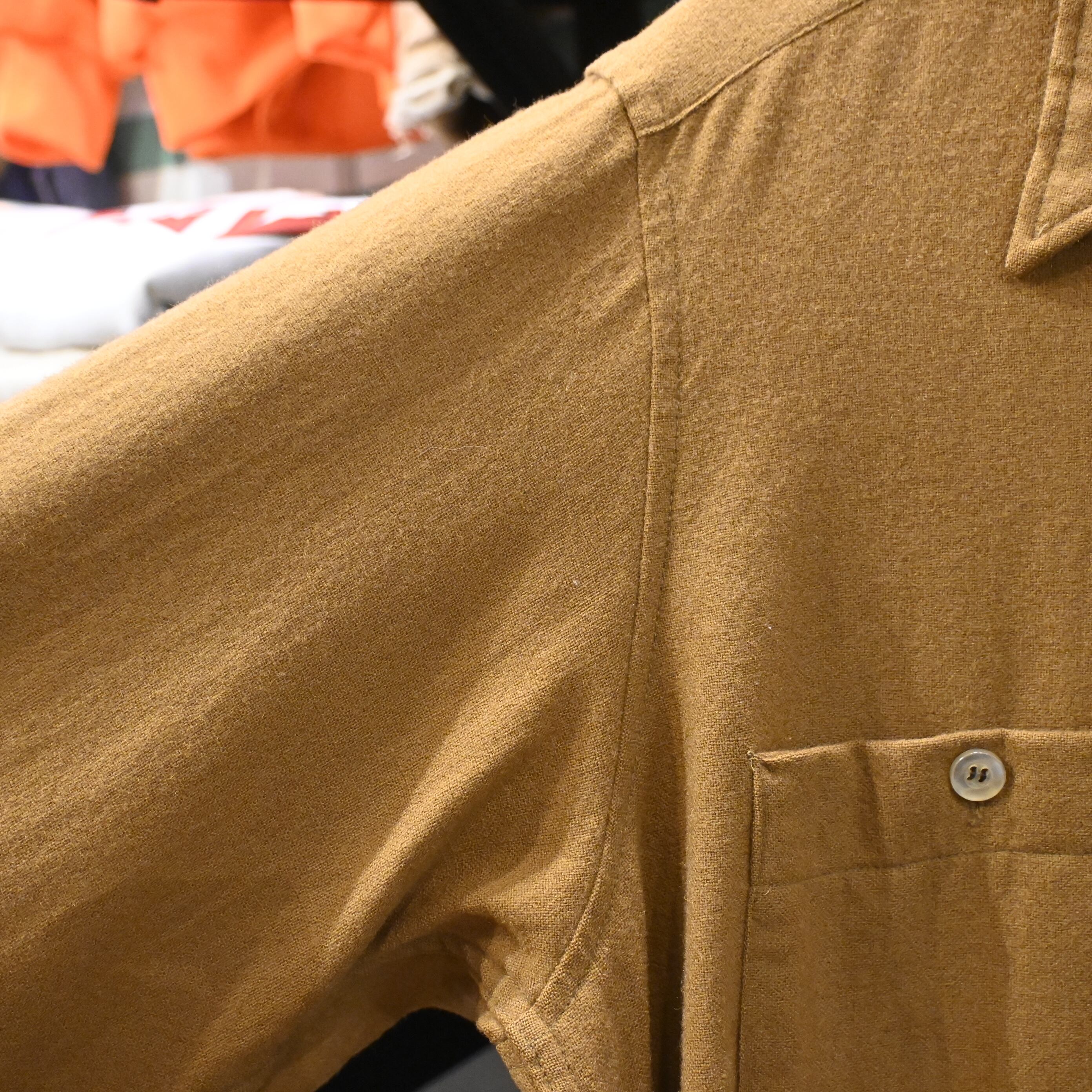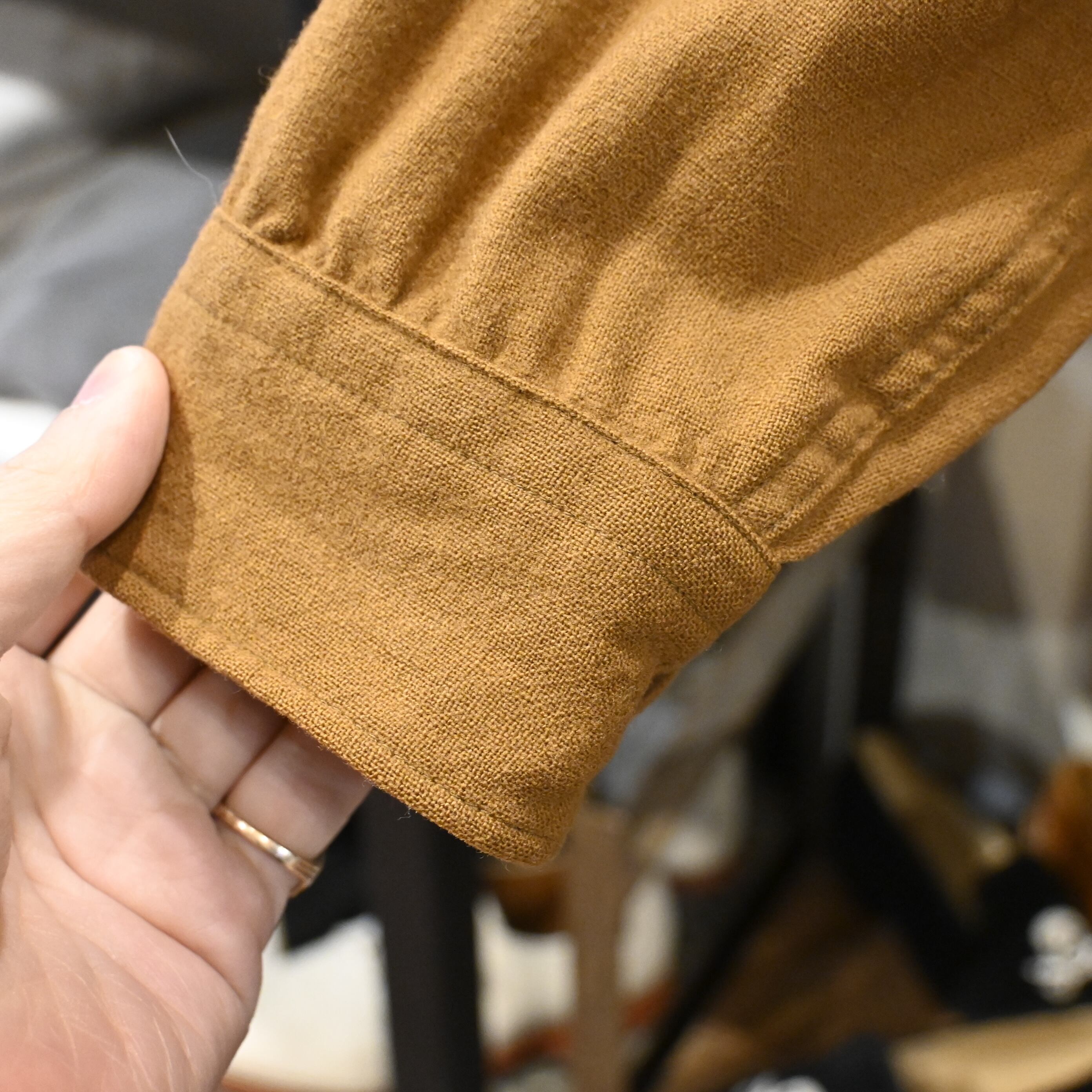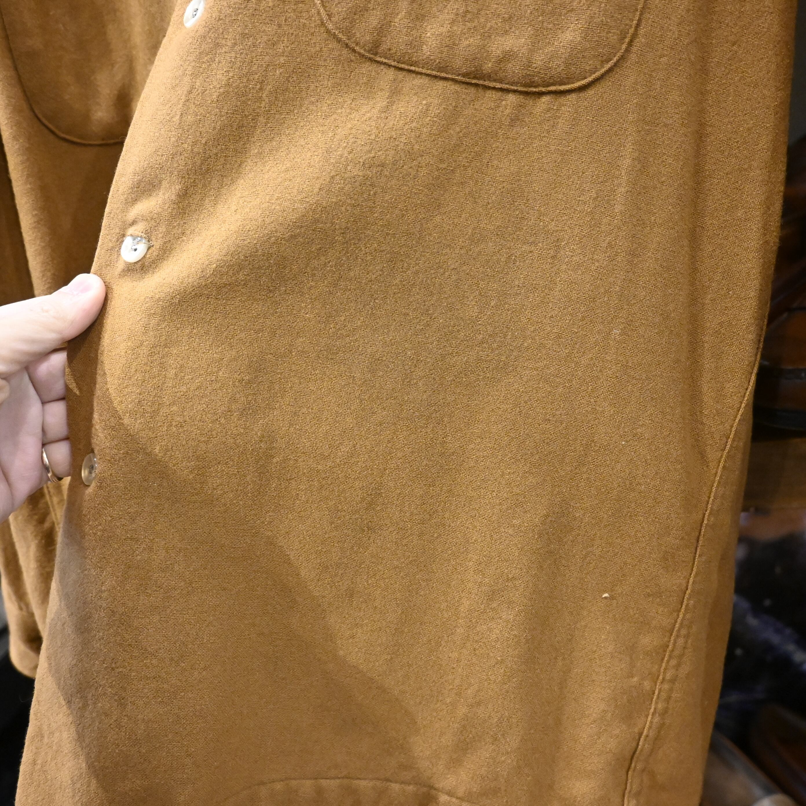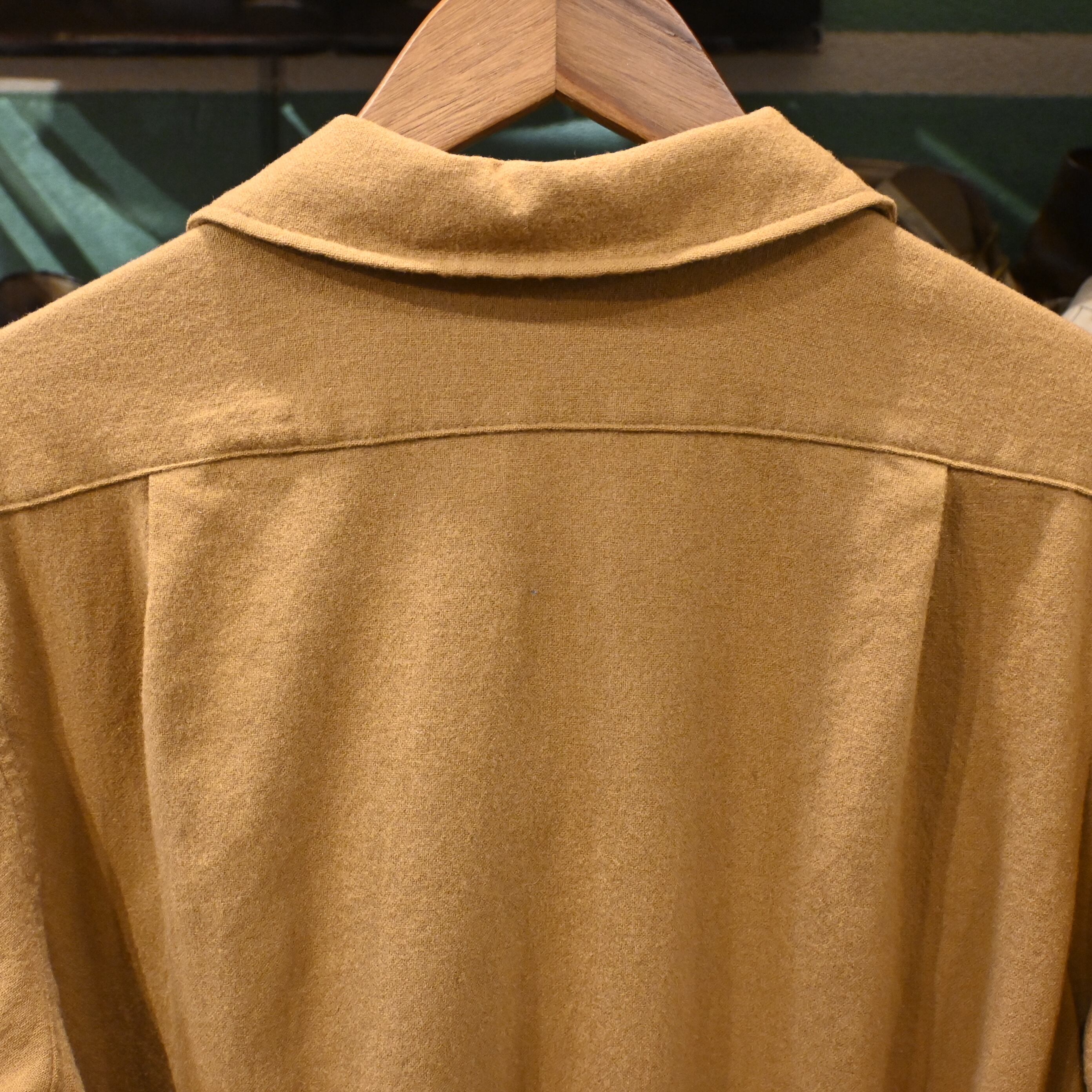 程よく起毛感のあるウール生地は、厚すぎず軽すぎず、シャツとしてもライトアウター感覚でも使える万能さがあります。