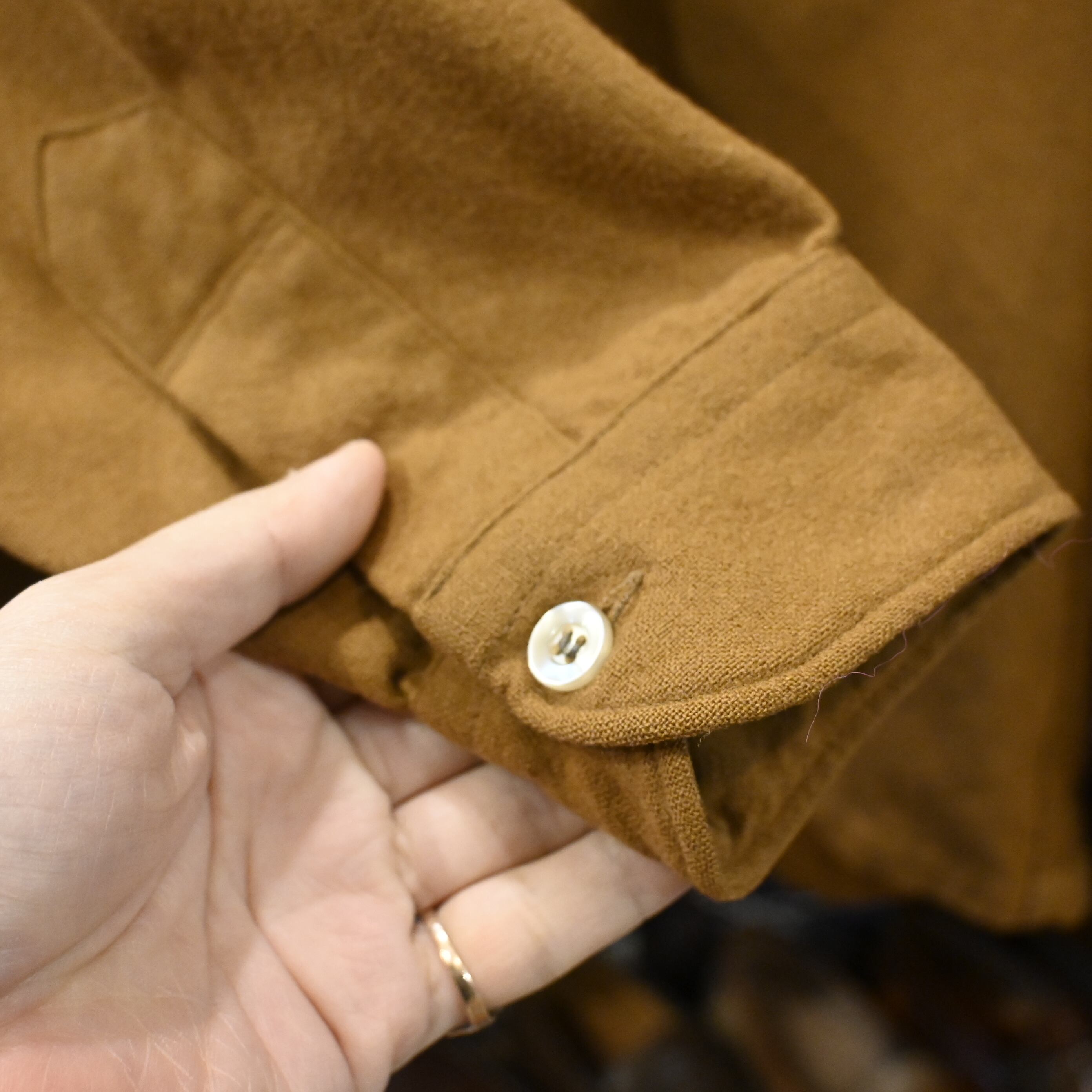袖やボディに小さな擦れや所々にピンホールが見られますが、ヴィンテージらしい雰囲気として楽しんでいただけるコンディションです。