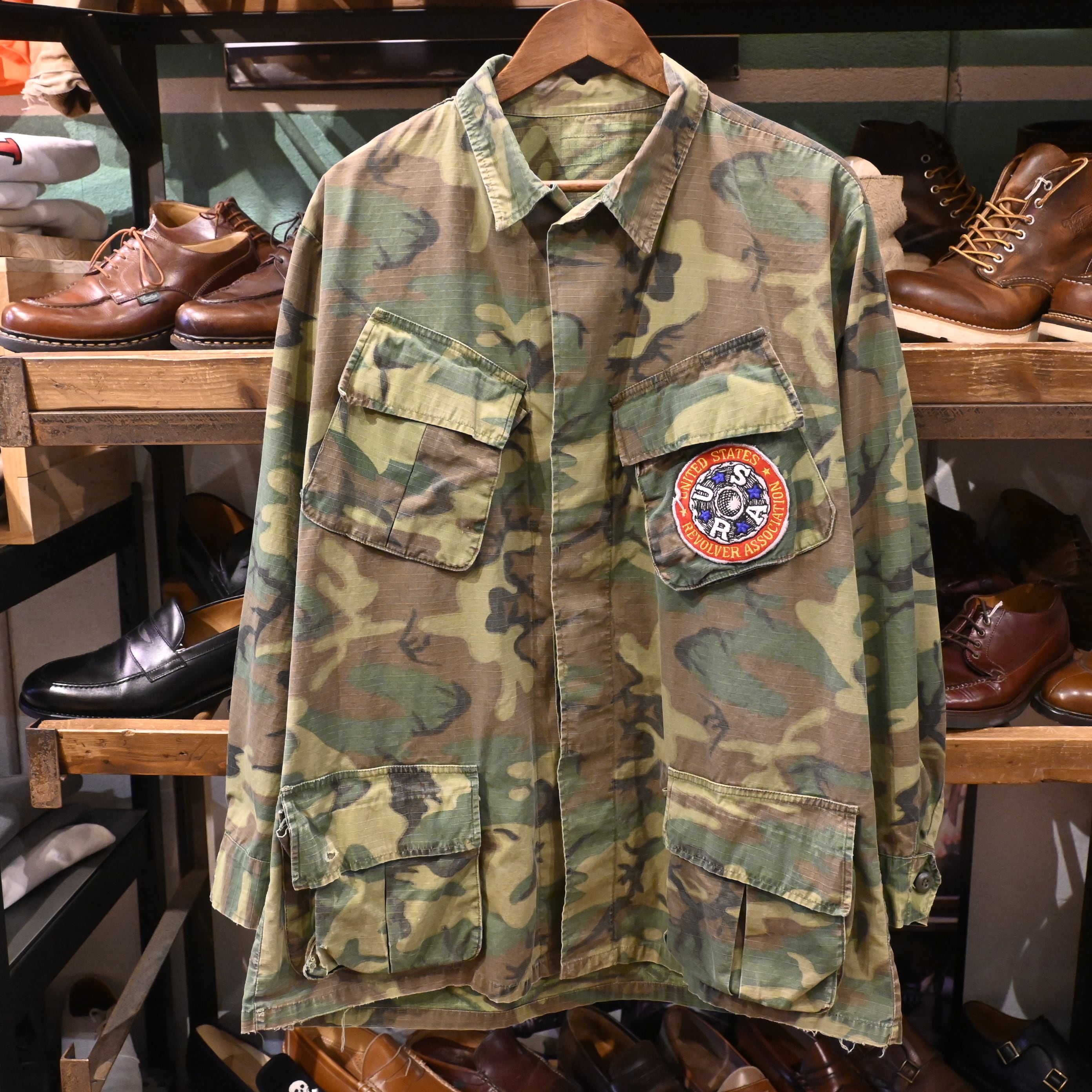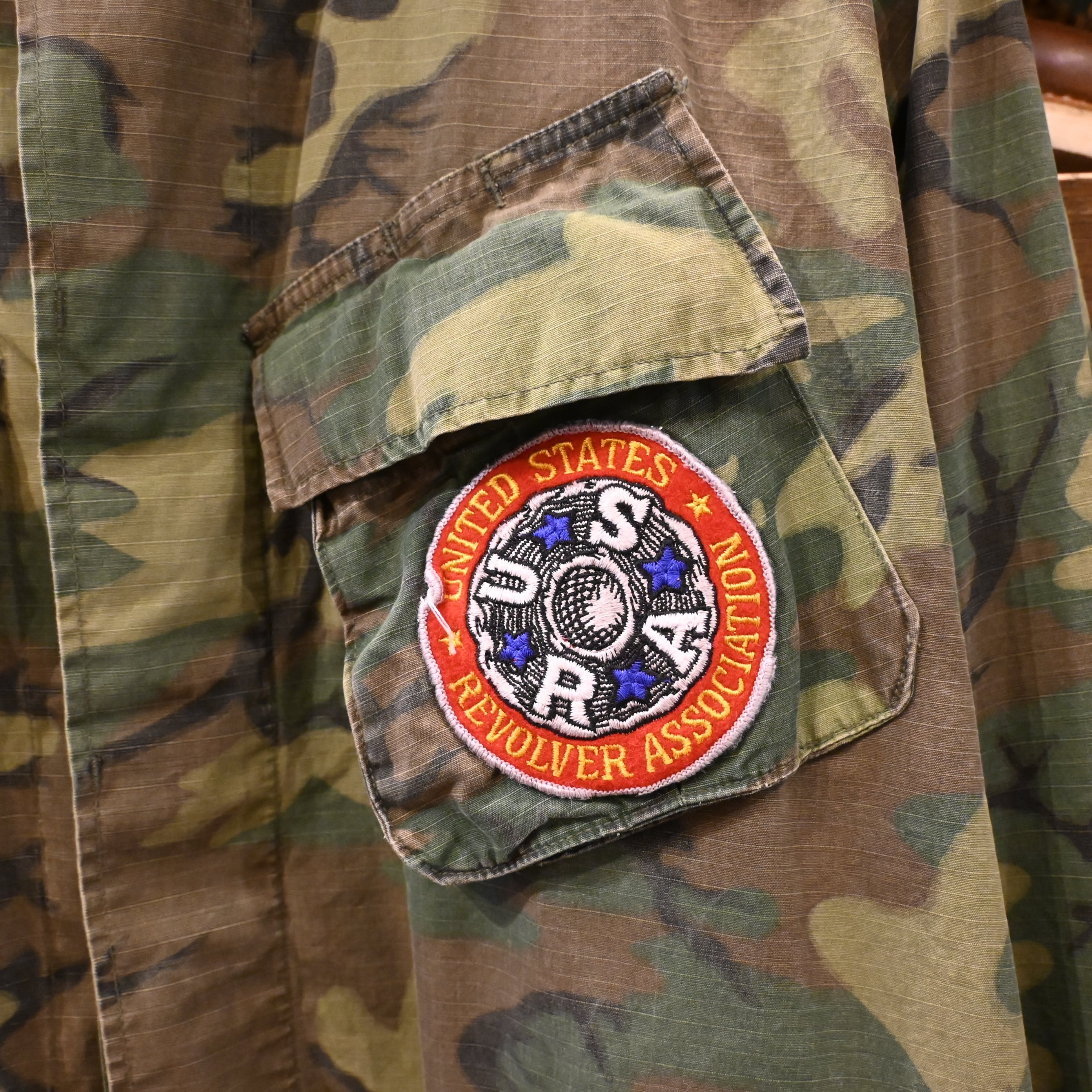 さらにこちらは胸ポケットに「U.S.R.A(United States Revolver Association)」のワッペンが付いたカスタム仕様。