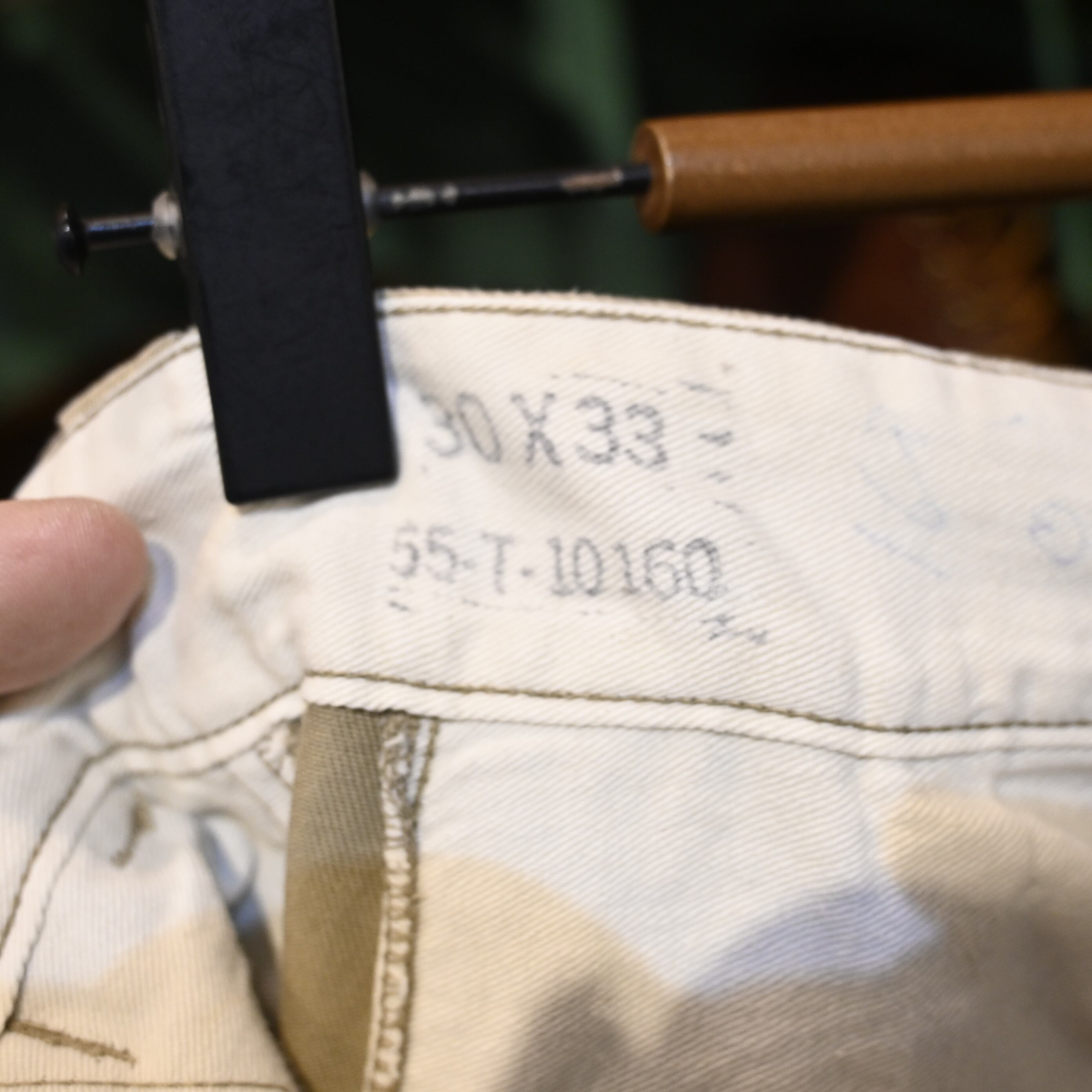 しっかりとしたコットンツイル生地、ボタンフライ仕様、無骨で実用性を重視したディテールなど、当時の軍用パンツらしい雰囲気がしっかり残る一本です。