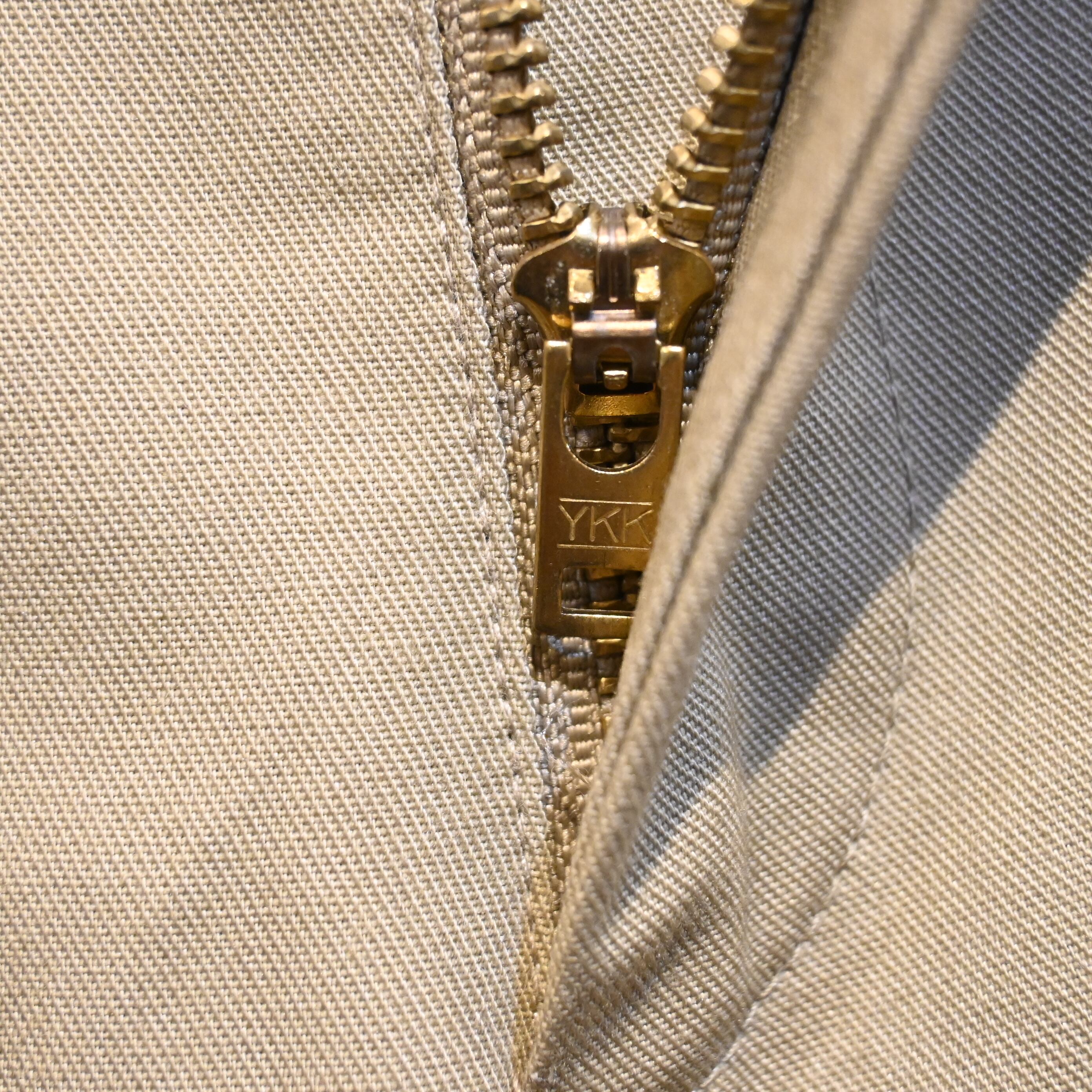 フロントはYKKジップ。内タグには「QUARTERDECK COLLECTION」の表記入り。ミリタリーの実用品ながら、都会的なスタイルにも馴染むベージュカラーで、レザーシューズやローファーと合わせたトラッドスタイルから、スウェットやジャケットと合わせたミックススタイルまで幅広く活躍します。