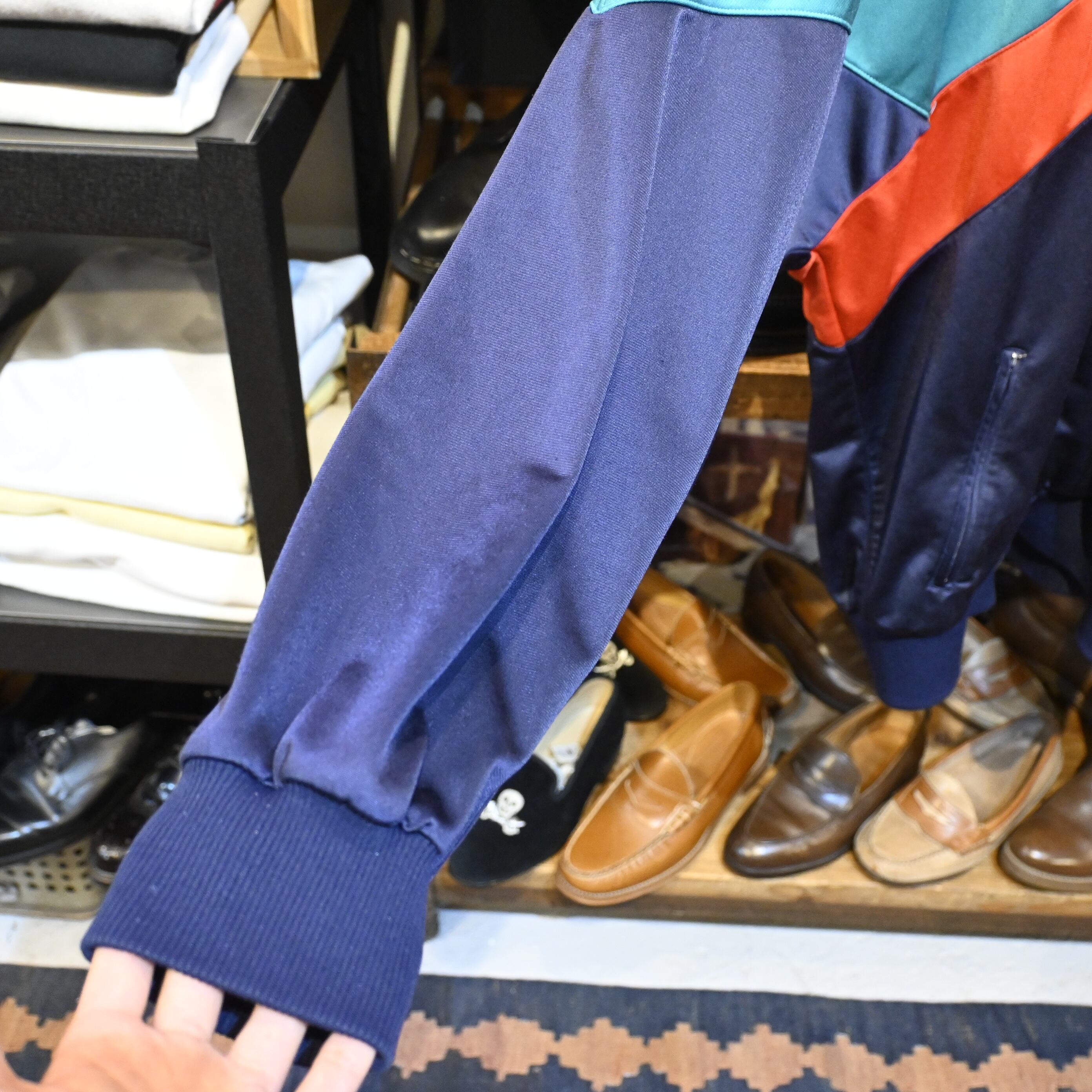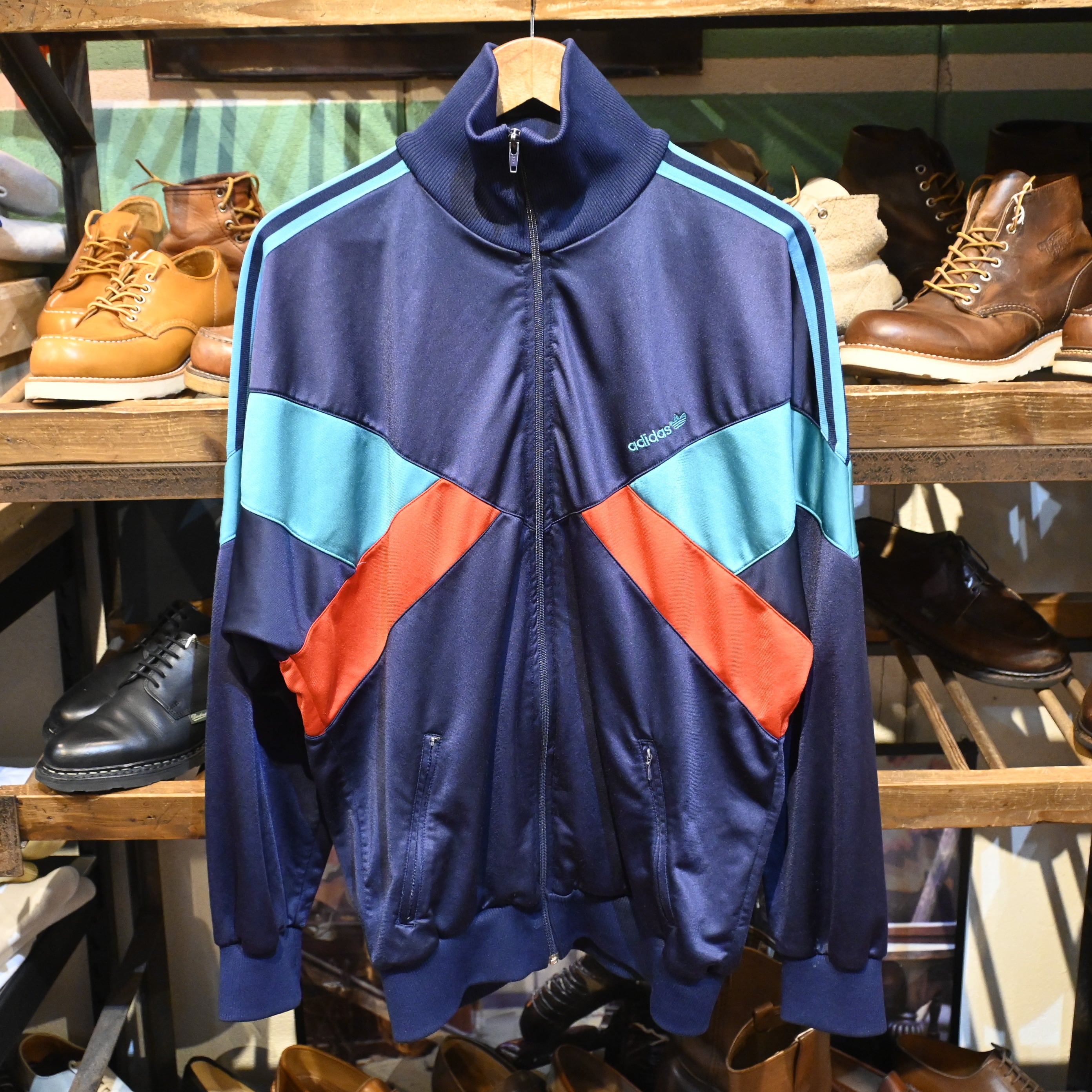 ヴィンテージadidasらしい配色とサイズ感を兼ね備えた、存在感のある一着です。