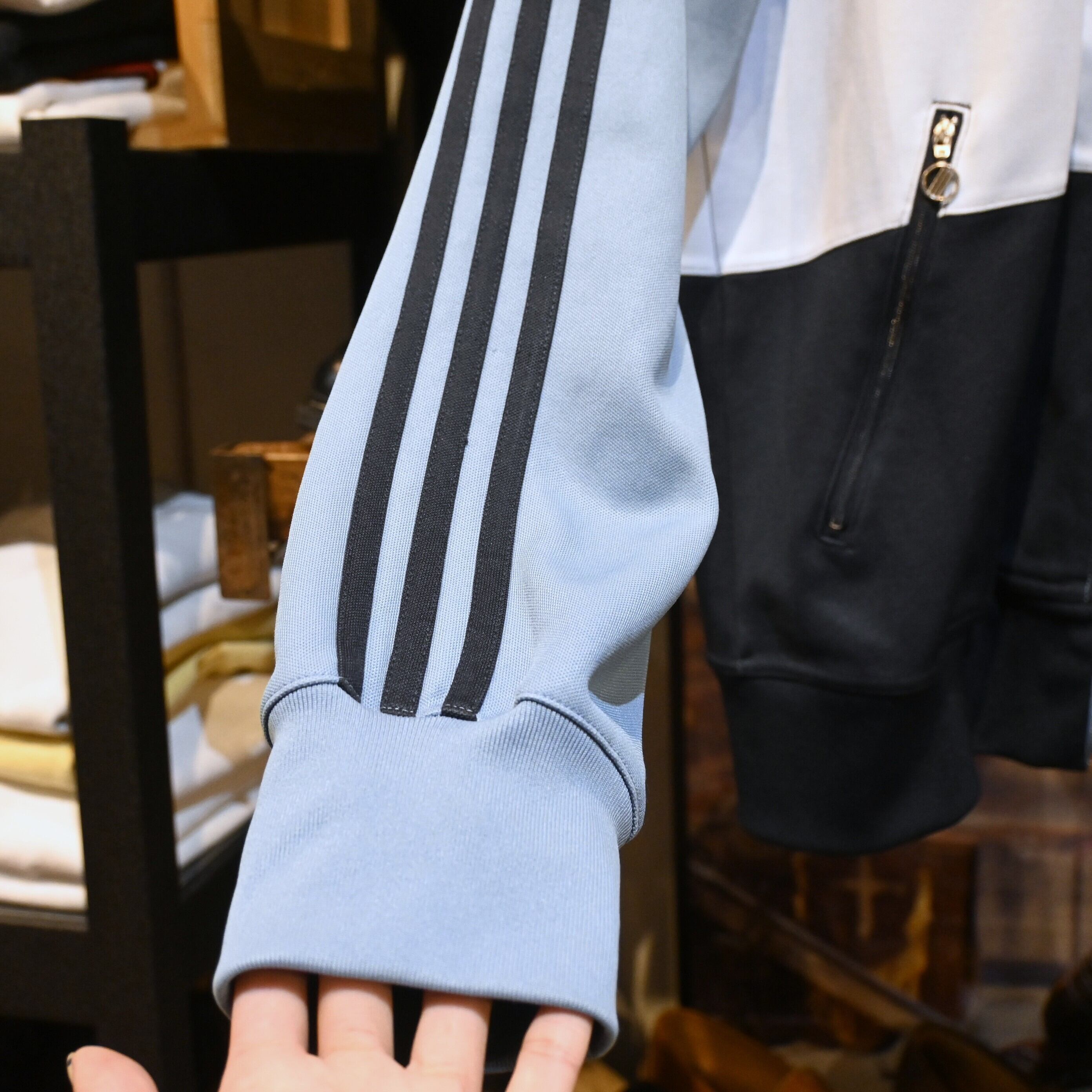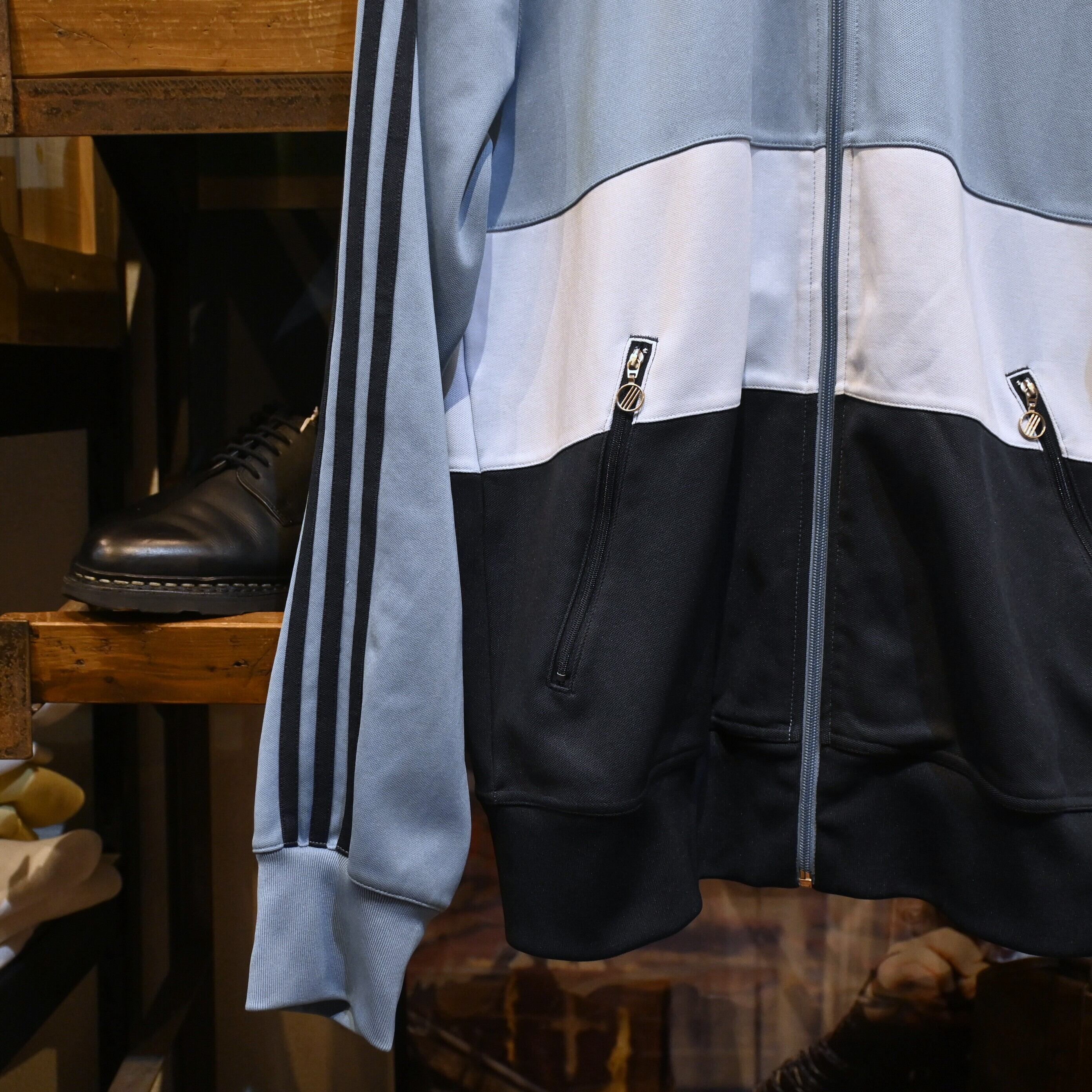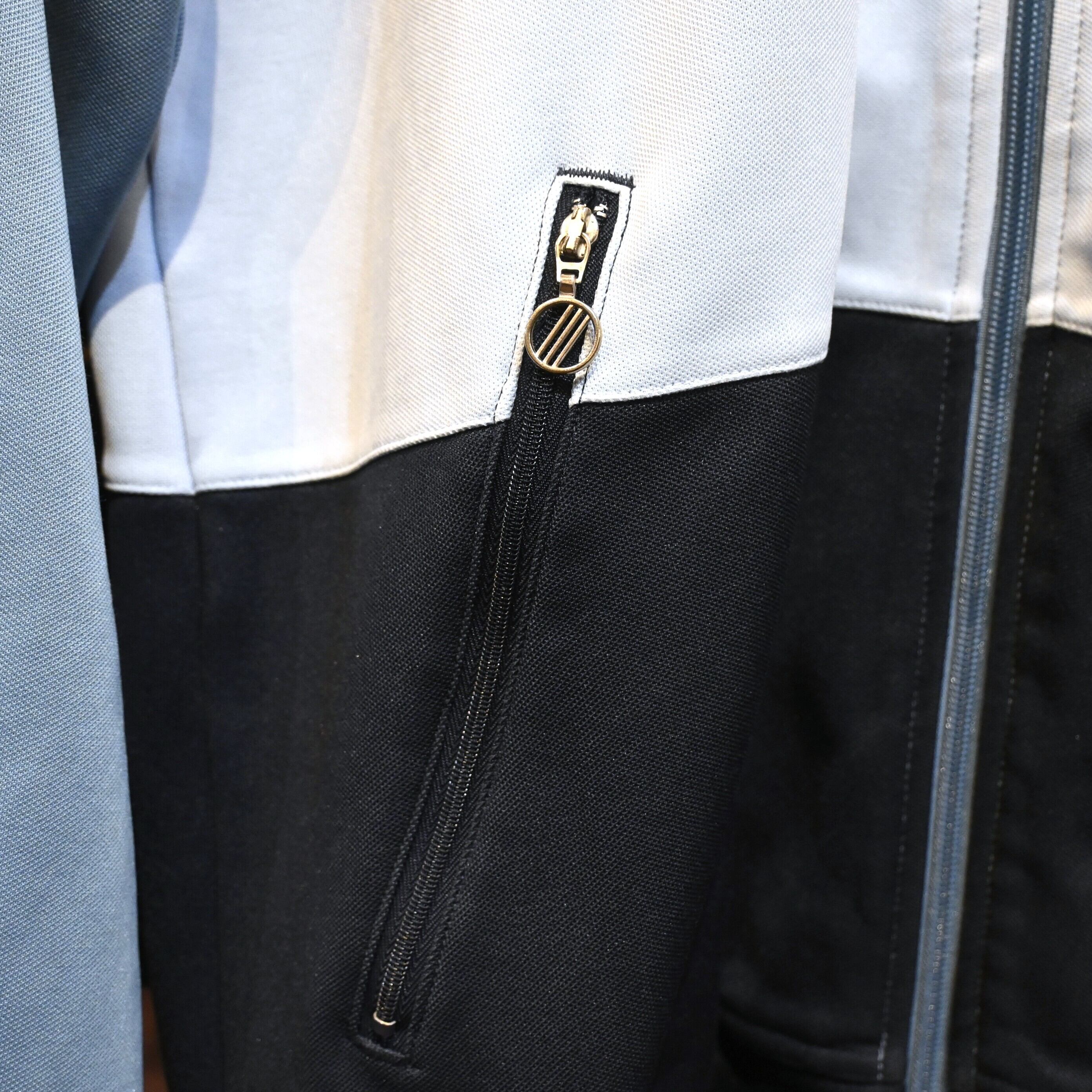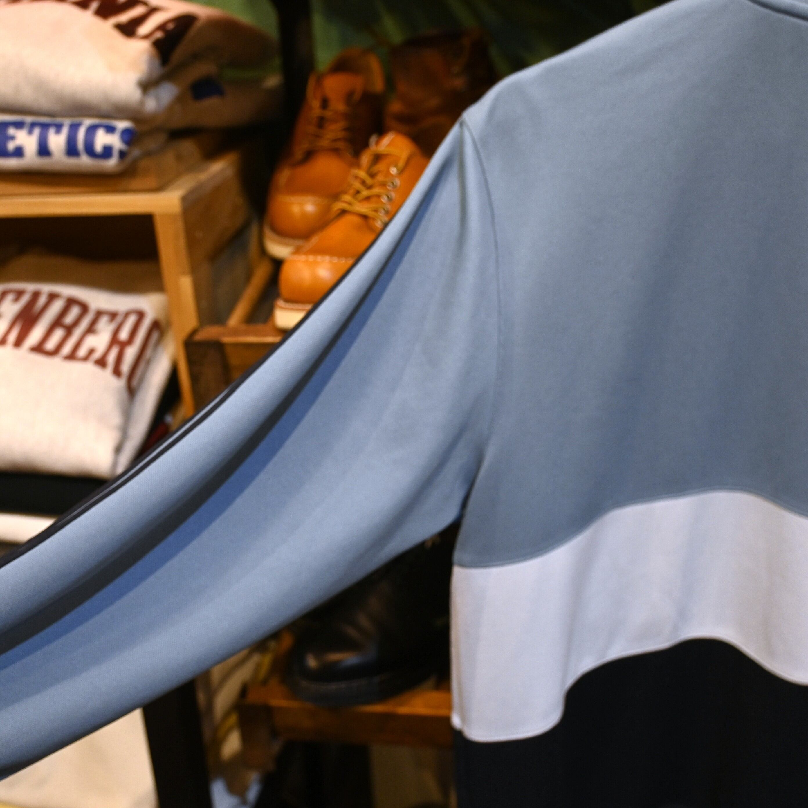 落ち着きのある寒色系グラデーションが、スポーティーさの中にどこか都会的な印象を与えてくれる一着です。