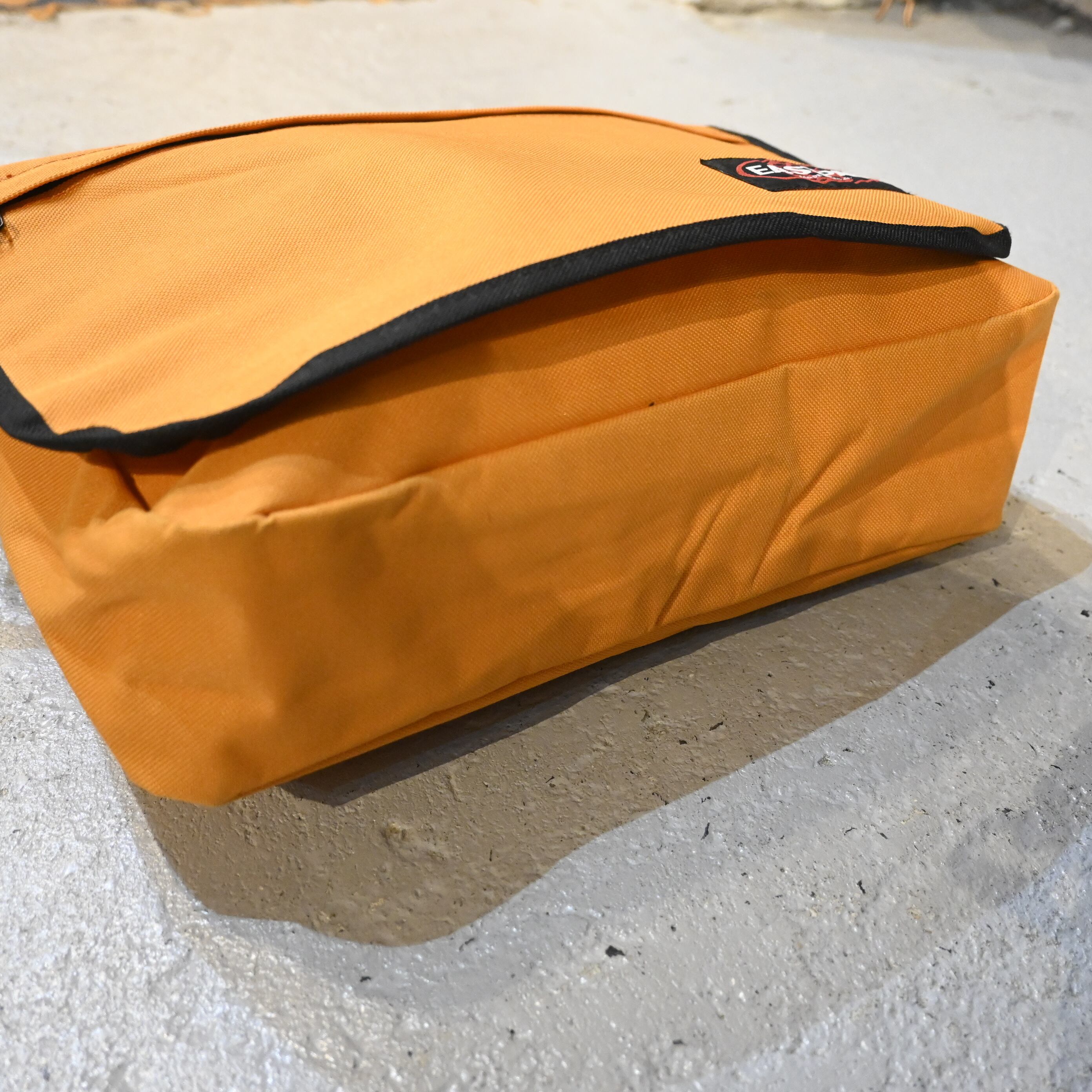 発色の良いオレンジカラーにブラックパイピング、赤×黒のEASTPAKロゴパッチが映えるクラシックなデザインです。