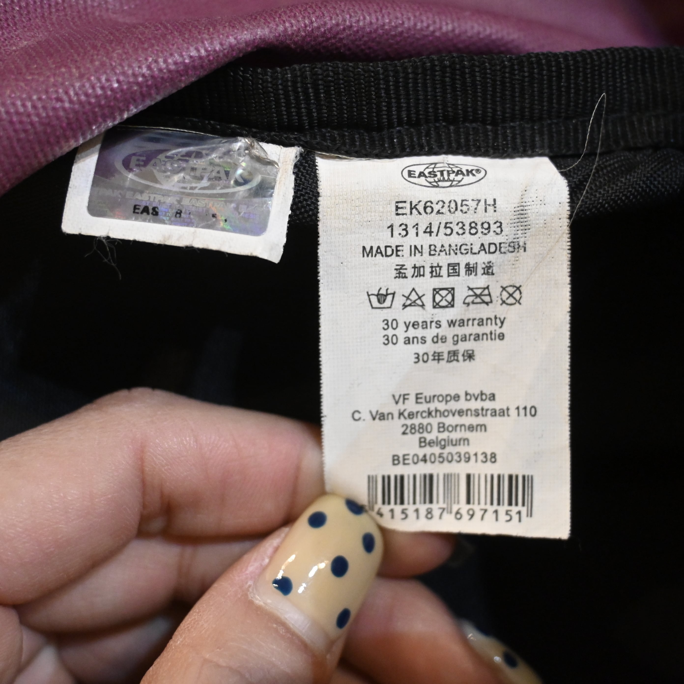 EASTPAK 00‘s Bangladesh製 Nylon Backpack , Purple