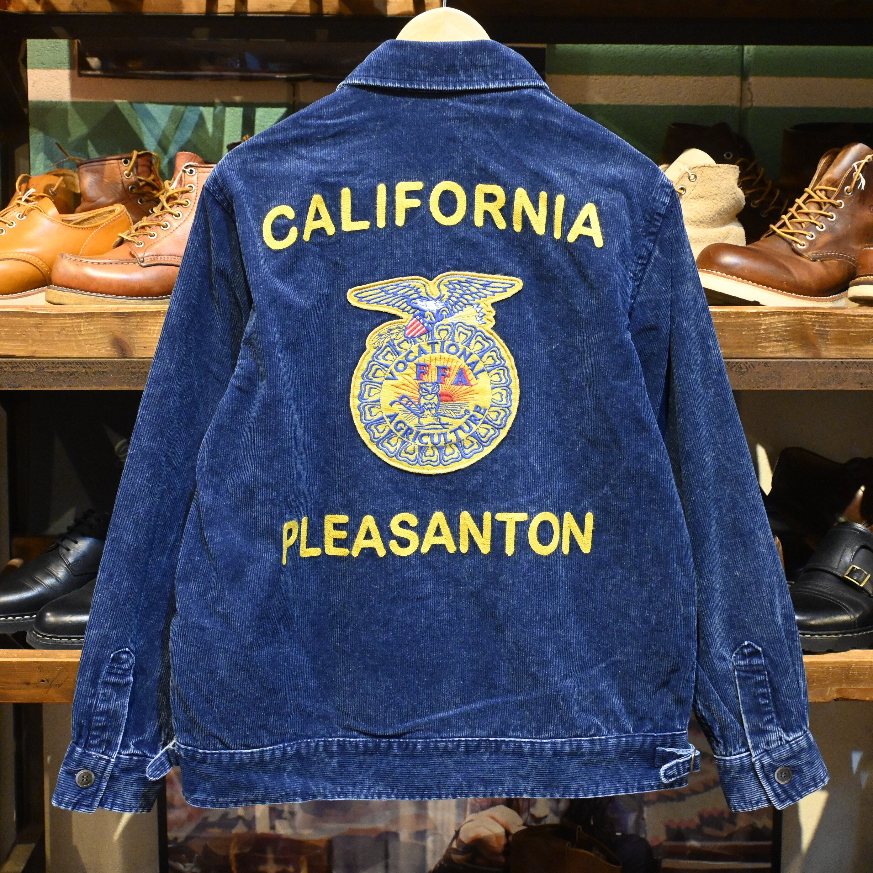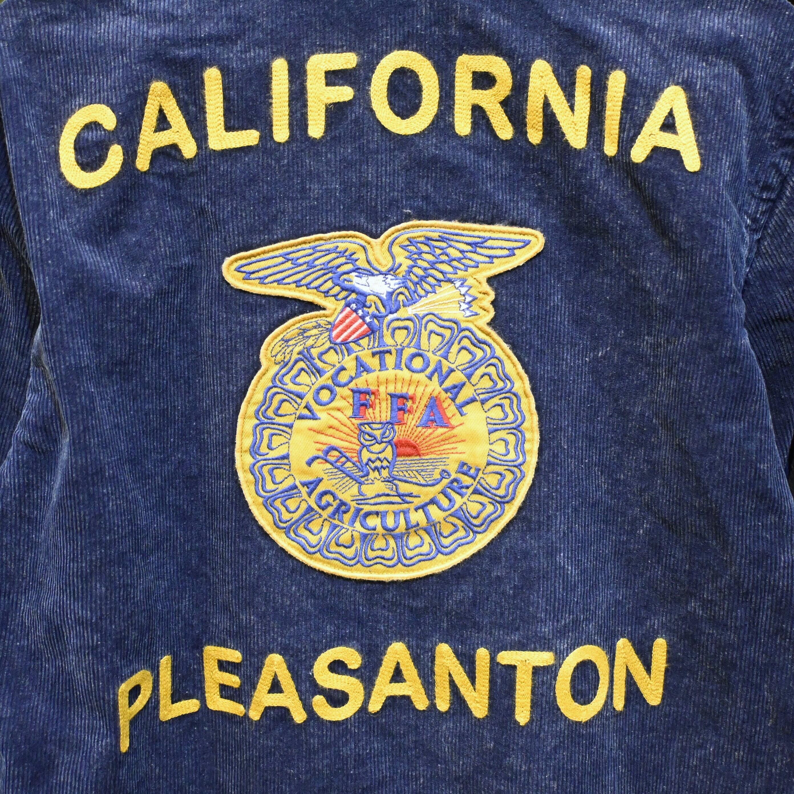 “CALIFORNIA / PLEASANTON” の刺繍とFFAエンブレムが大きく入り、ヴィンテージFFAジャケットらしい存在感のある仕上がり。