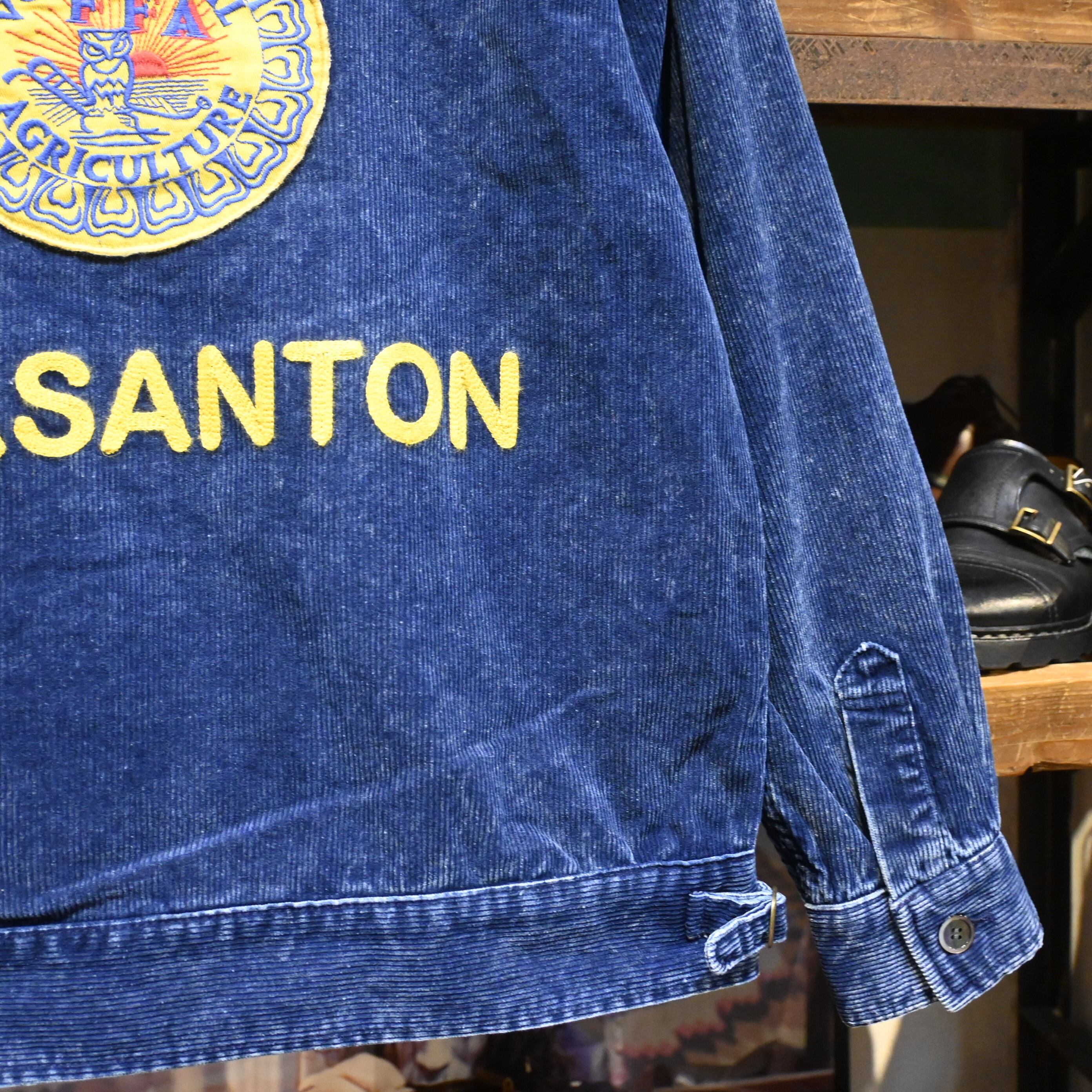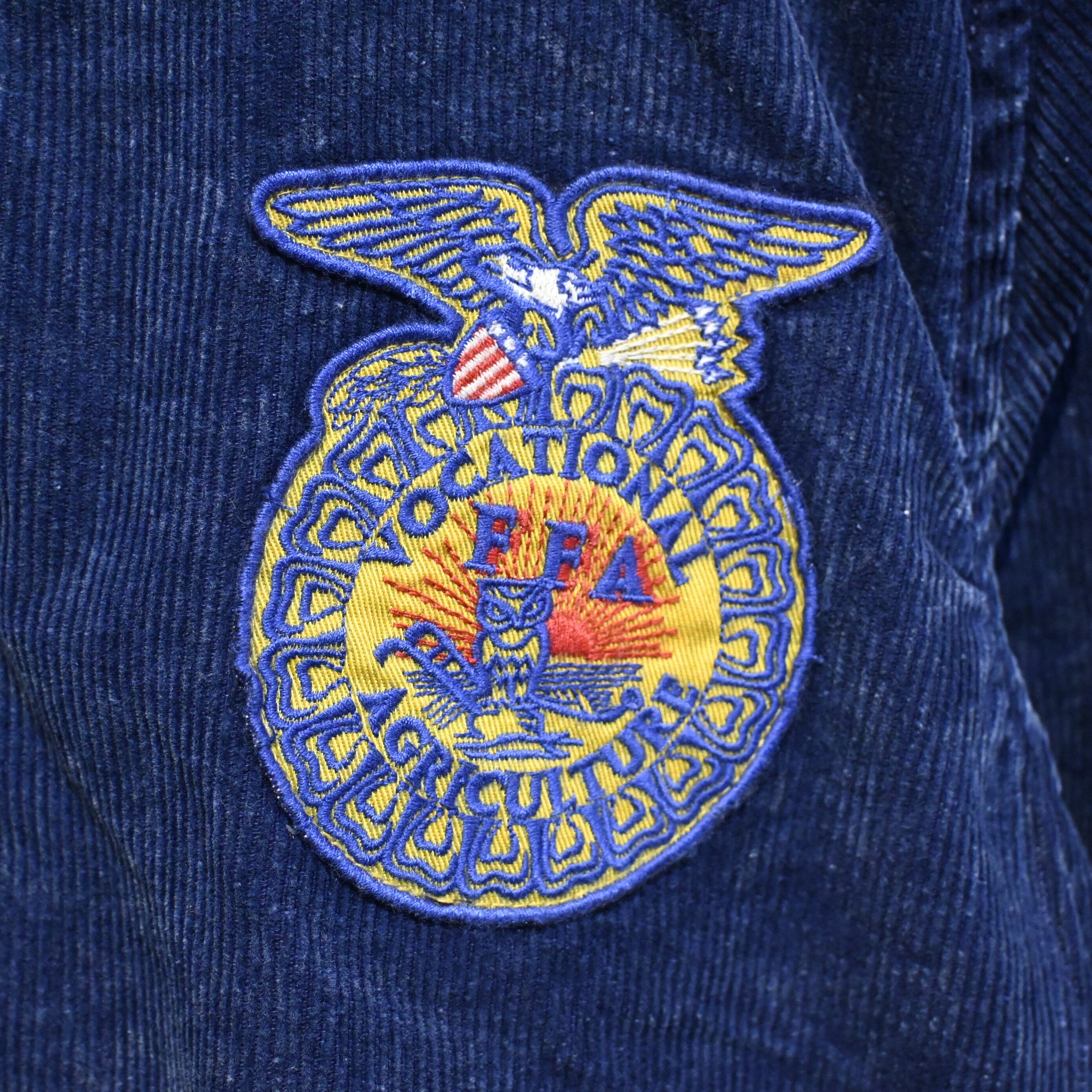 FFAジャケットは1930年代頃から学生用ユニフォームとして着用されていたもので、ネイビーのコーデュロイボディに大きなワッペンや刺繍が入るデザインが特徴です。現在ではヴィンテージ市場でも人気が高く、アメリカンカルチャーを象徴するアイテムのひとつとして知られています。