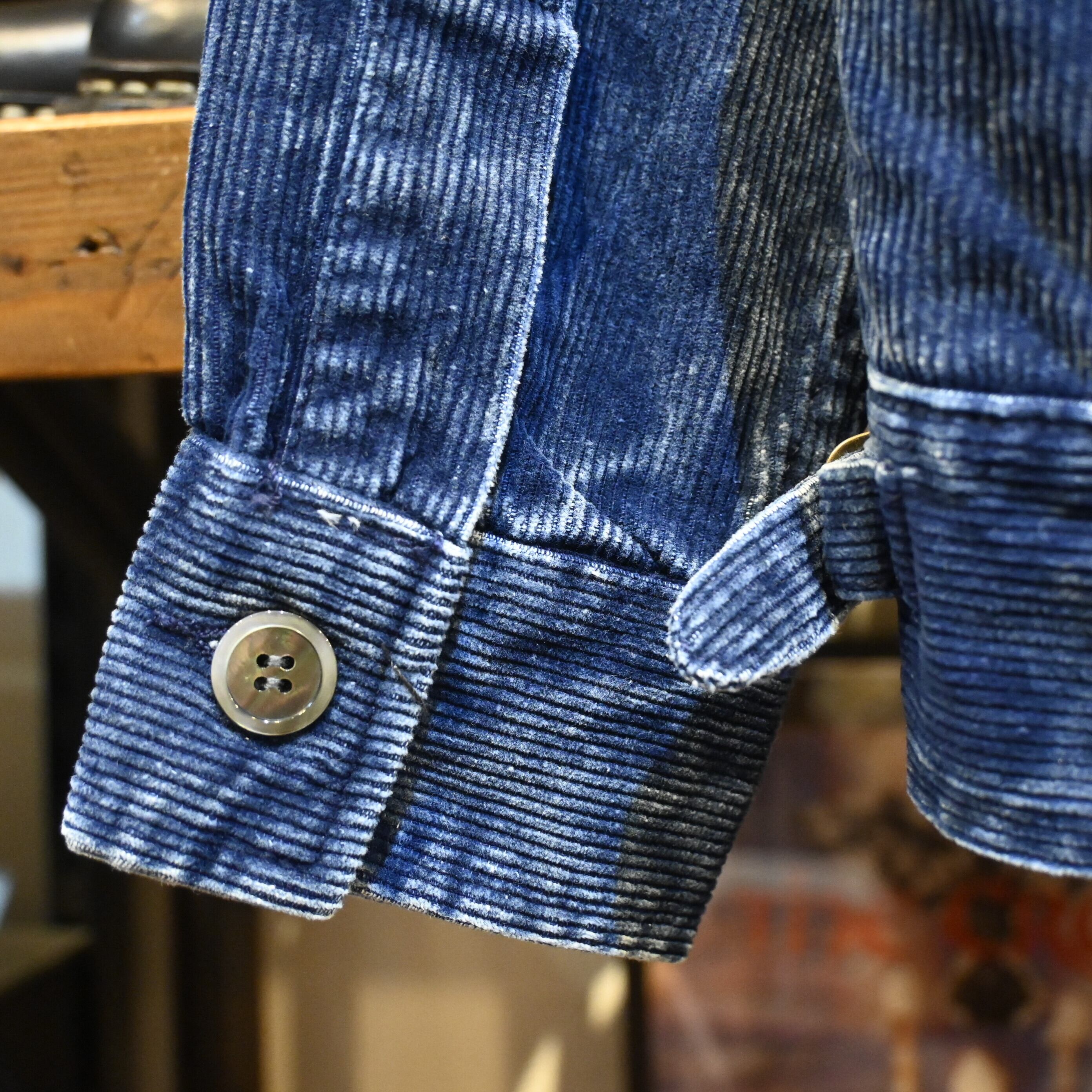 インディゴコーデュロイ特有の経年変化も楽しめるため、長く着込むことでより味わいのある一着に育っていきます。