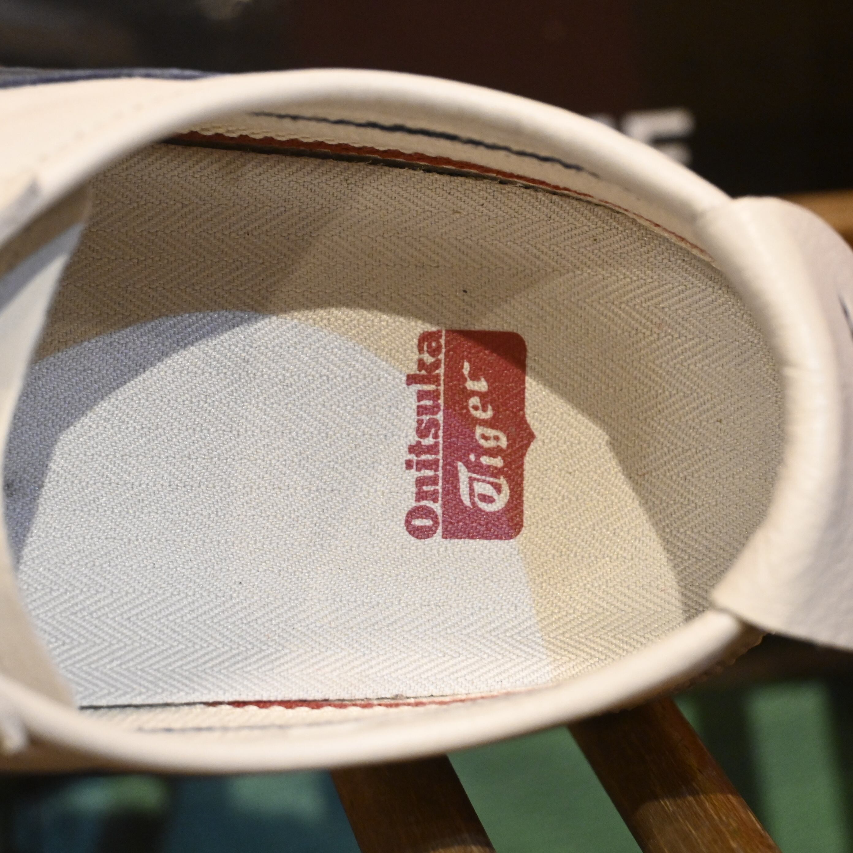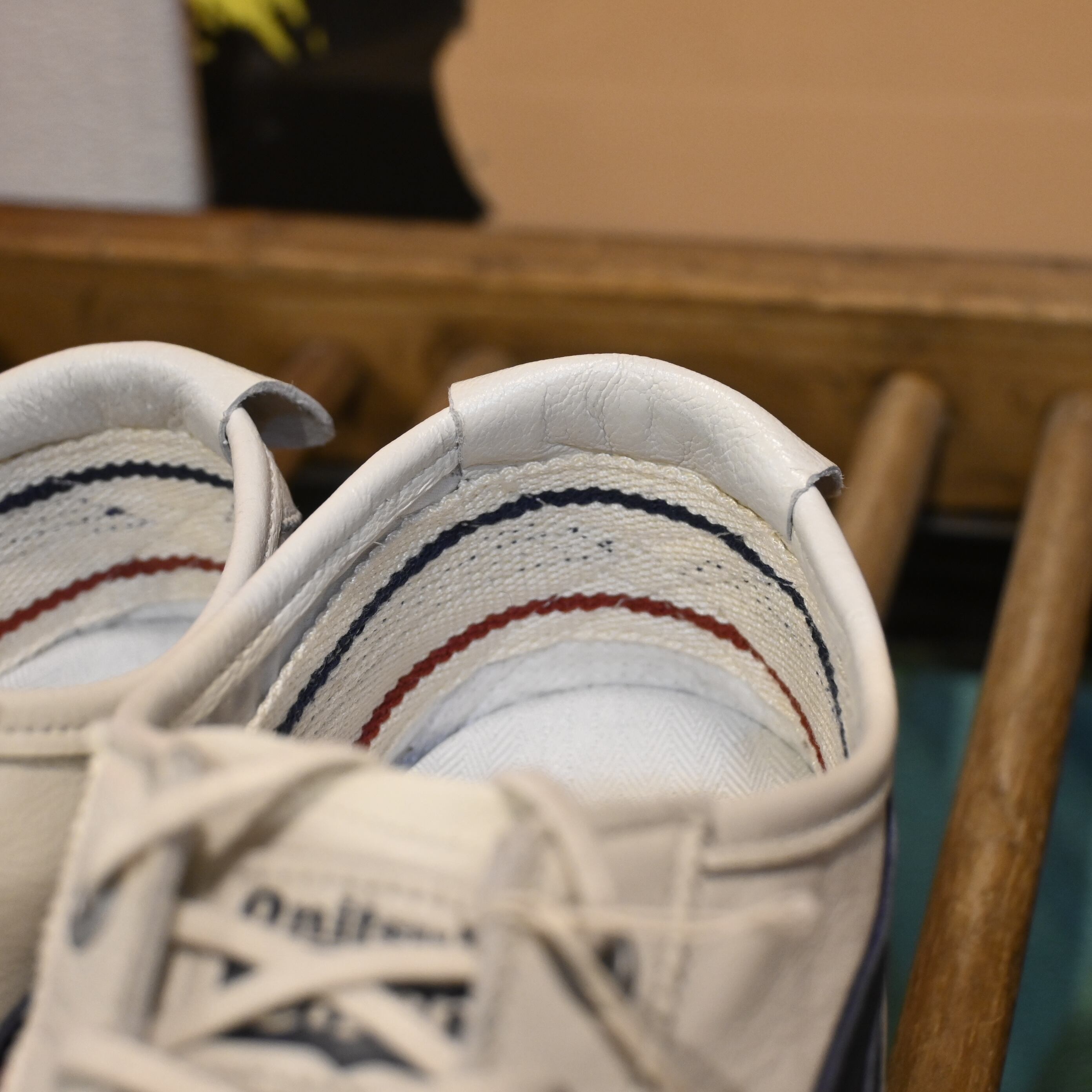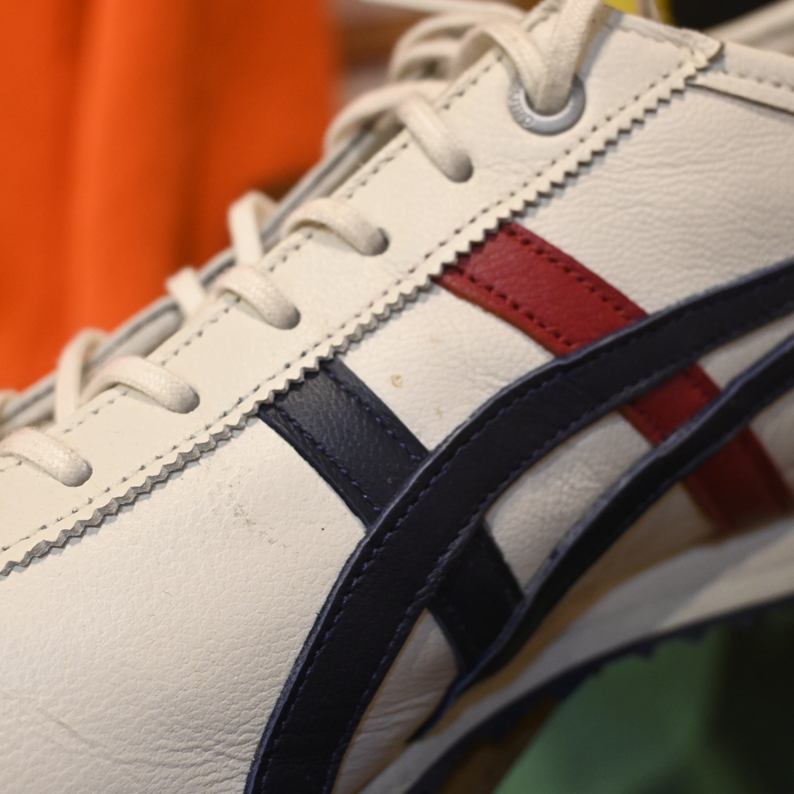 象徴的なオニツカストライプと、アイボリー×ネイビー×レッドのカラーリングはクラシックな雰囲気があり、デニム、ミリタリー、スラックスなど幅広いスタイルと相性の良い一足。