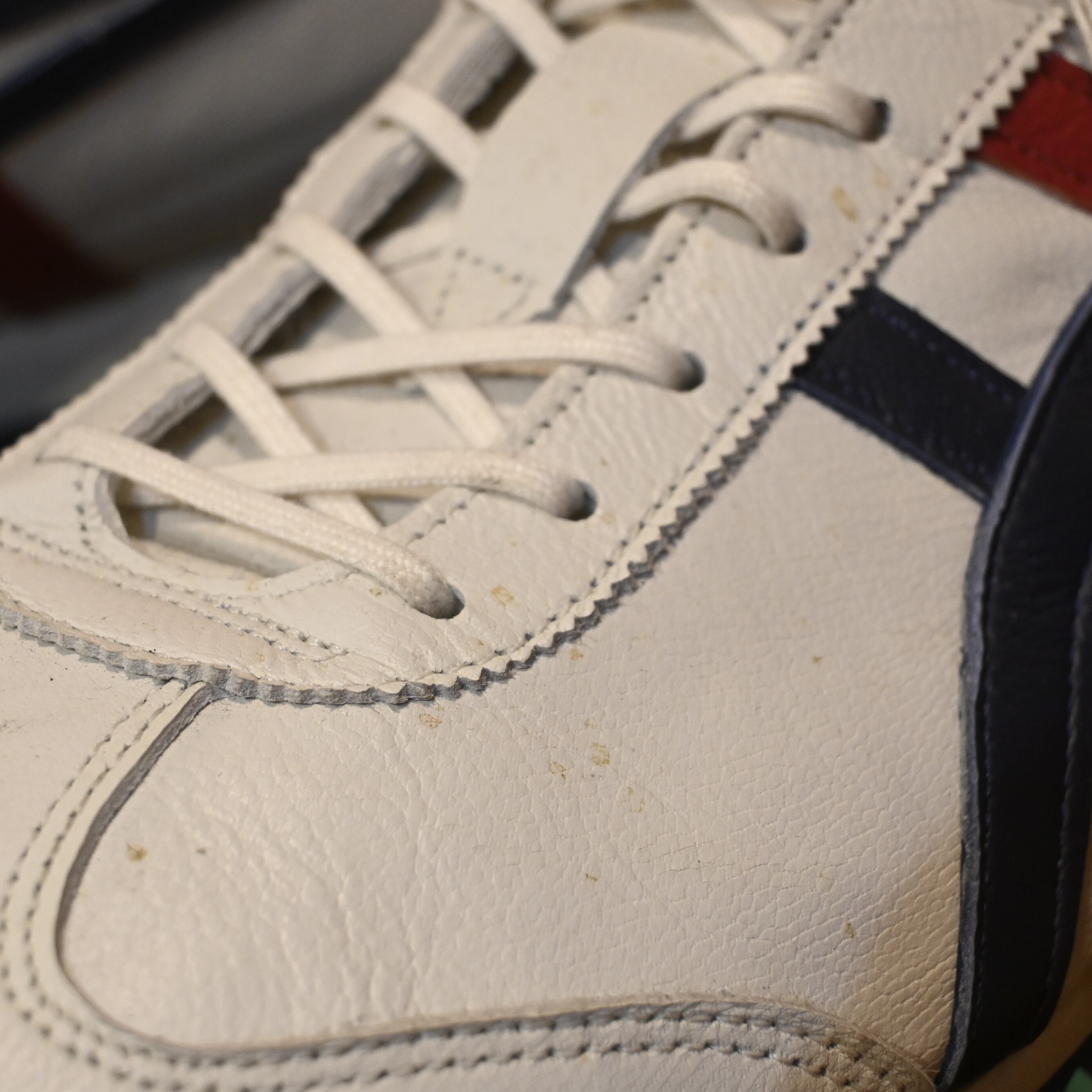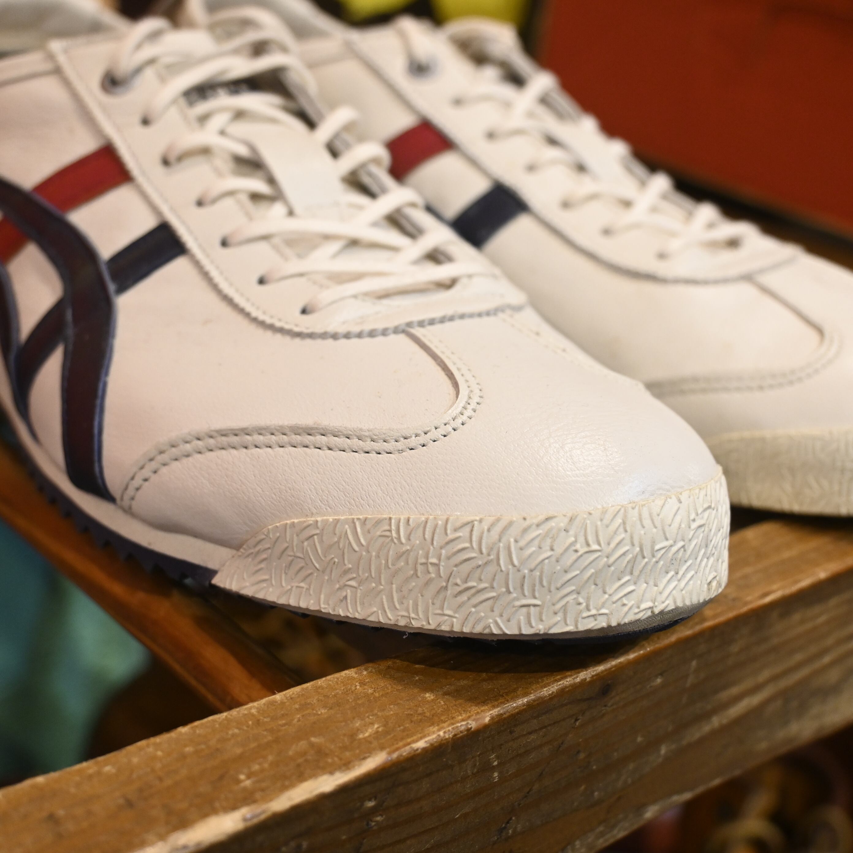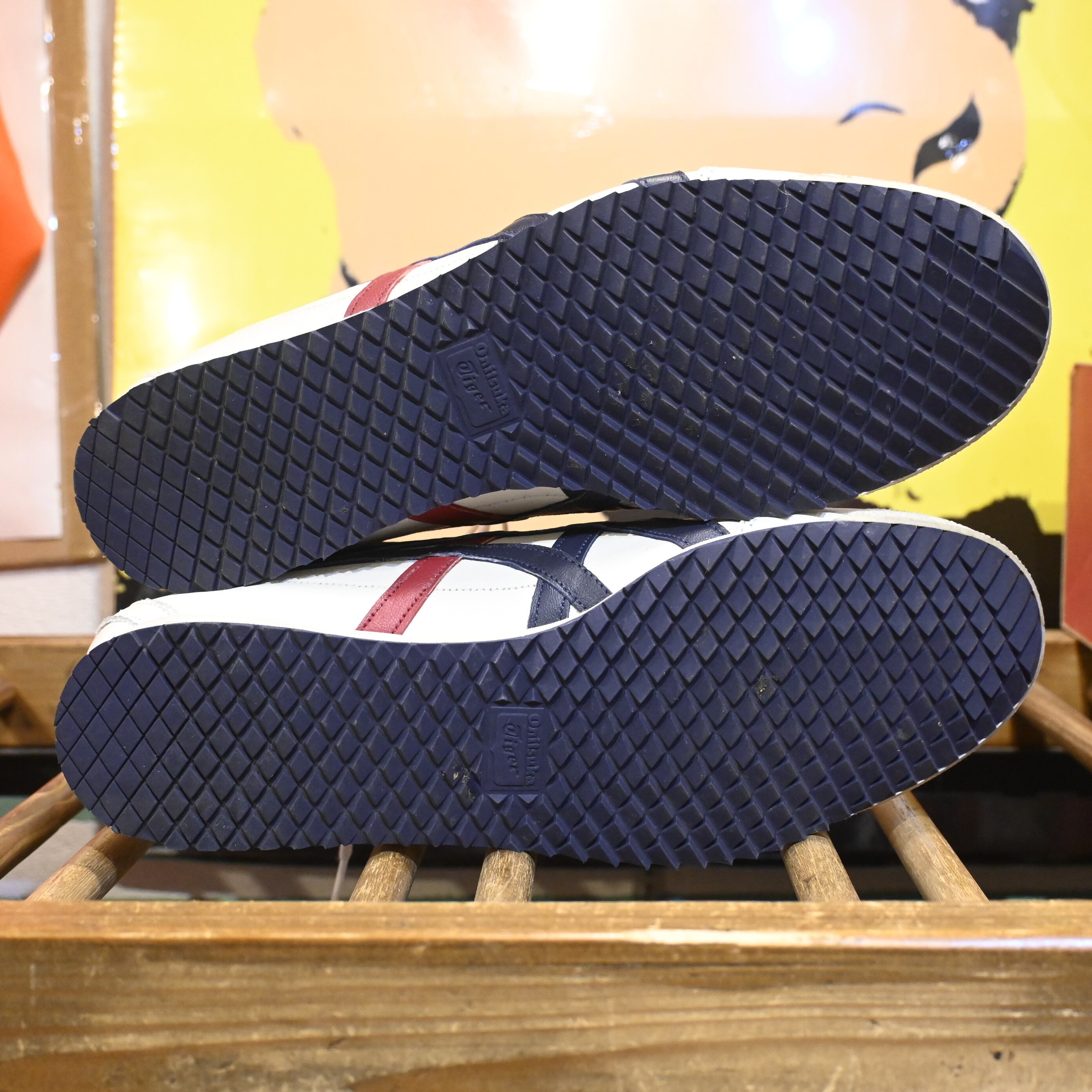 象徴的なオニツカストライプと、アイボリー×ネイビー×レッドのカラーリングはクラシックな雰囲気があり、デニム、ミリタリー、スラックスなど幅広いスタイルと相性の良い一足。