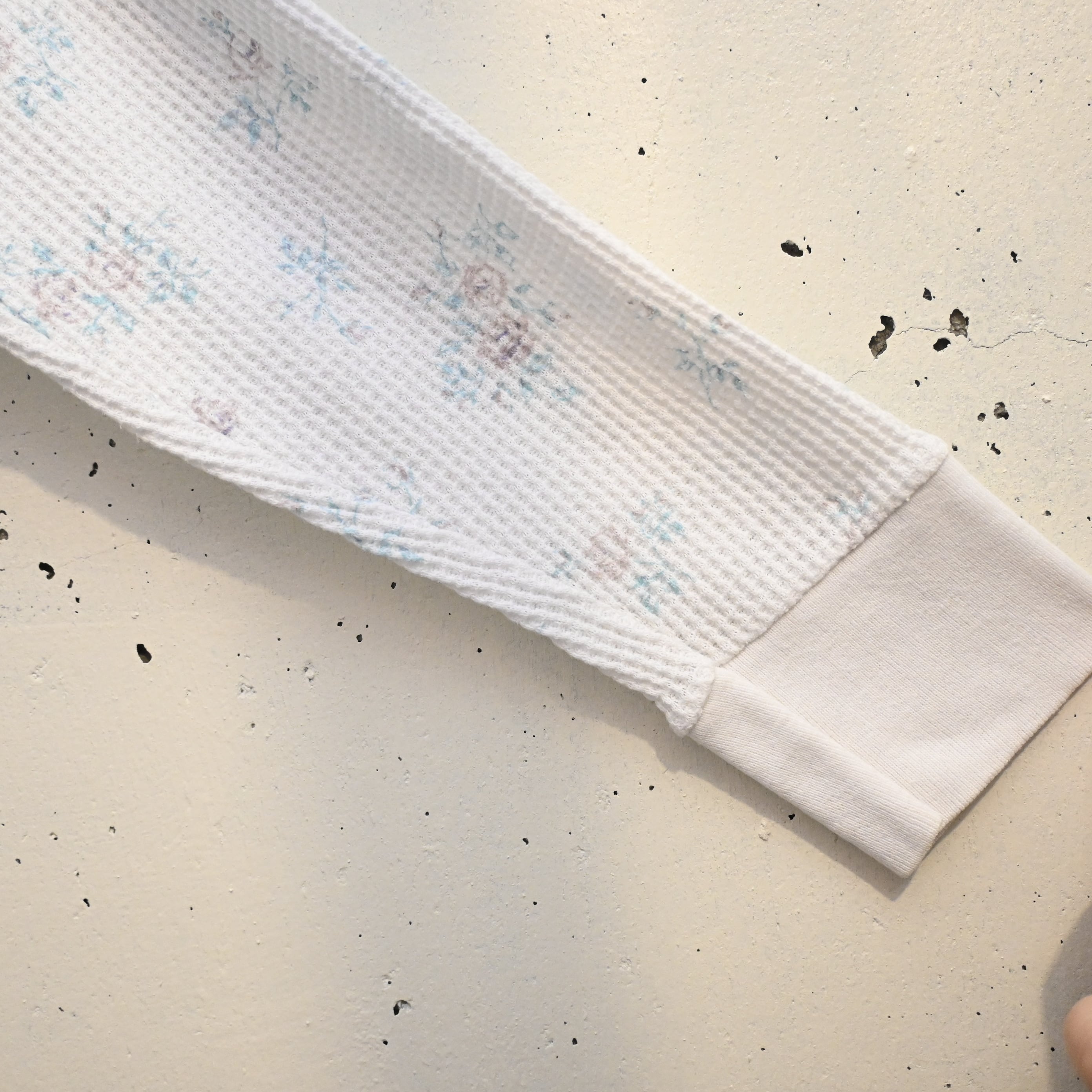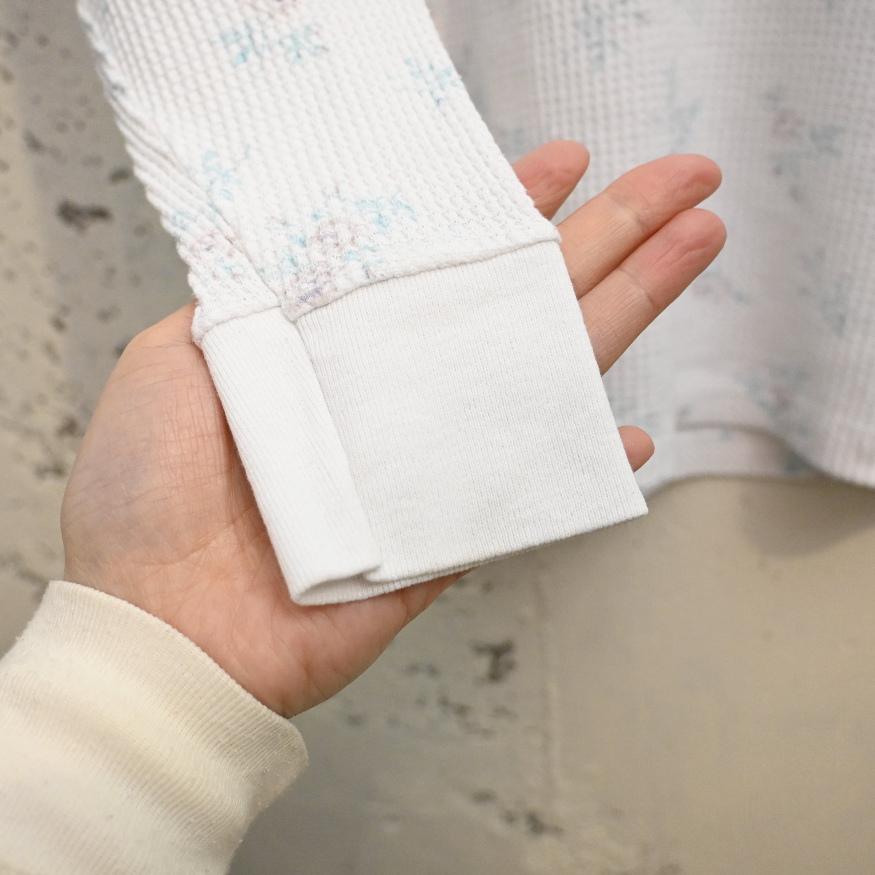 花柄プリントが施されたサーマル生地のロングスリーブTシャツです。