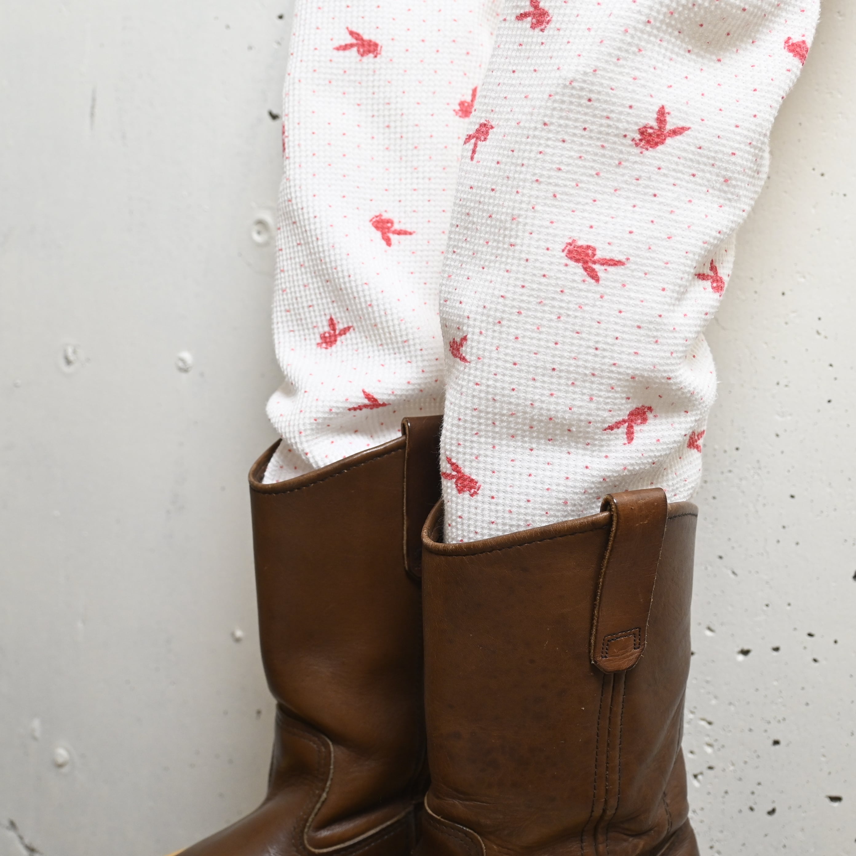 [ L ] PLAYBOY 80-90s USA製 Logo Print Pattern Thermal Pants , White / プレイボーイ ロゴ総柄 サーマルパンツ