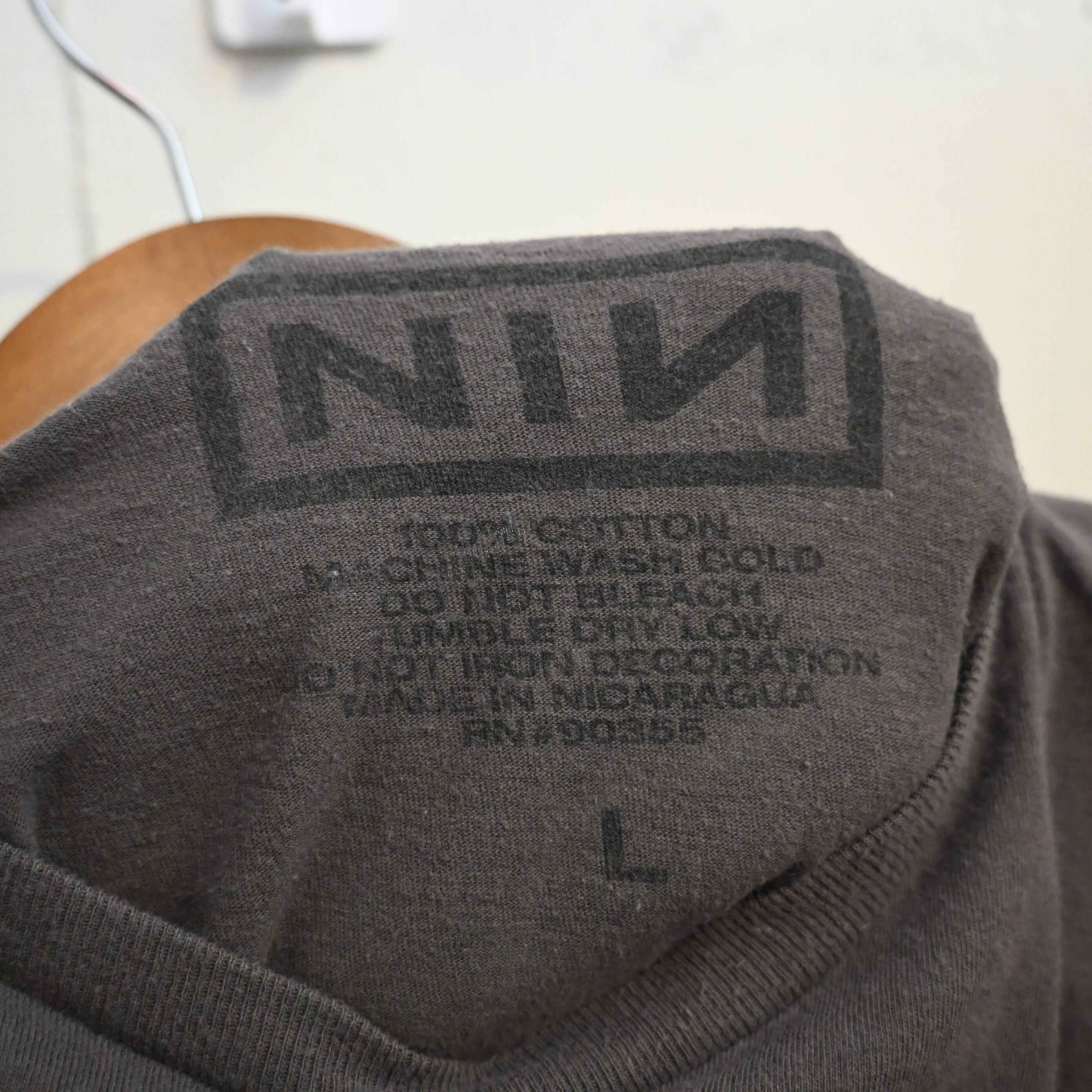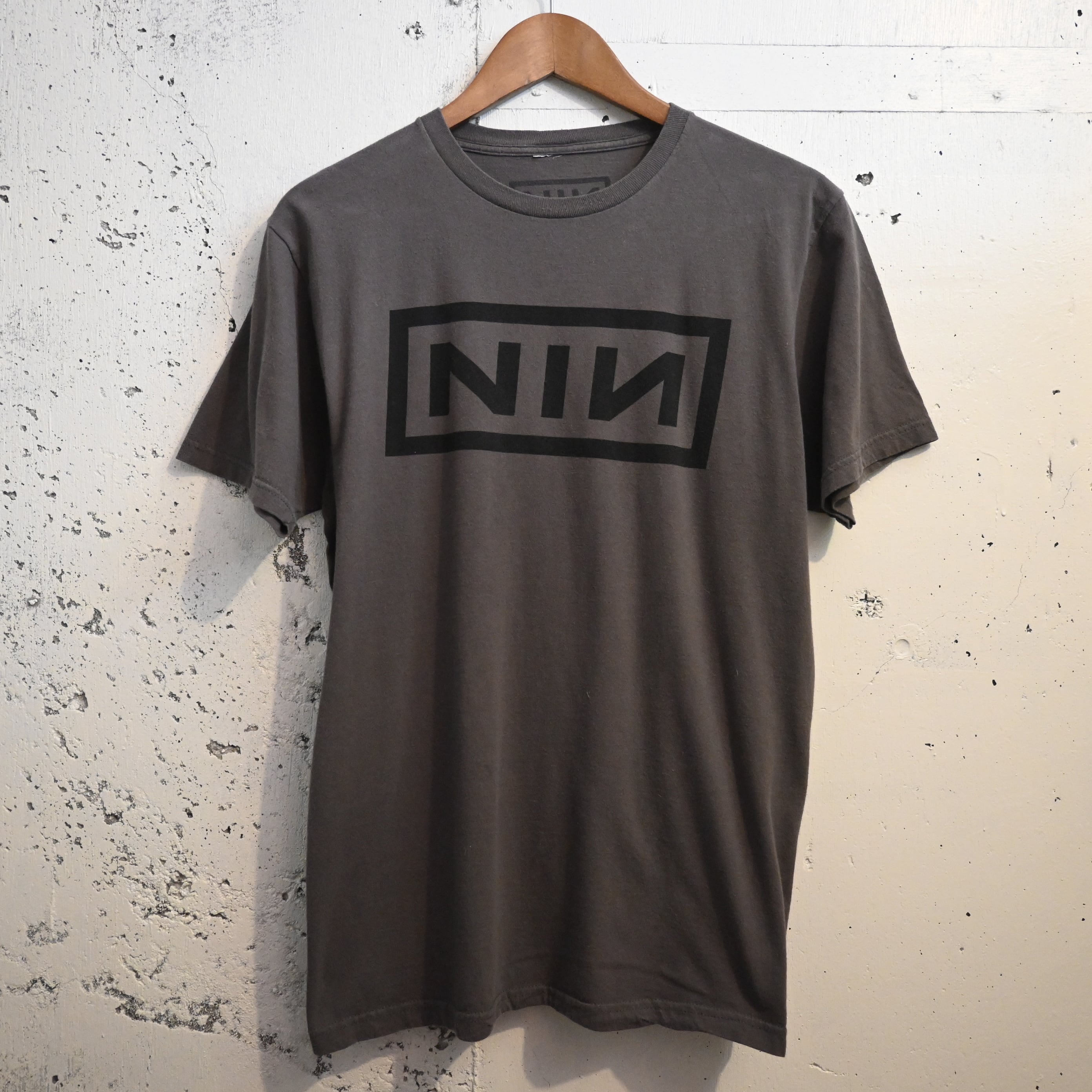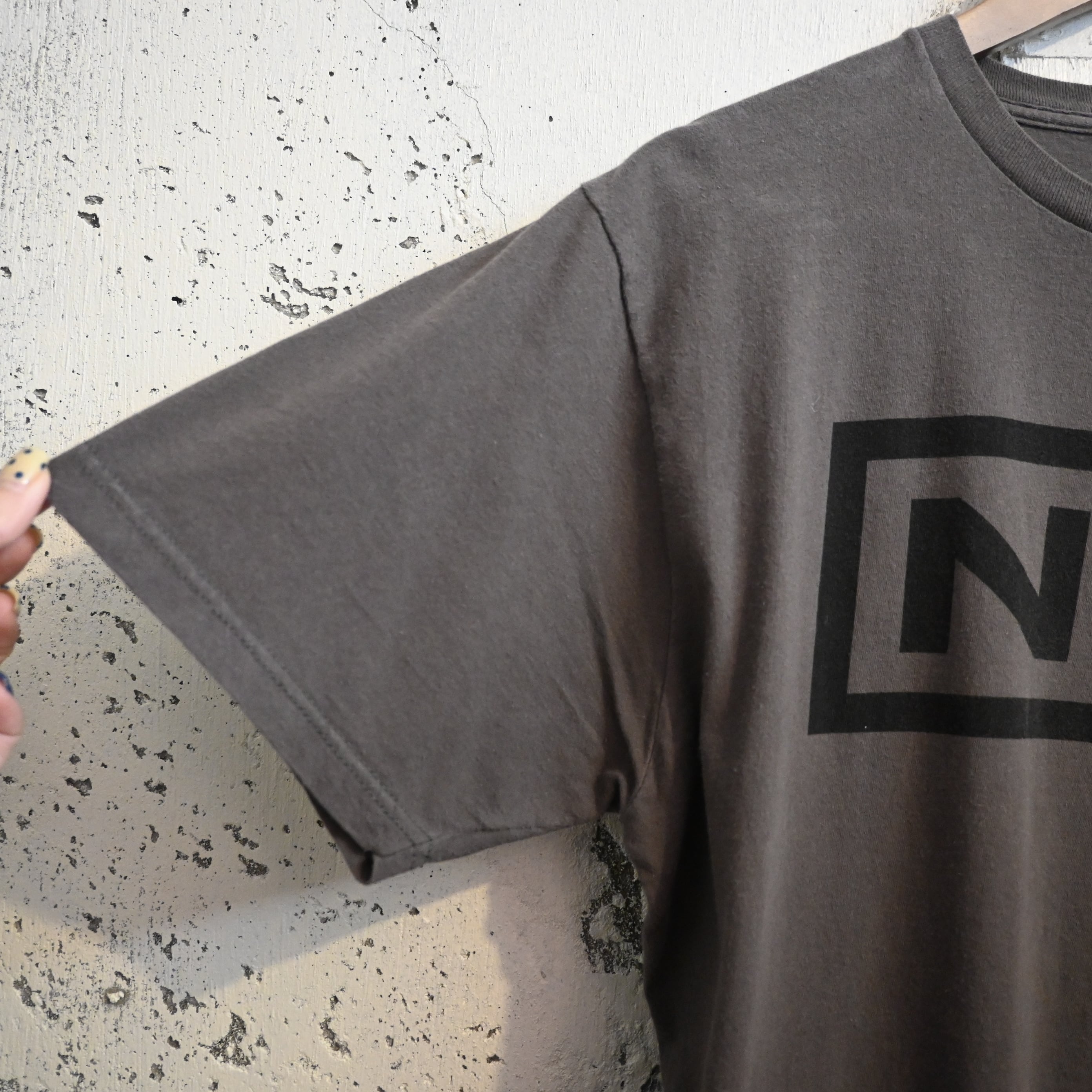 [ L ] NIN 00s Nicaragua製 Nine Inch Nails Band Logo Print T-shirt , Charcoal / ナインインチネイルズ バンドロゴTシャツ