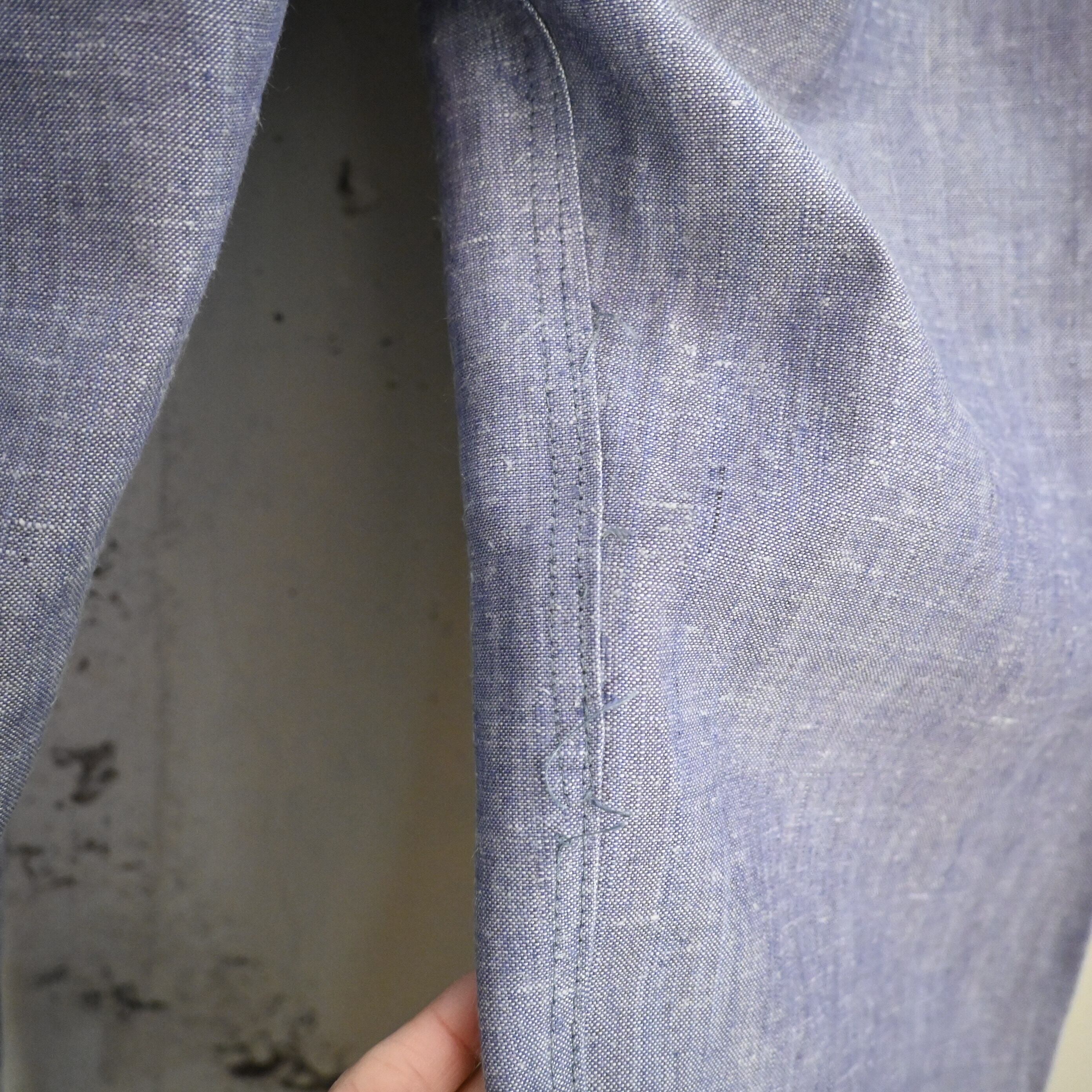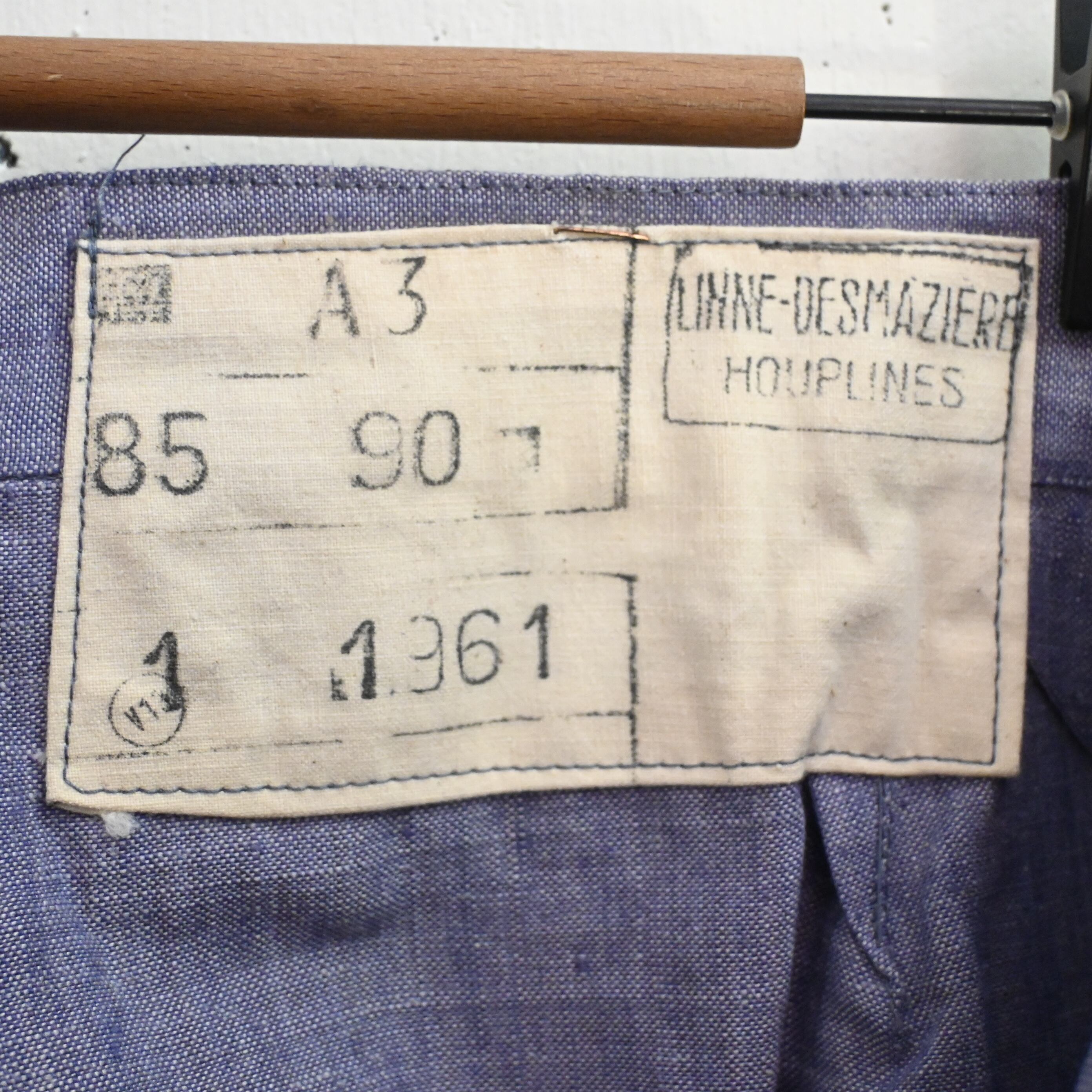 内側には 「LINNE DESMAZIÈRES HOUPLINES」 のスタンプタグが確認でき、フランスのリネン生地メーカーによる当時の軍用ファブリックが使用されていることが分かります。