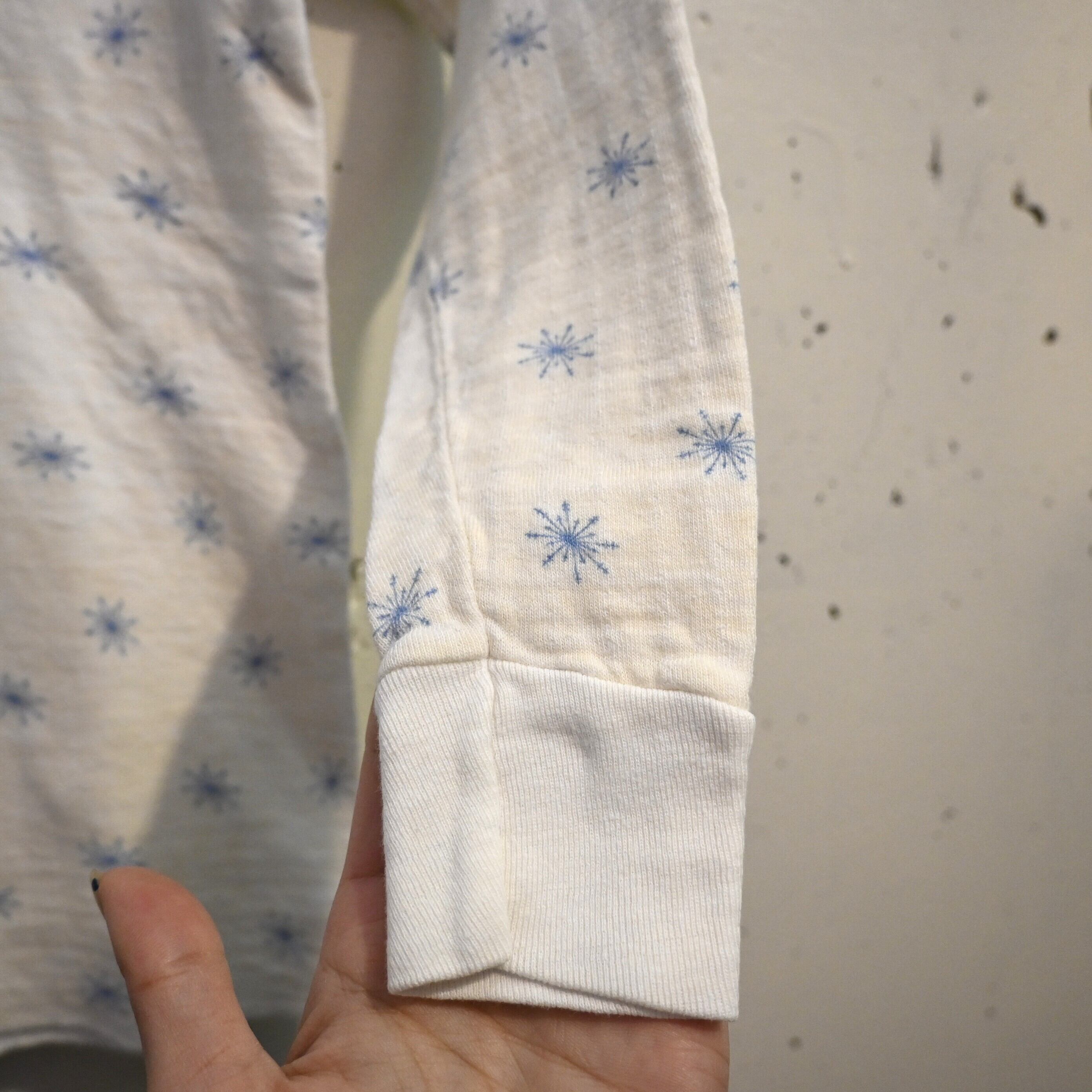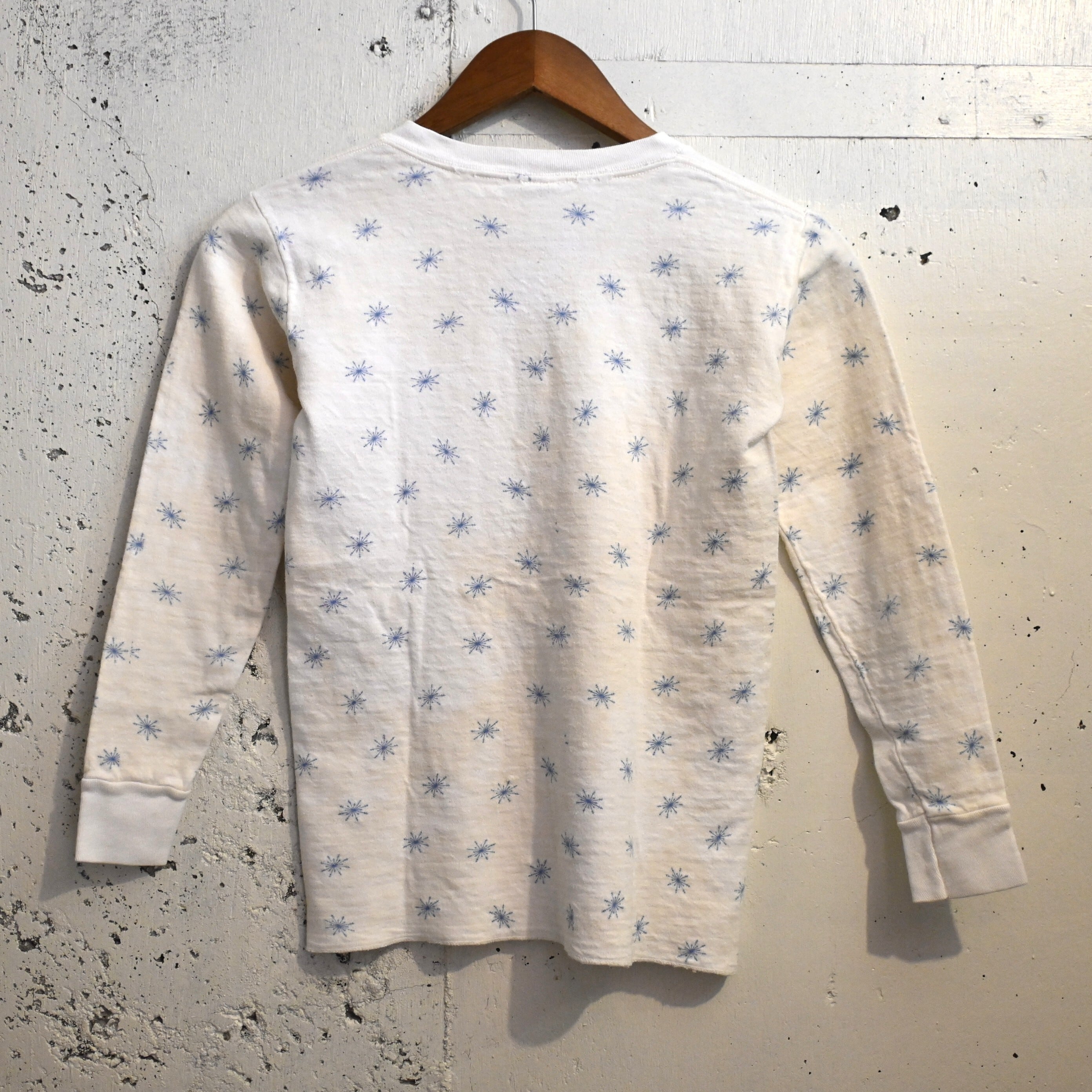 小紋柄のように散りばめられたスノーフレークデザインは、無地のサーマルとは違ったヴィンテージらしい雰囲気があり、コーディネートのアクセントとしても活躍します。