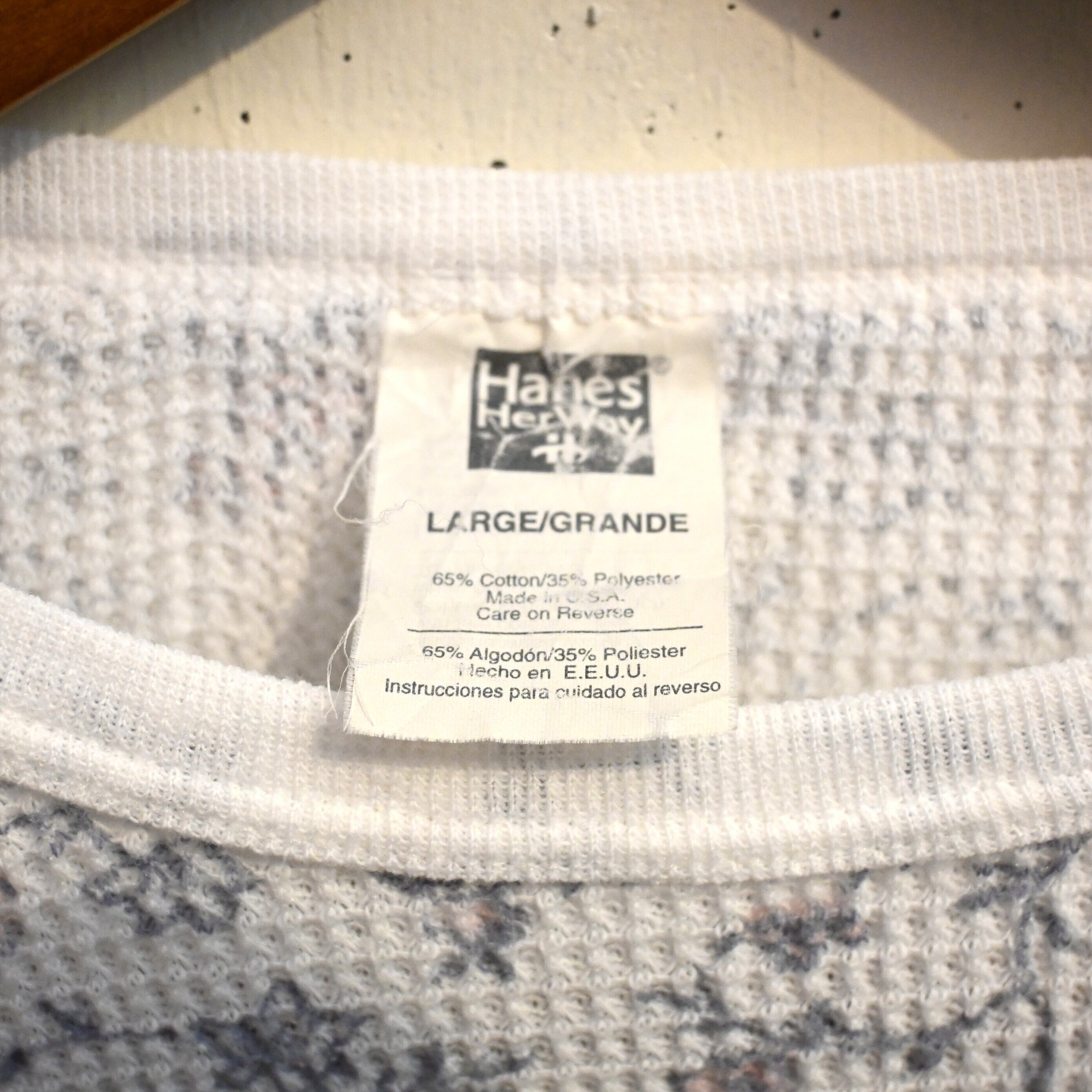 [ L ] Hanes 90s USA製 Floral pattern Thermal L/S T-shirt , White
