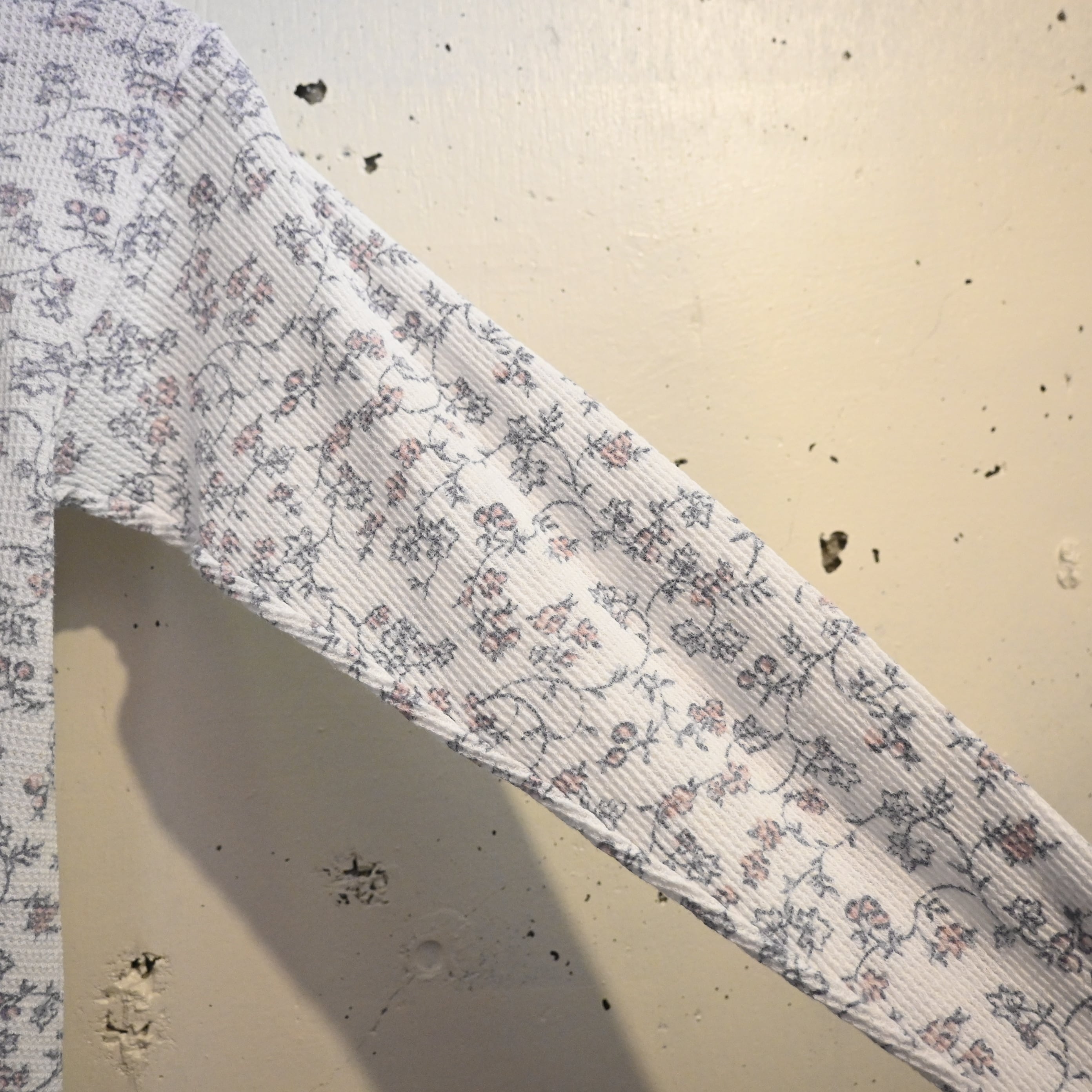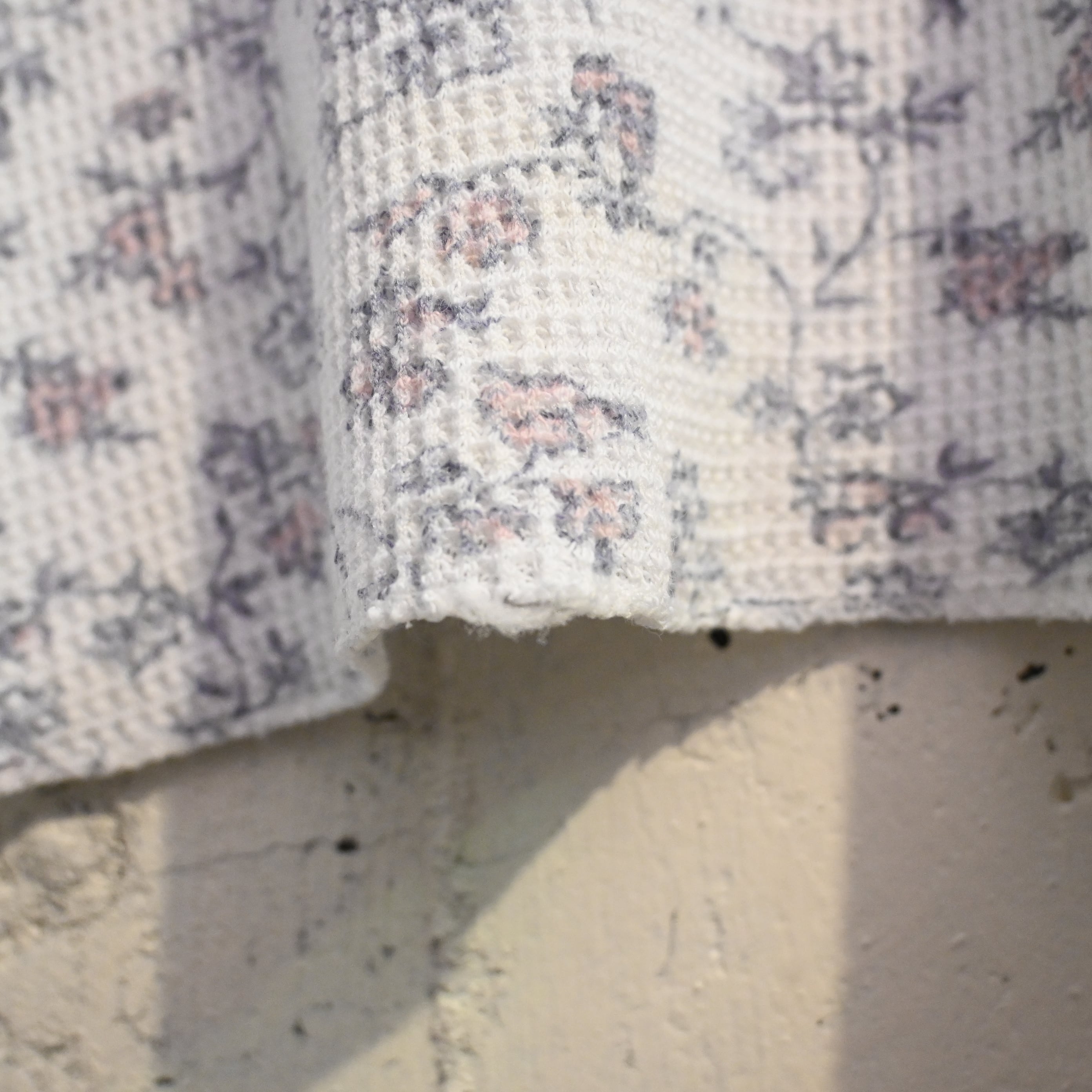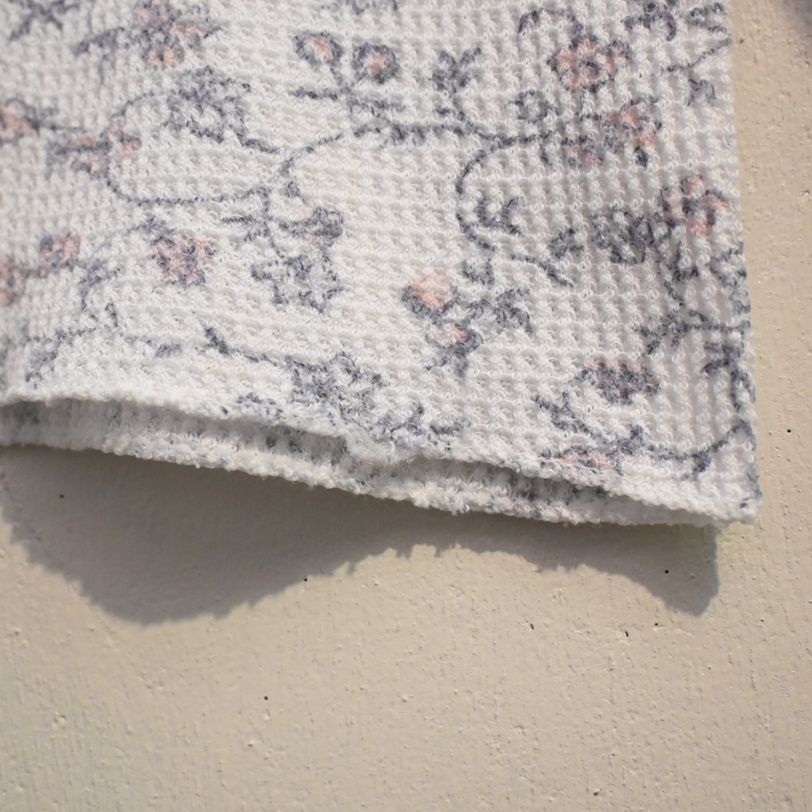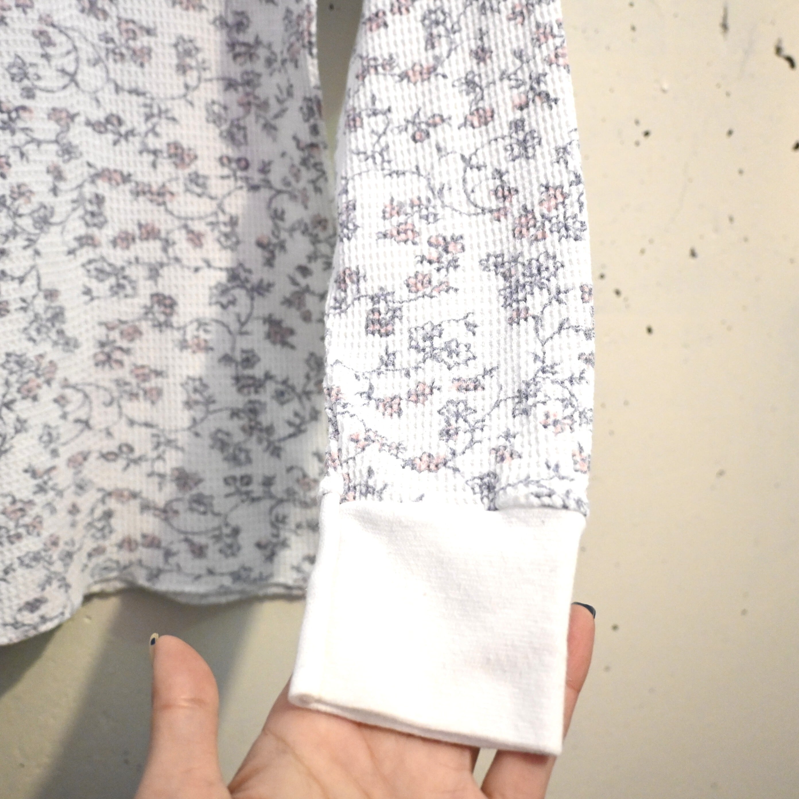 保温性の高いワッフル生地(サーマル生地)に、繊細な小花柄が全面プリントされた雰囲気の良い一着です。