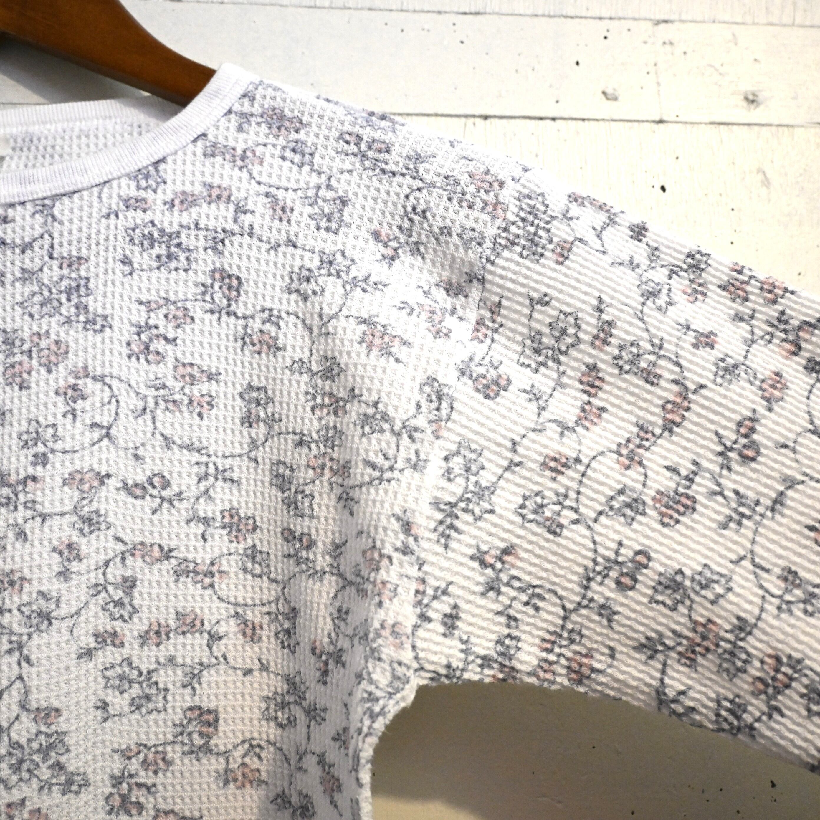 無地のサーマルは比較的見つかりますが、このような 花柄(フローラルパターン)タイプは球数が少なく、近年古着市場でも見つかりにくくなってきているアイテム。