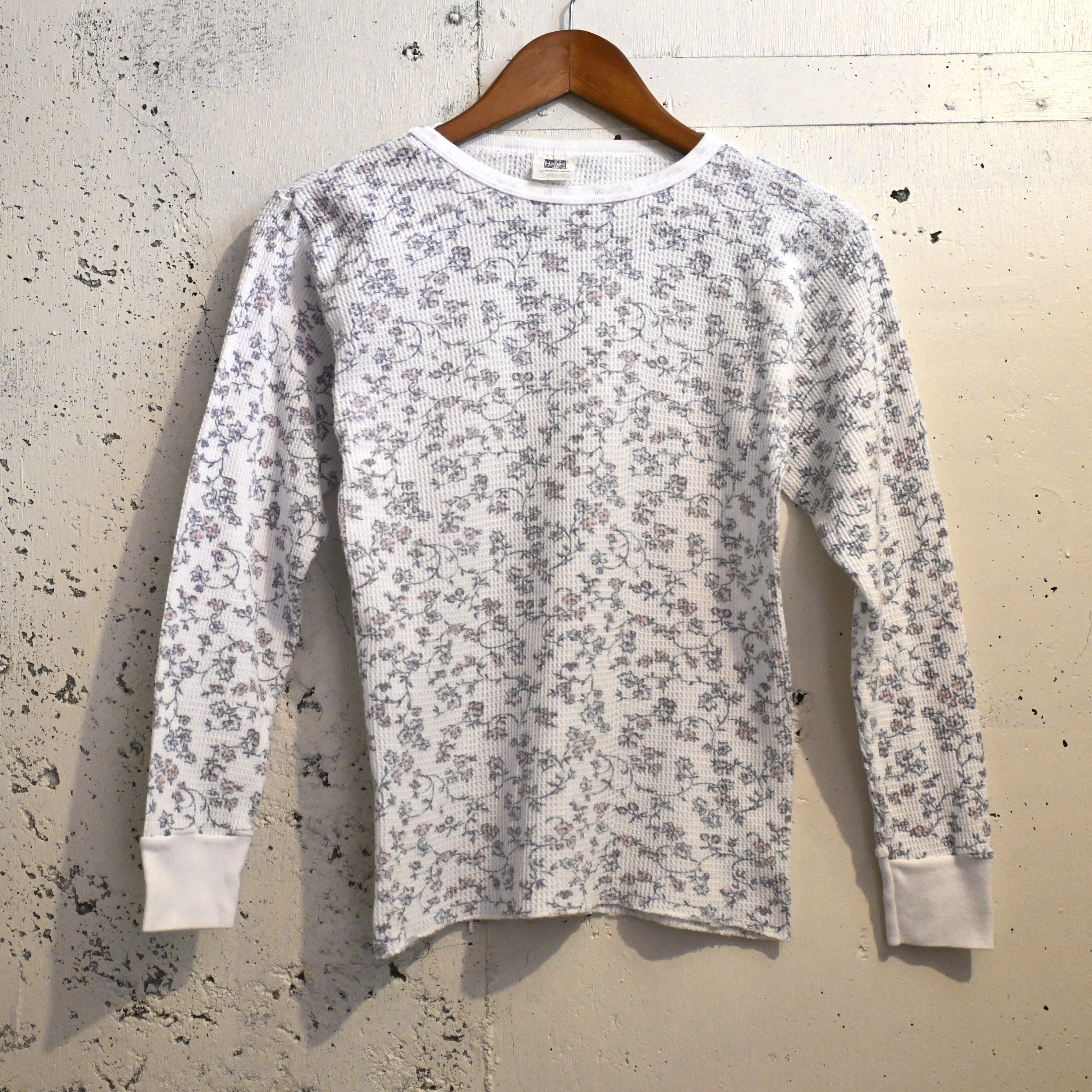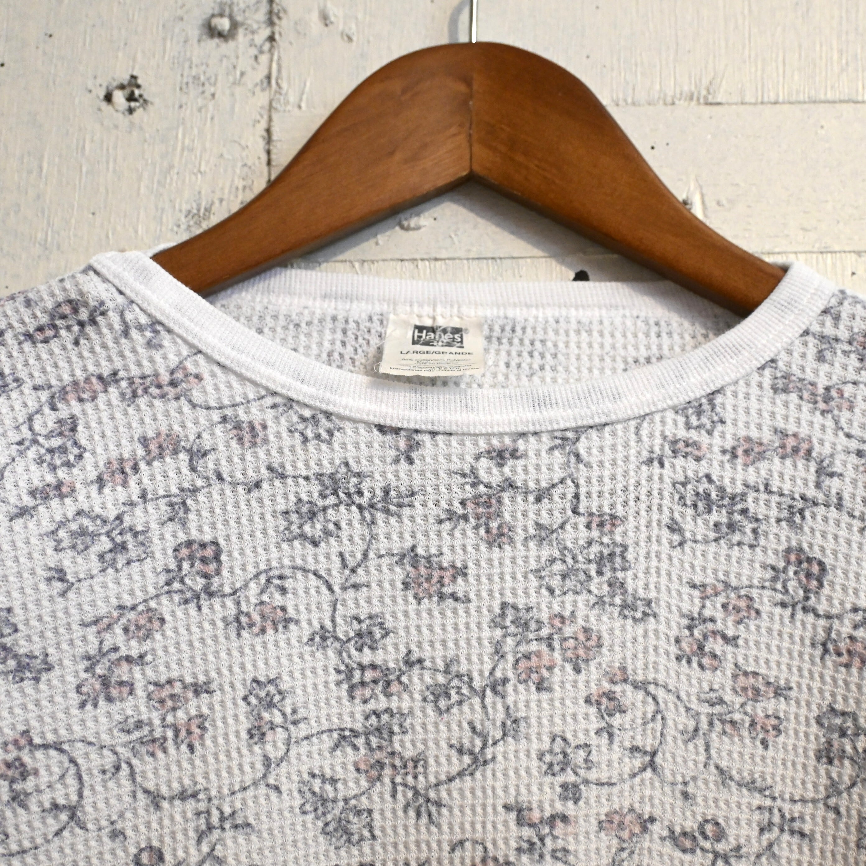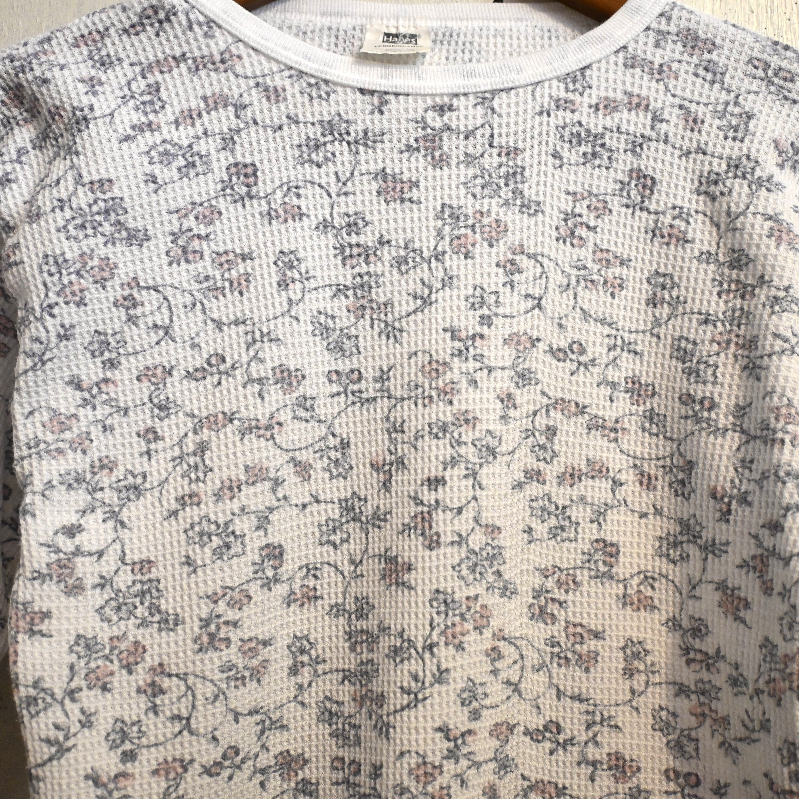 アメリカの老舗アンダーウェアブランド Hanes(ヘインズ) の90年代頃のフローラルパターンサーマルTシャツ。
