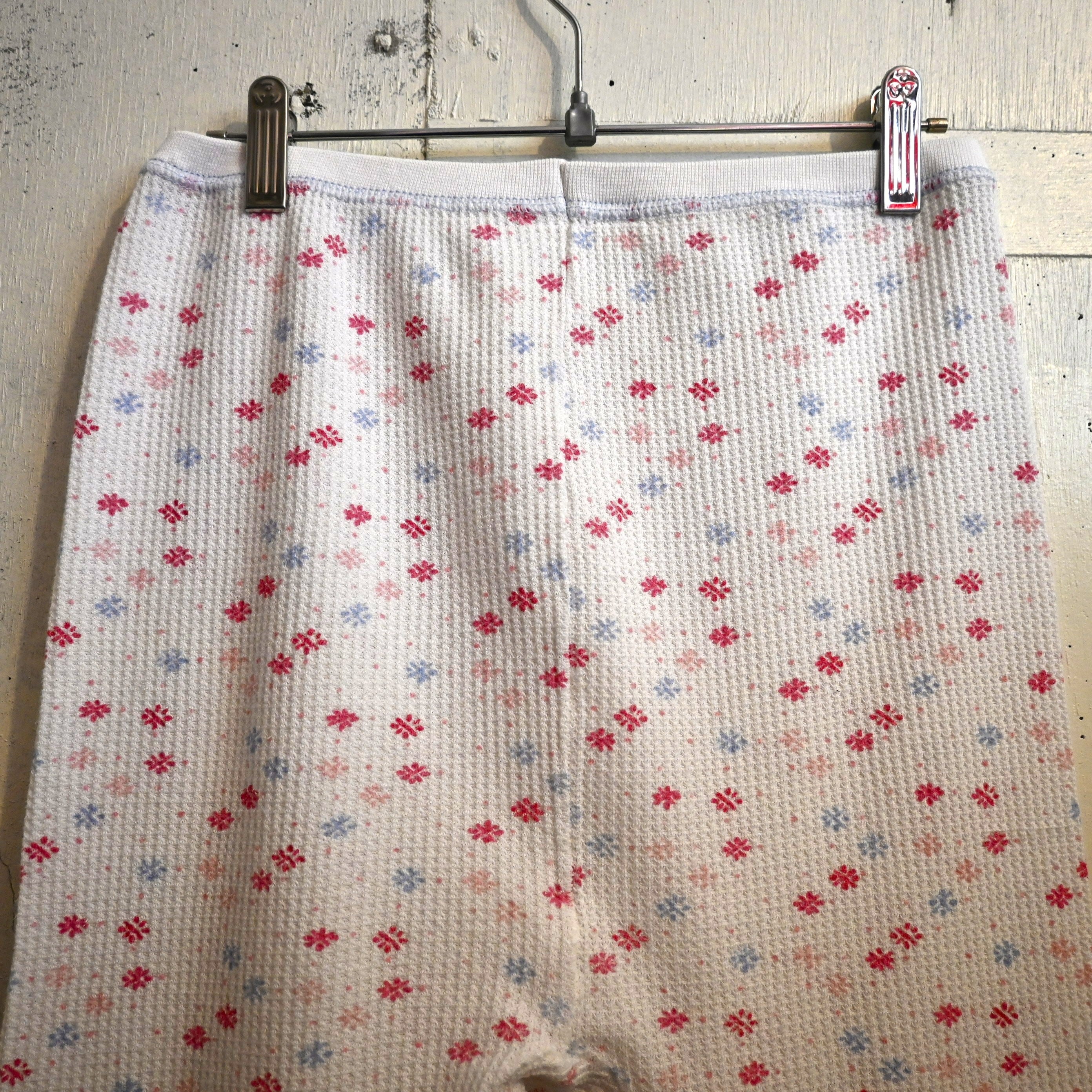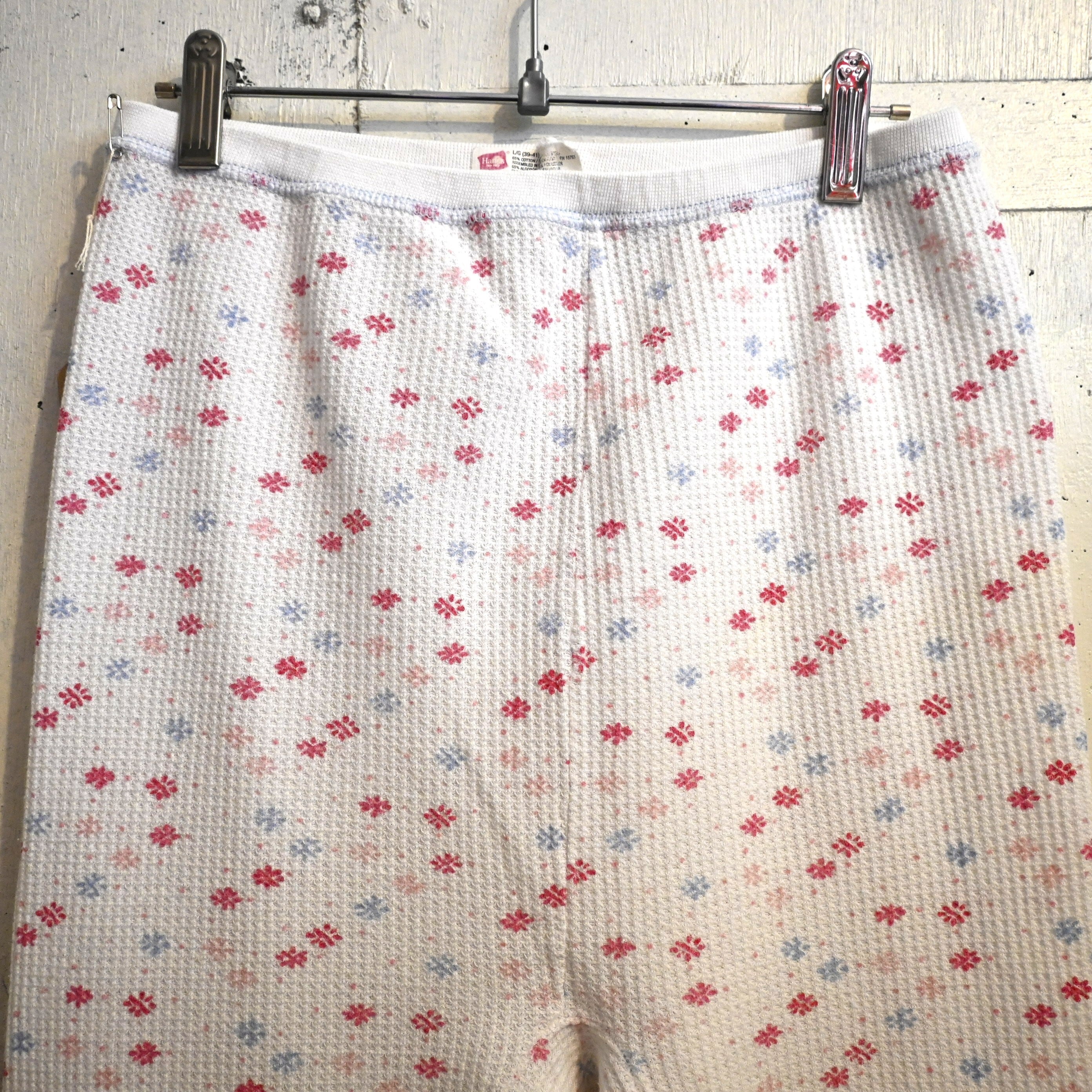 [ L ] Hanes 00s El Salvador製 Floral Pattern Thermal Pants , White / ヘインズ 花柄 サーマルパンツ ワッフルパンツ ヴィンテージ ホワイト