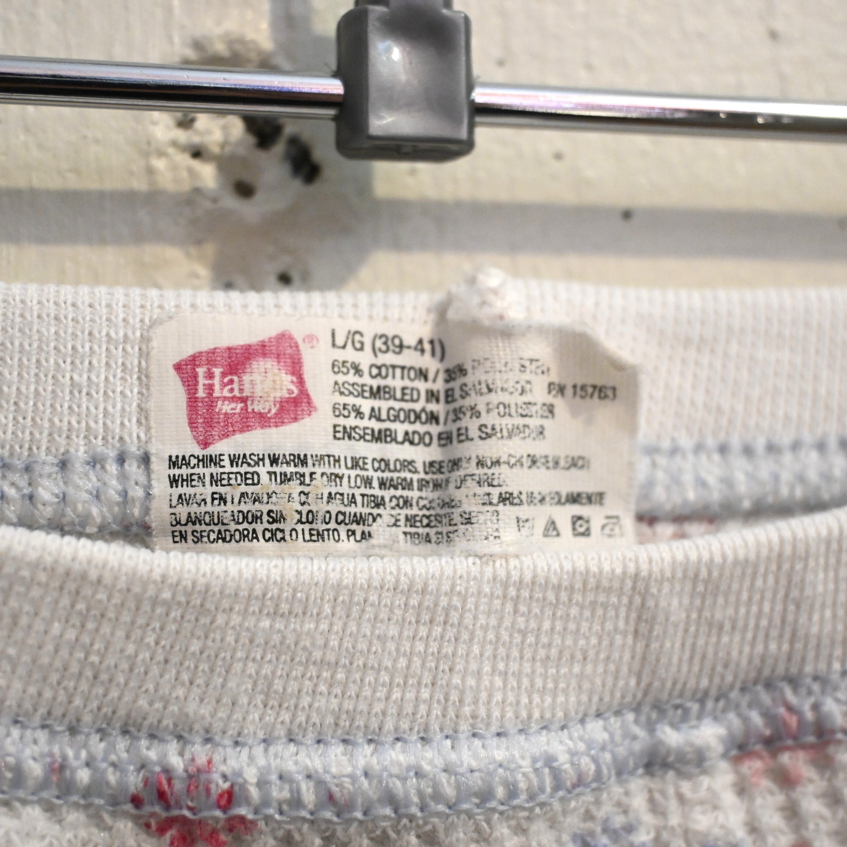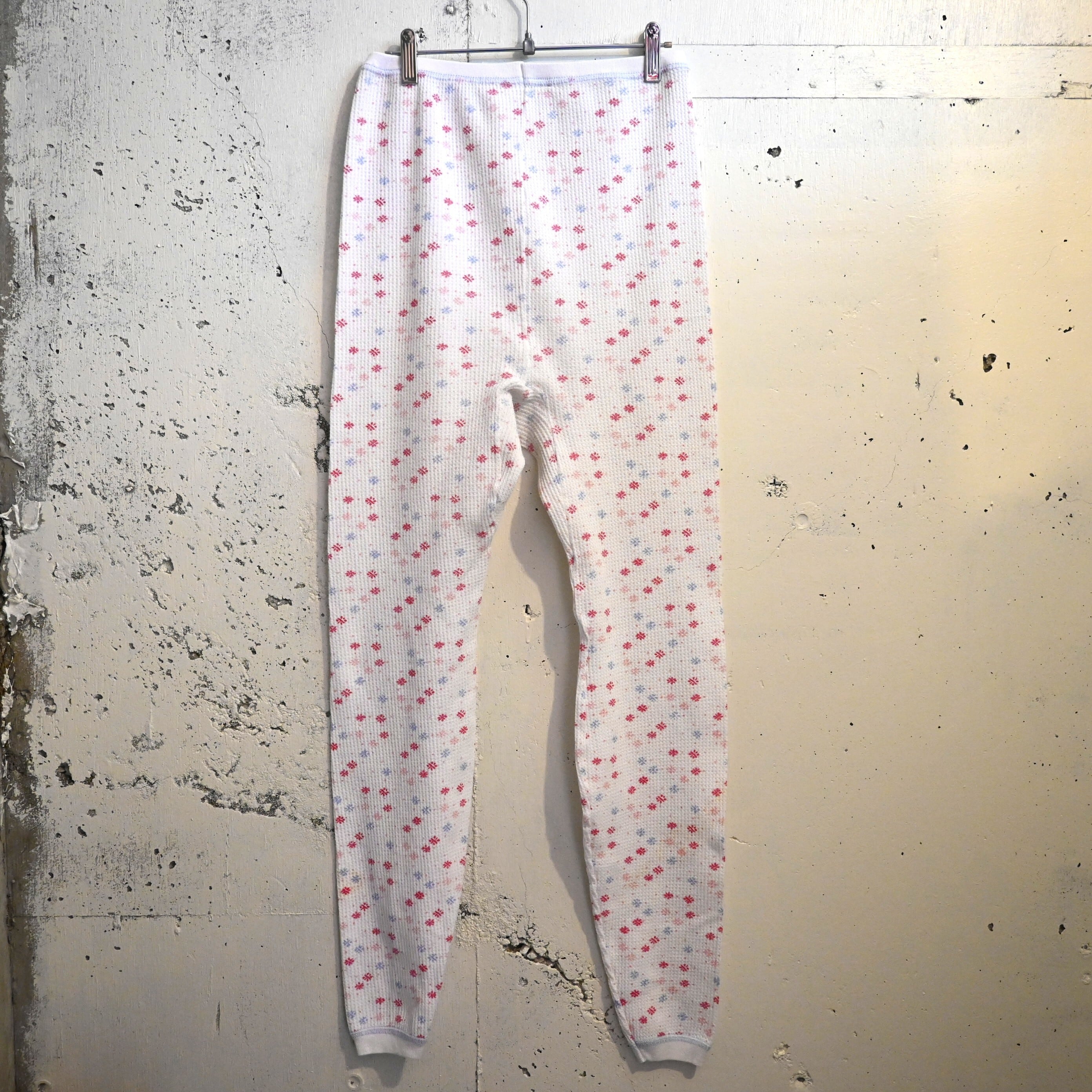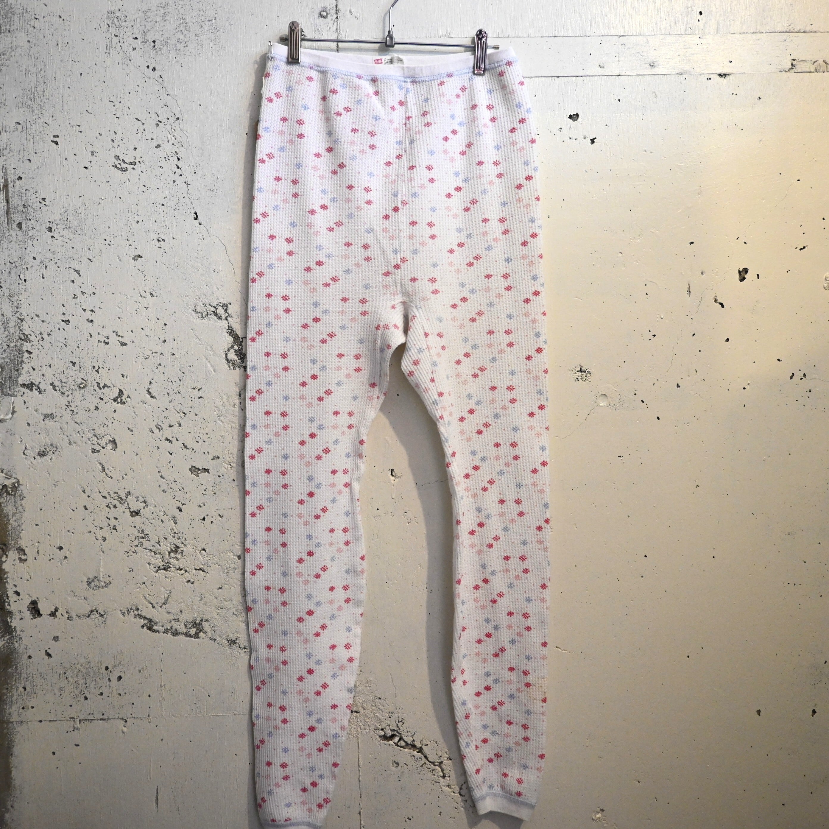 [ L ] Hanes 00s El Salvador製 Floral pattern Thermal Pants , White