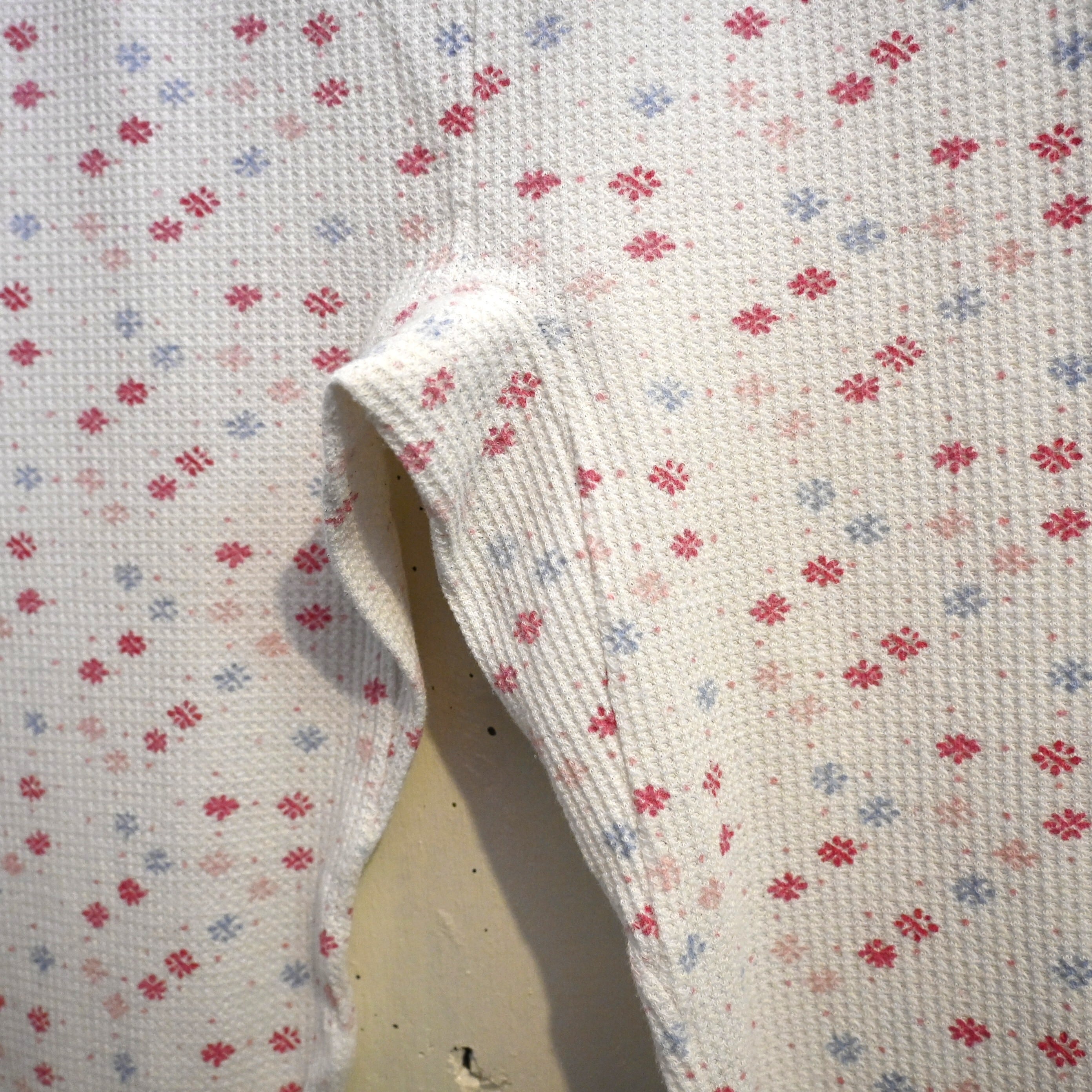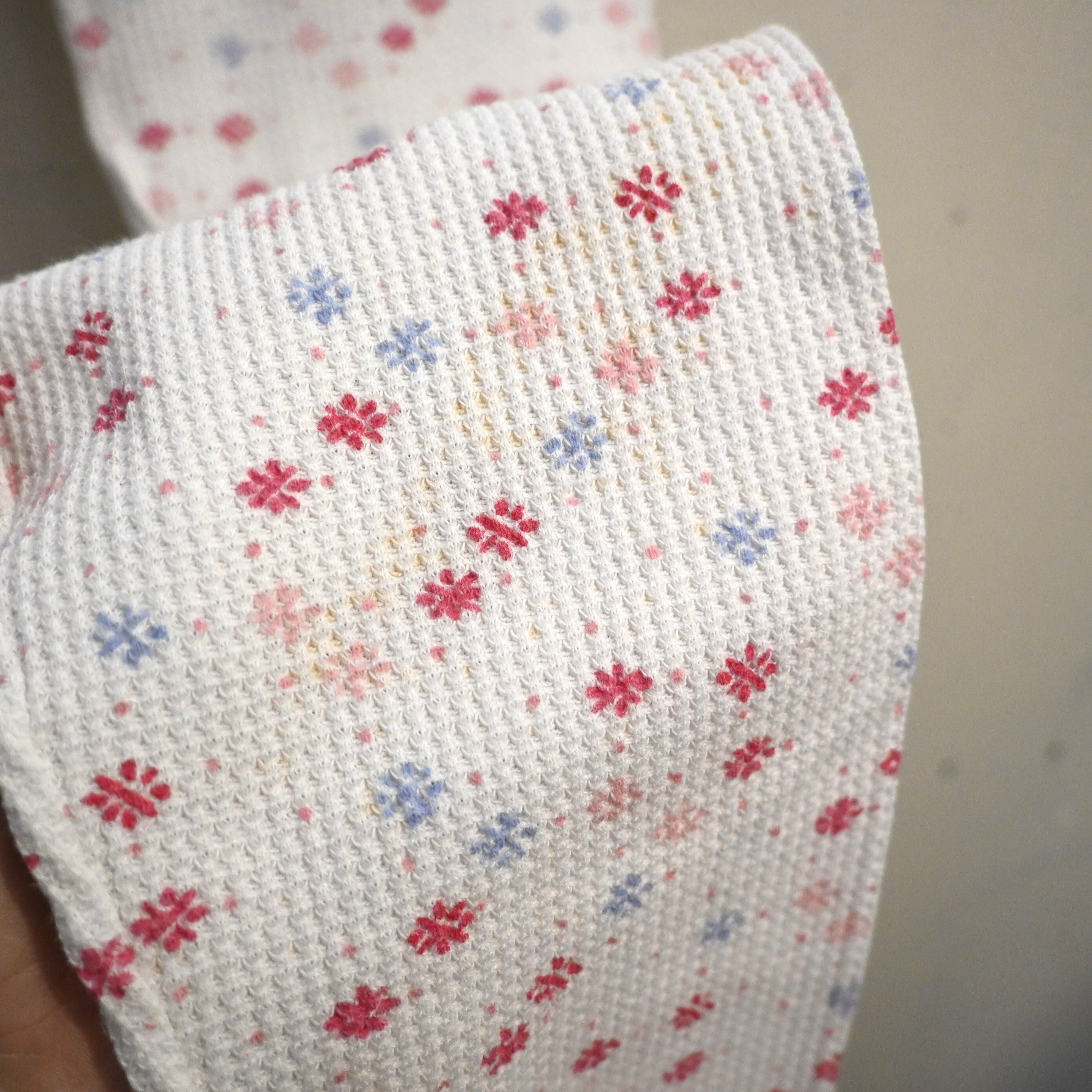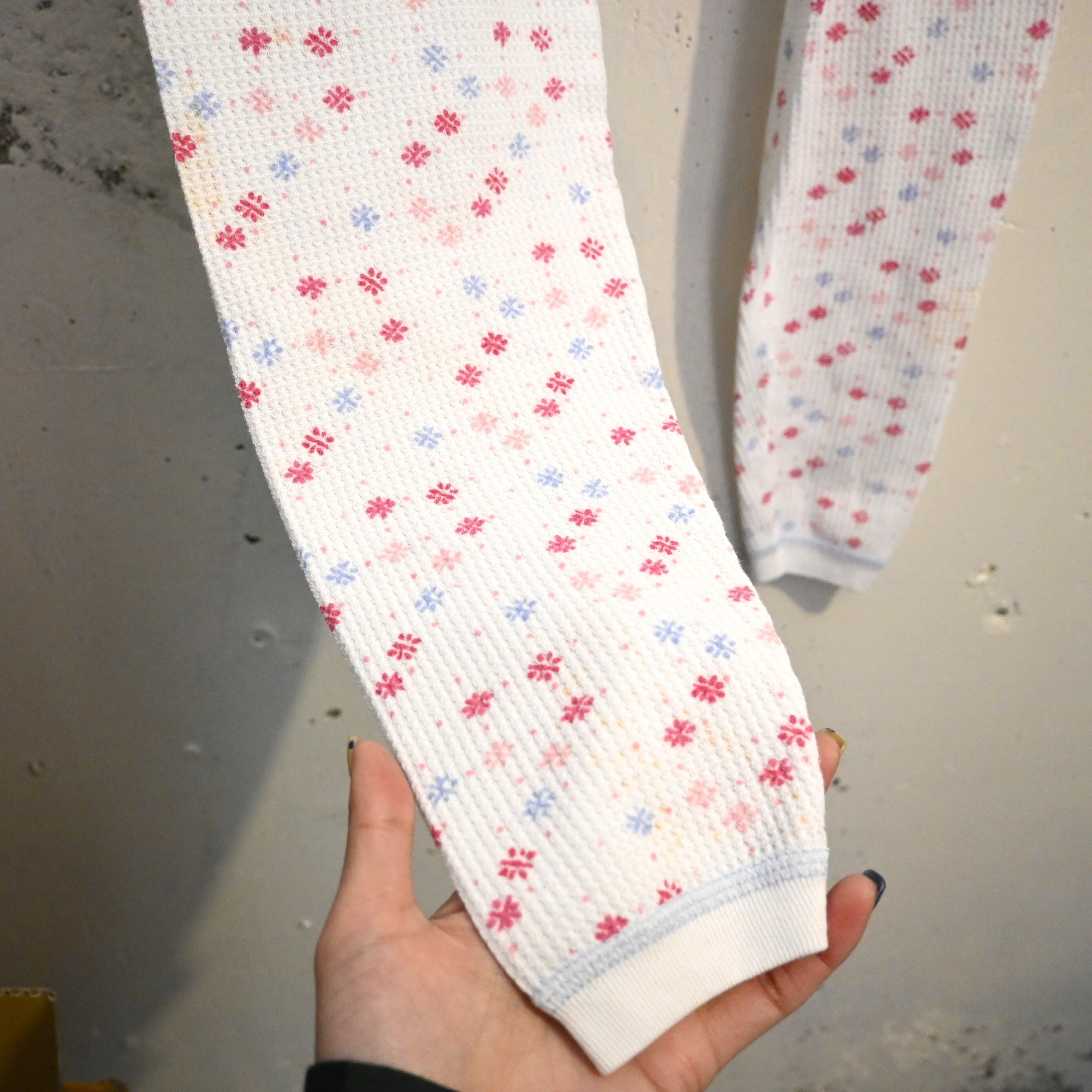 ワッフル状のサーマル生地に、小花柄が散りばめられた雰囲気の良い一本です。