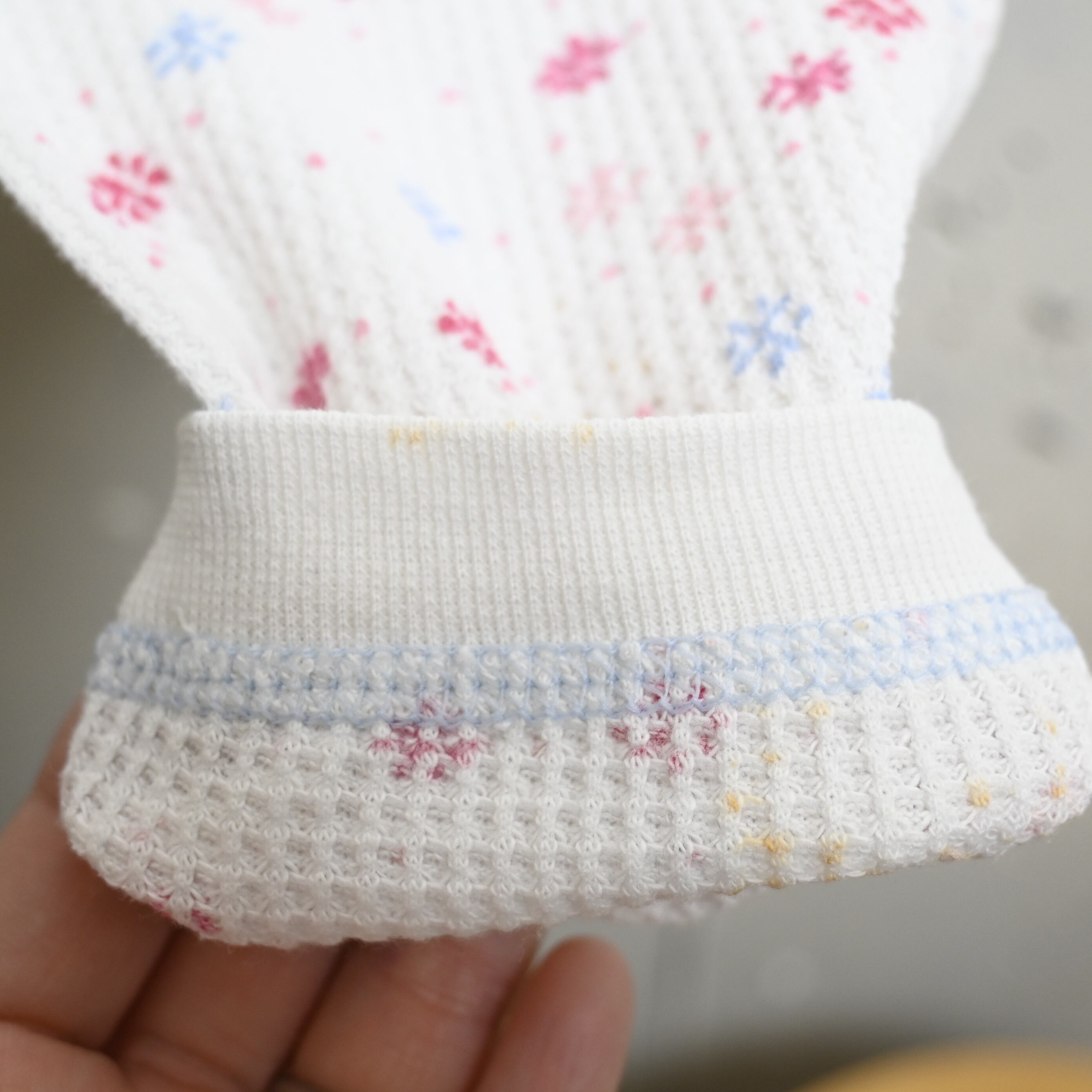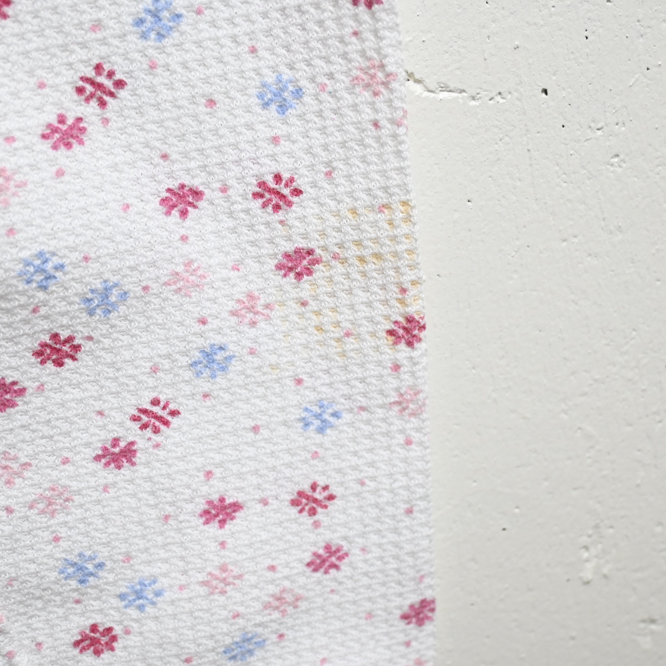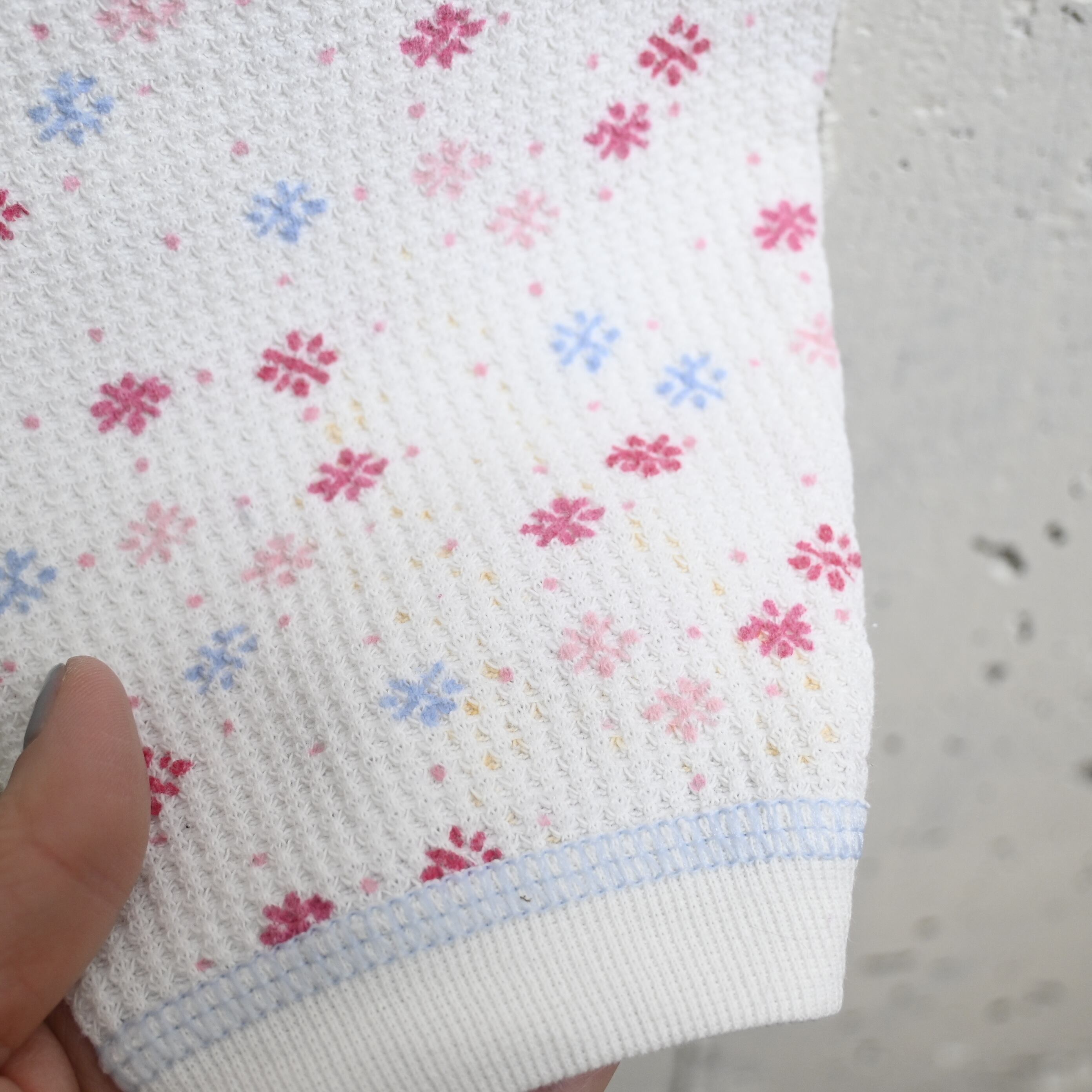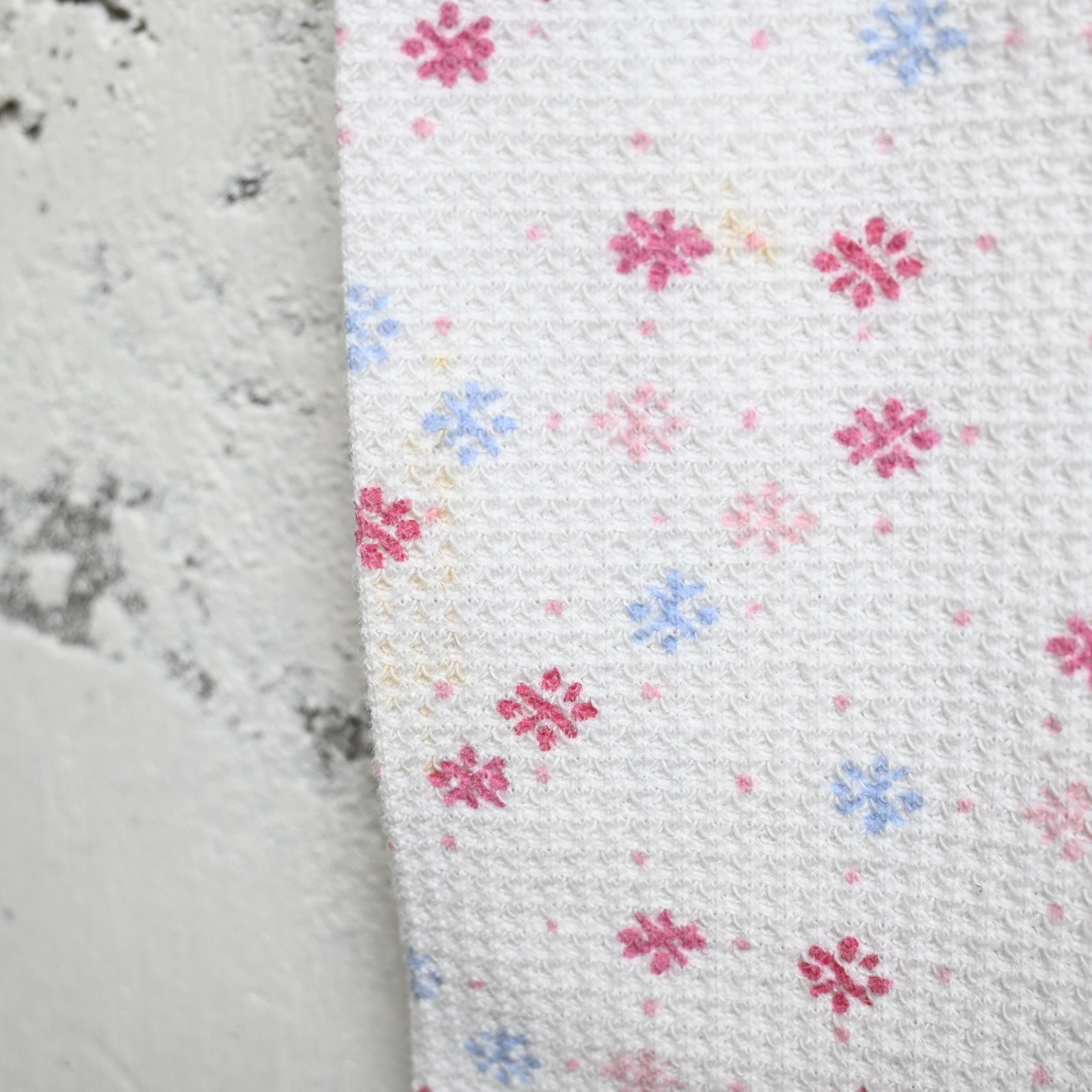 ワッフル状のサーマル生地に、小花柄が散りばめられた雰囲気の良い一本です。
