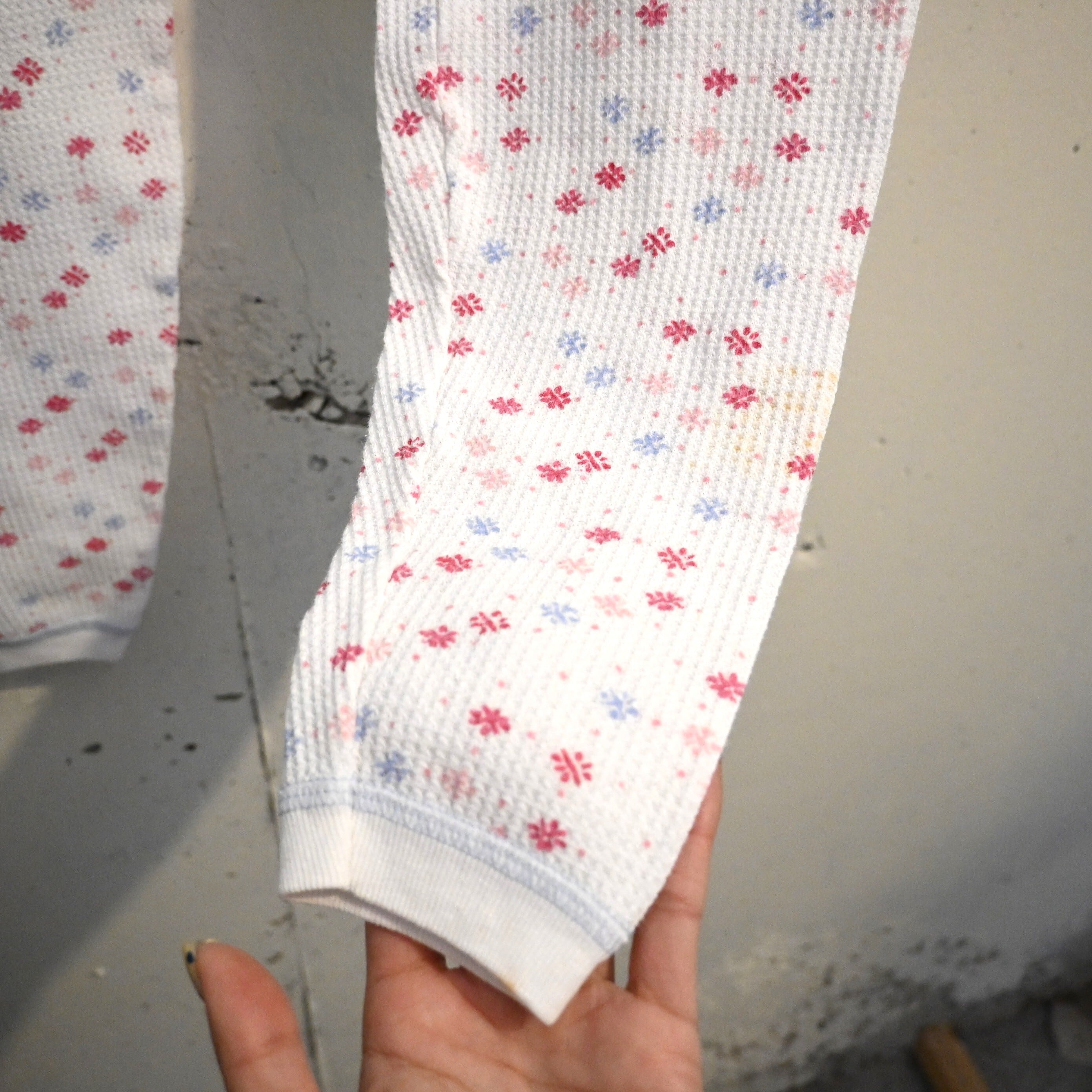 無地のサーマルパンツは比較的見つかりますが、このような花柄(フローラルパターン)は球数が少なく古着市場でも年々見つかりにくくなっているアイテム。