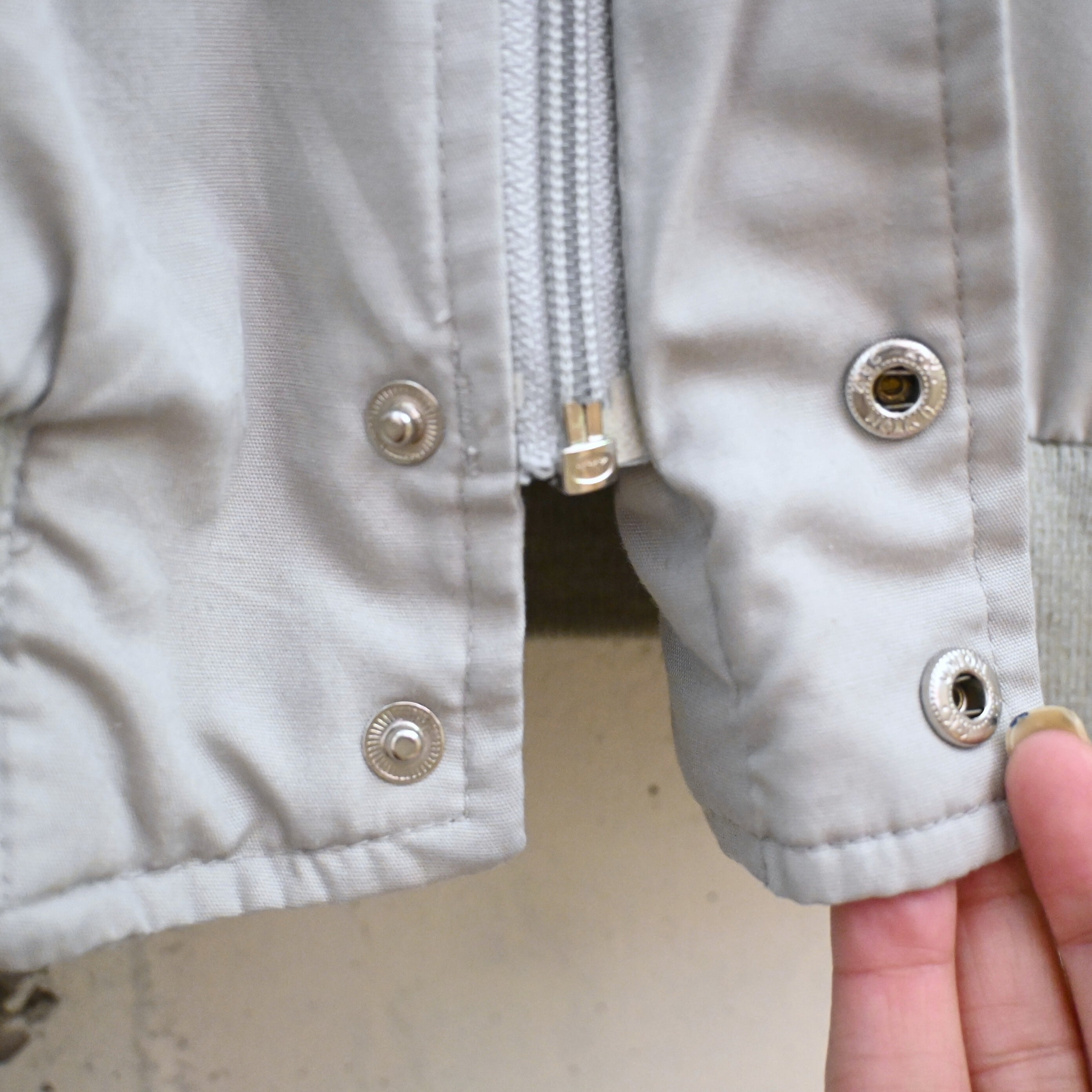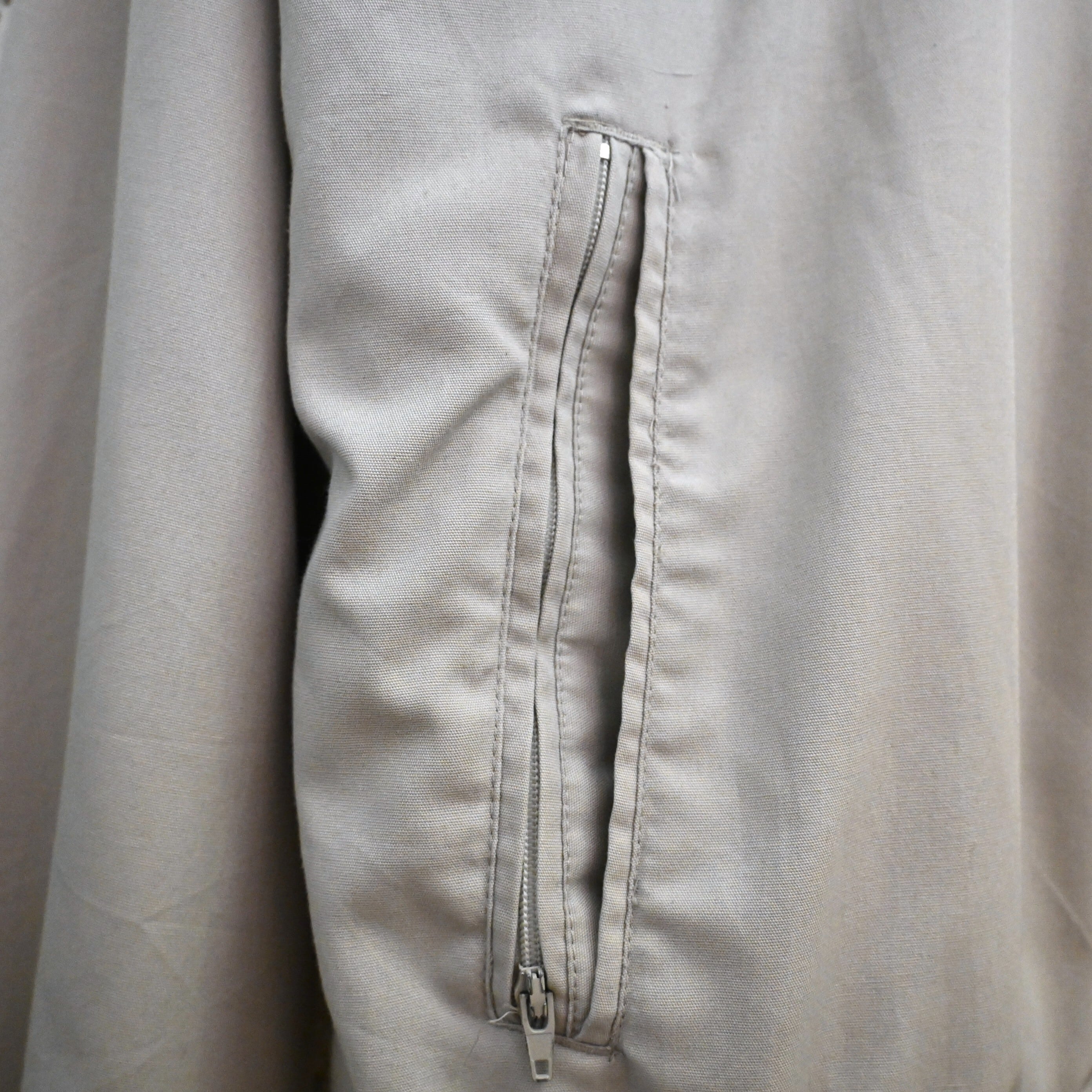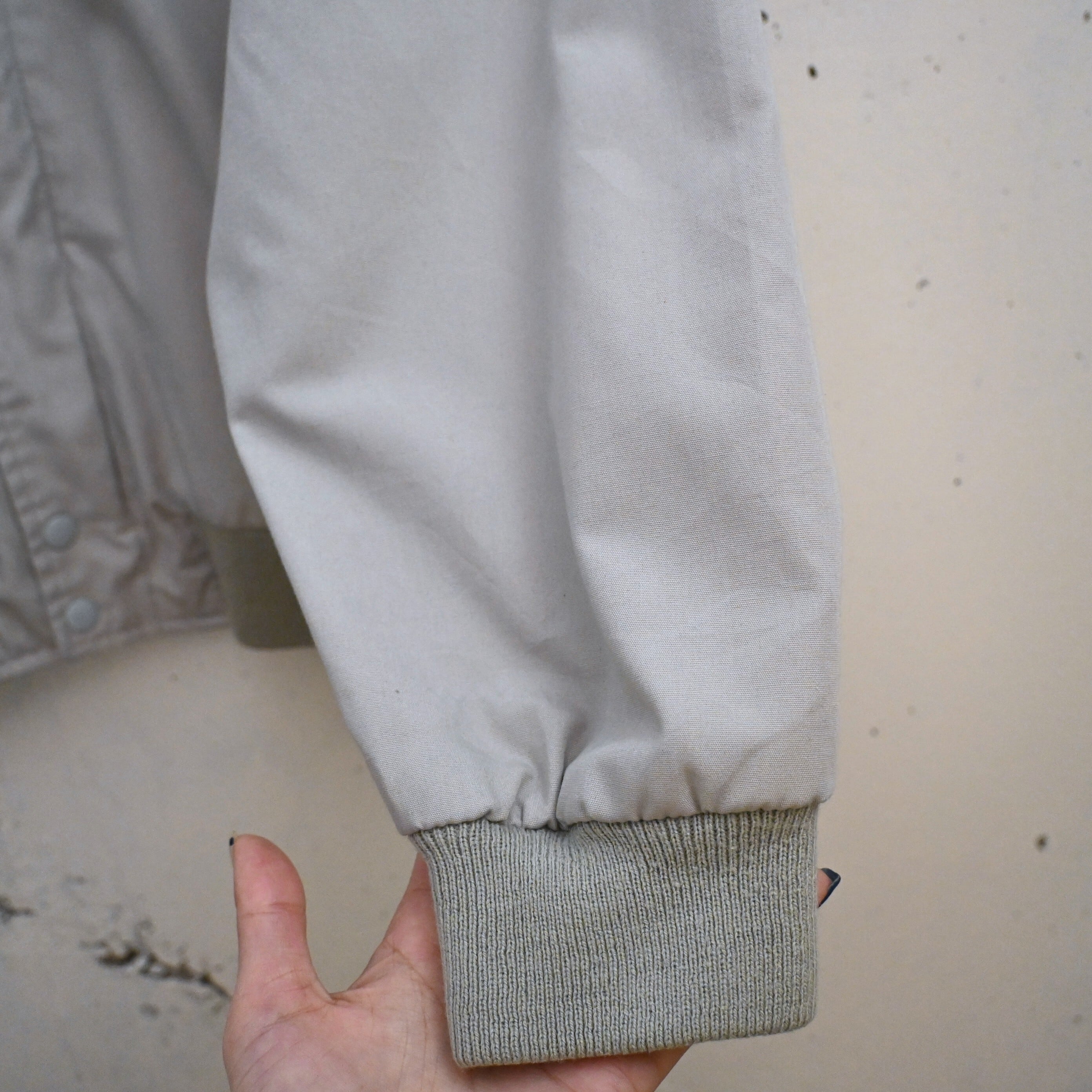 表地はポリエステル×コットン混紡で軽く扱いやすく、裏地にはナイロンを採用。春秋の軽アウターとして非常に使いやすく、アメリカ古着らしい何気ない雰囲気を楽しめる一着です。