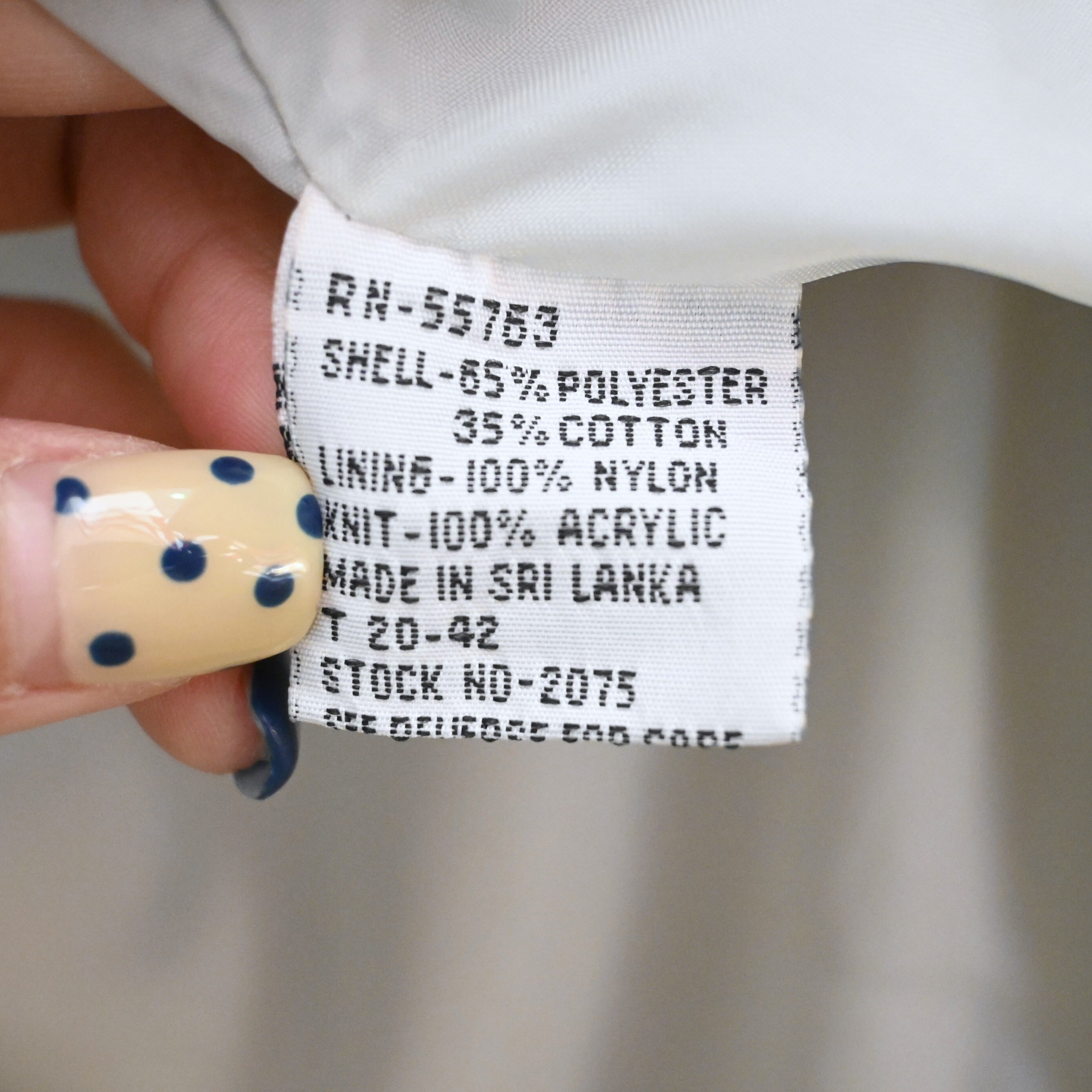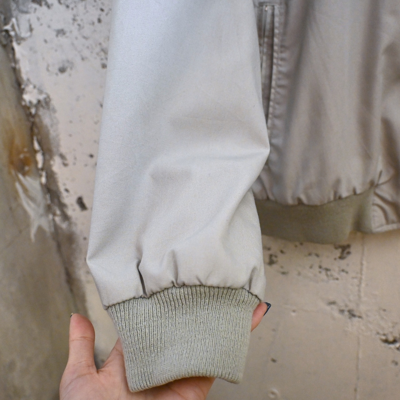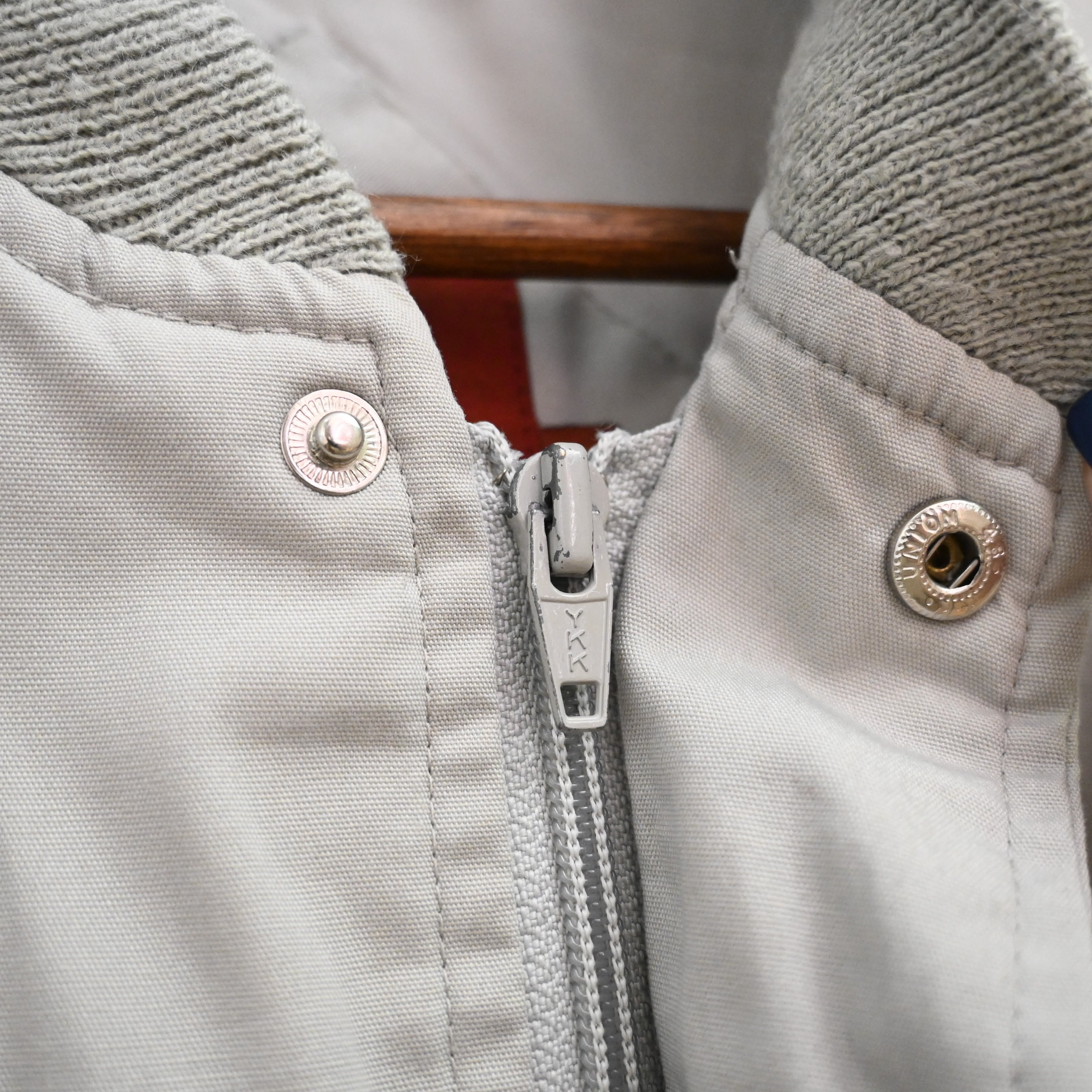 表地はポリエステル×コットン混紡で軽く扱いやすく、裏地にはナイロンを採用。春秋の軽アウターとして非常に使いやすく、アメリカ古着らしい何気ない雰囲気を楽しめる一着です。