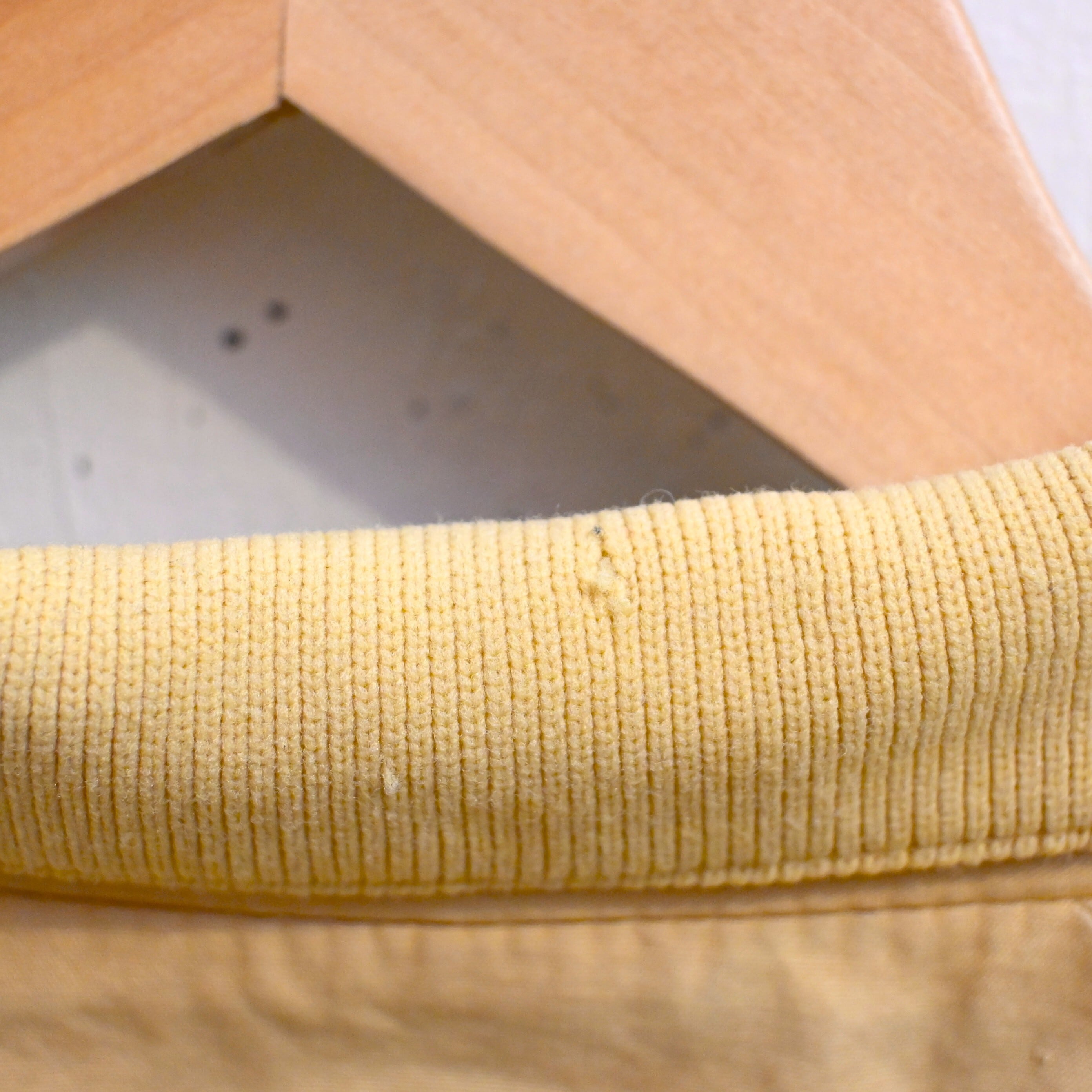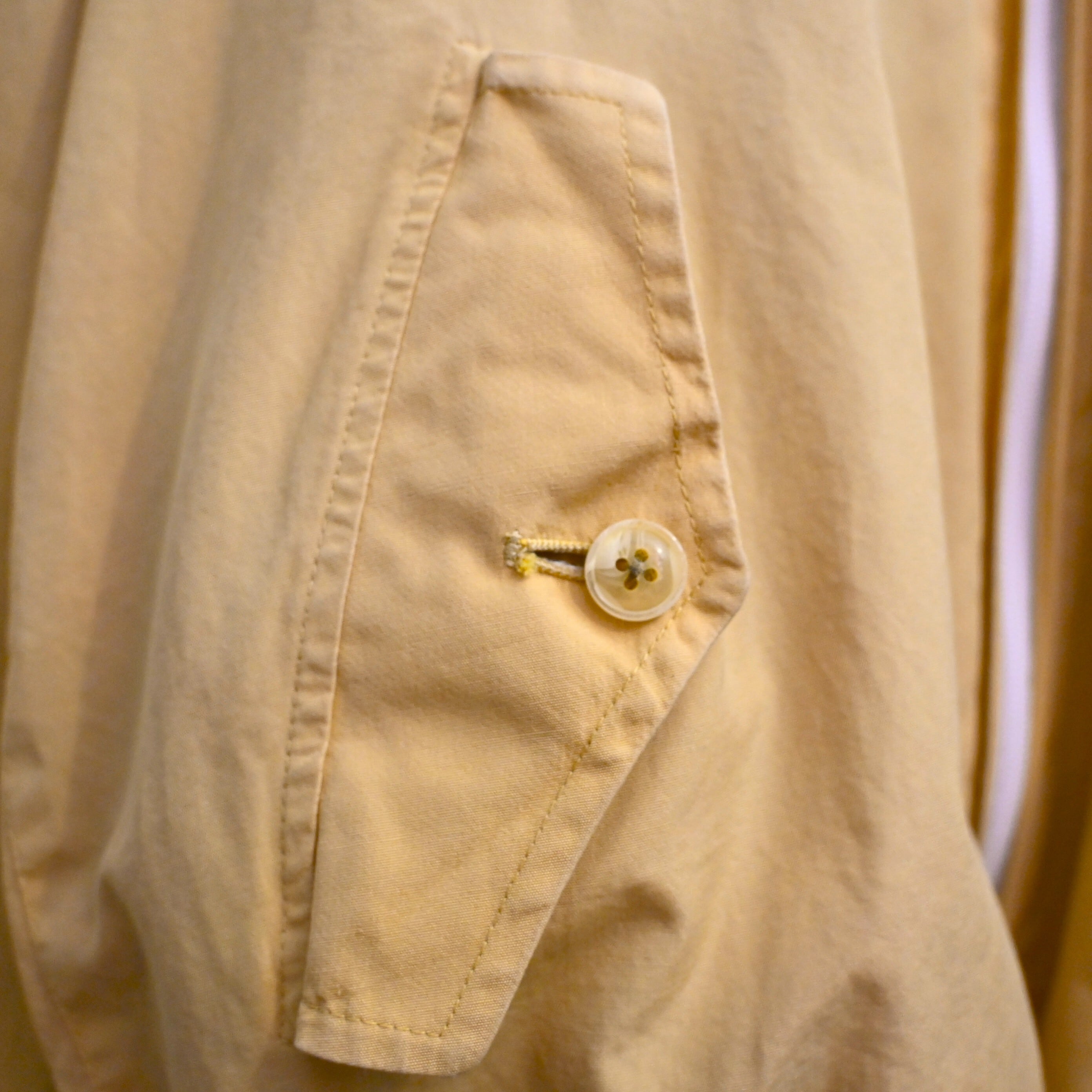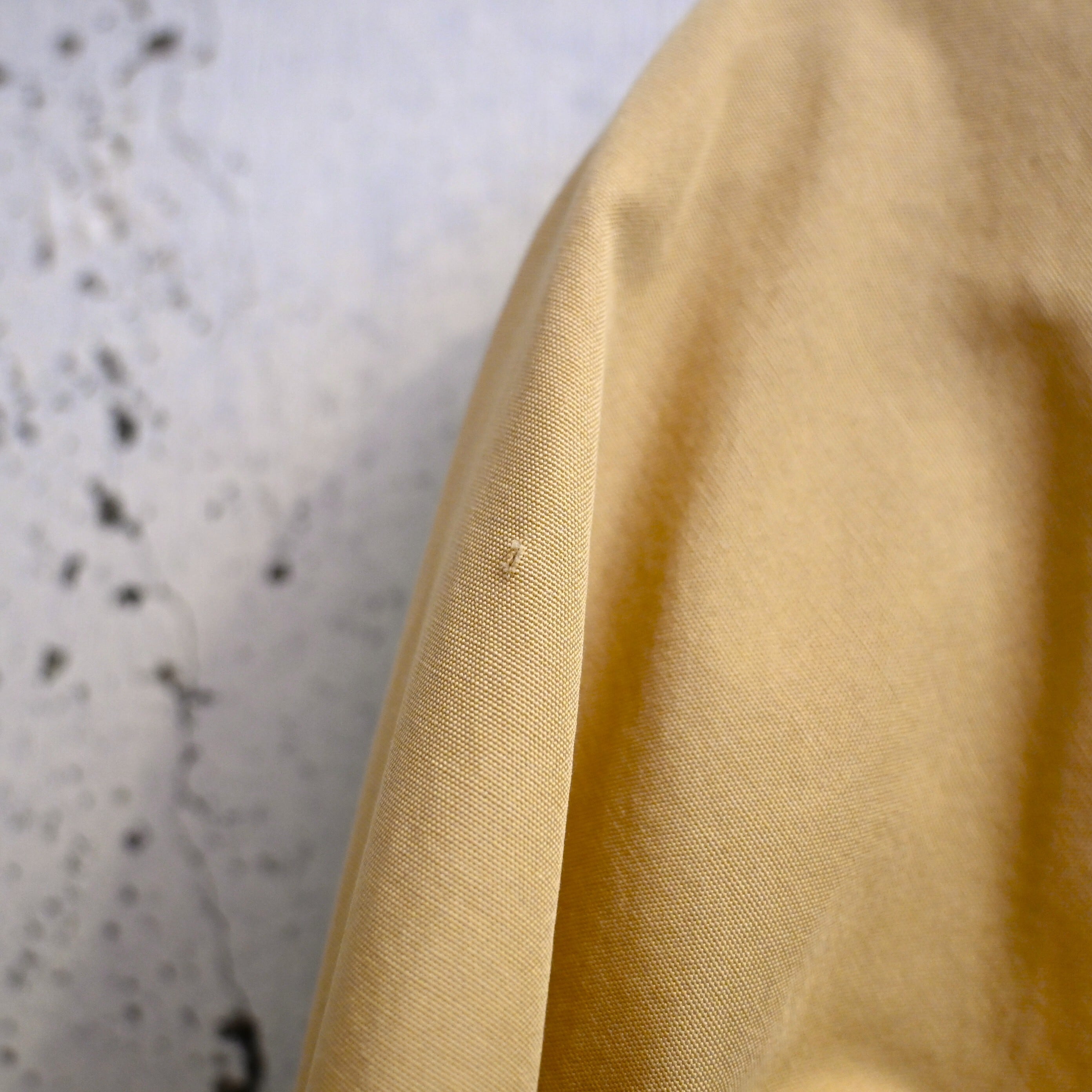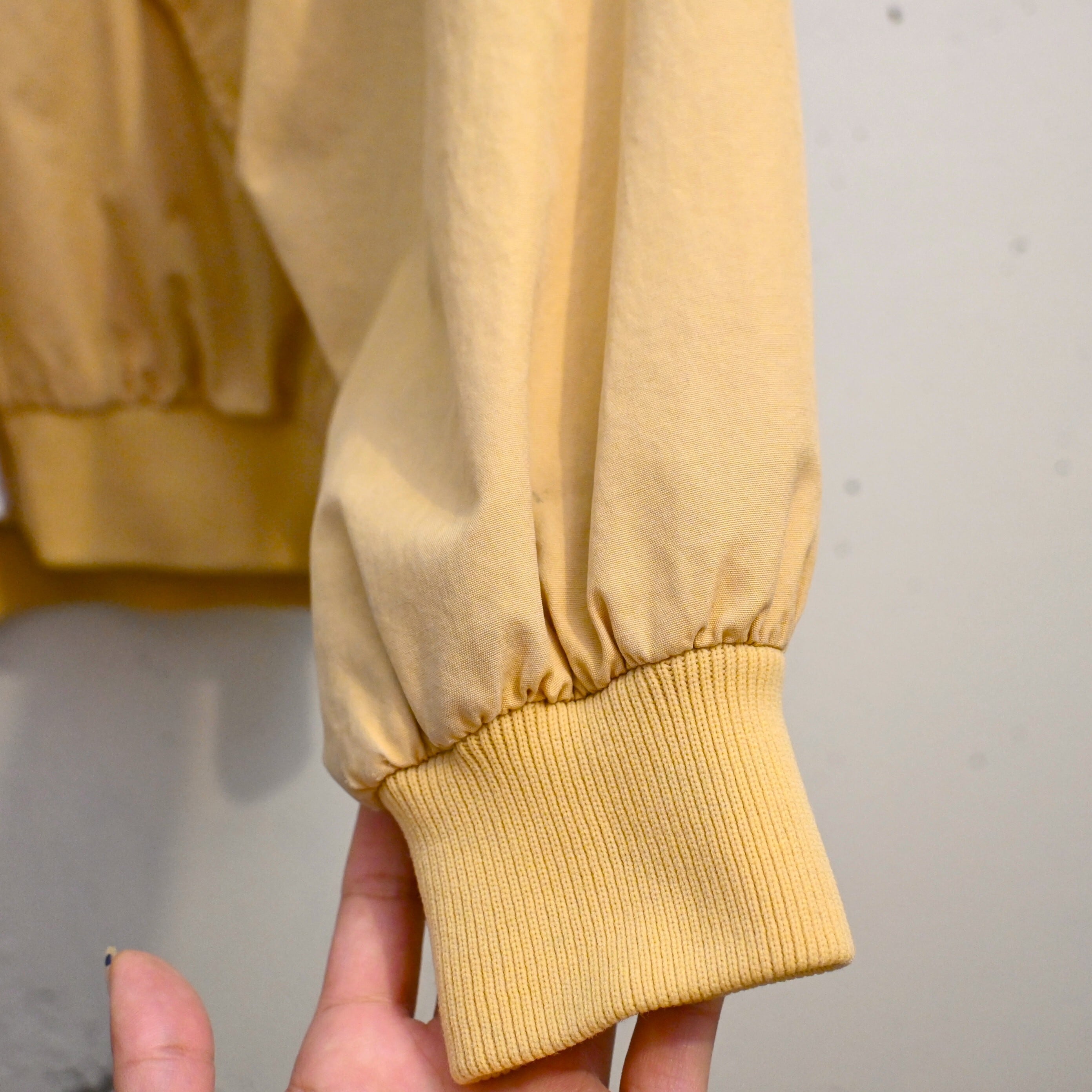カラーはやわらかなイエロー。定番のネイビーやベージュとはまた違い、ヴィンテージらしい柔らかな発色で、デニムや軍パン、チノとの相性も非常に良く、春先にも映える色味です。
