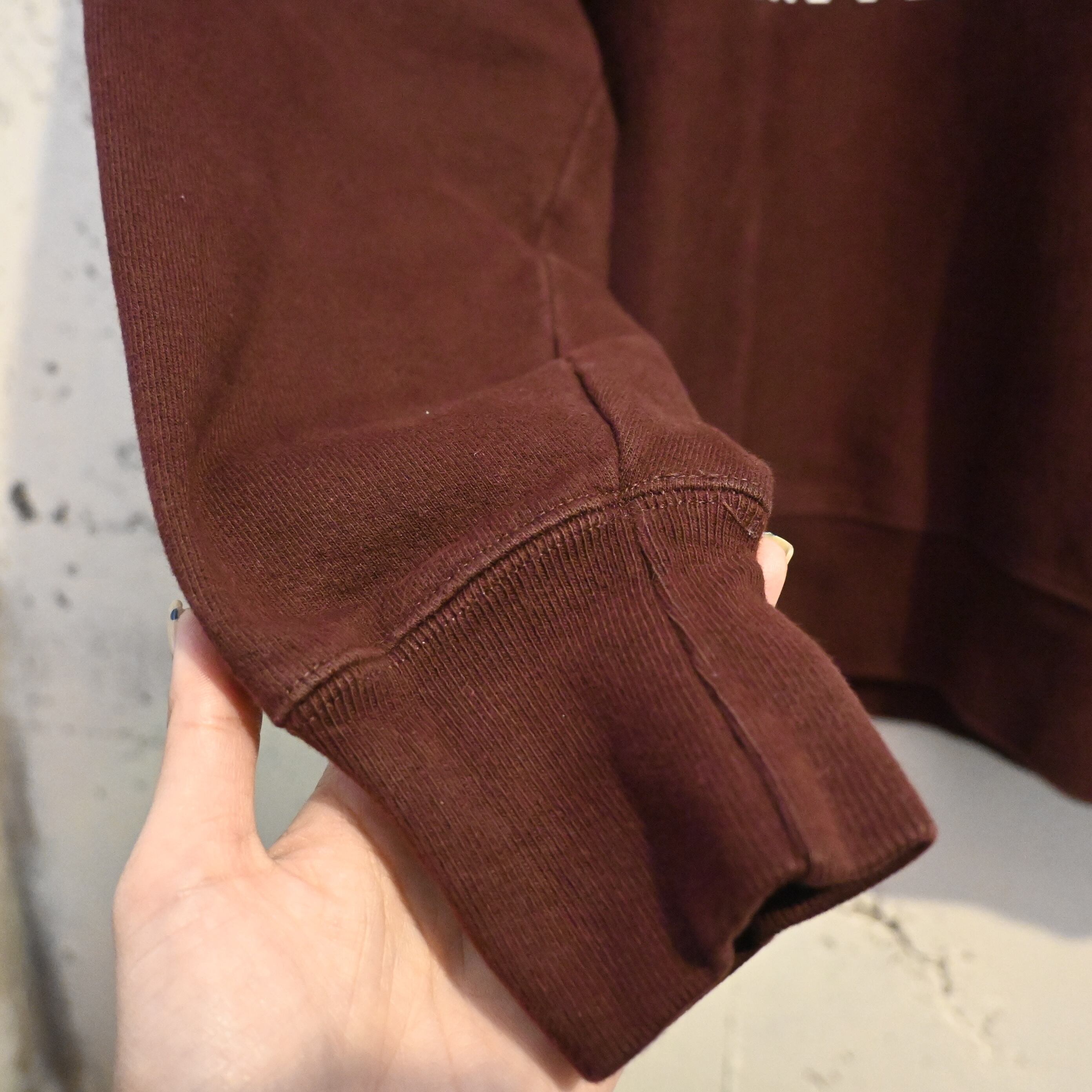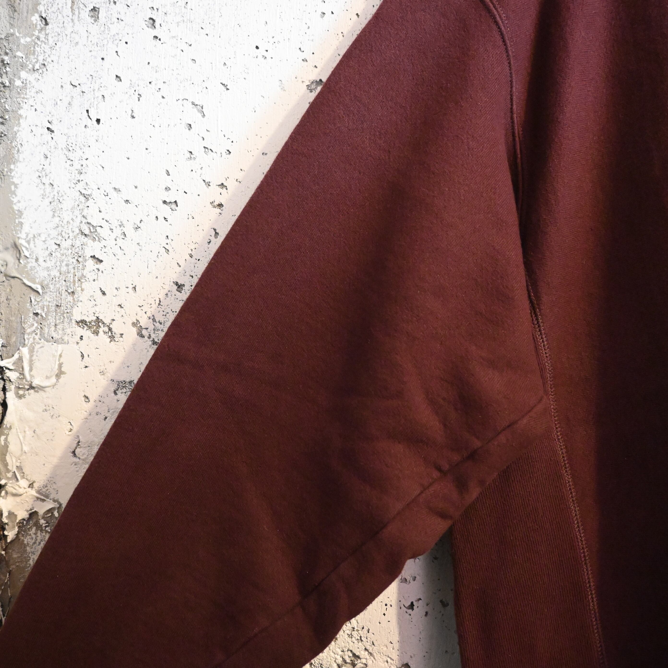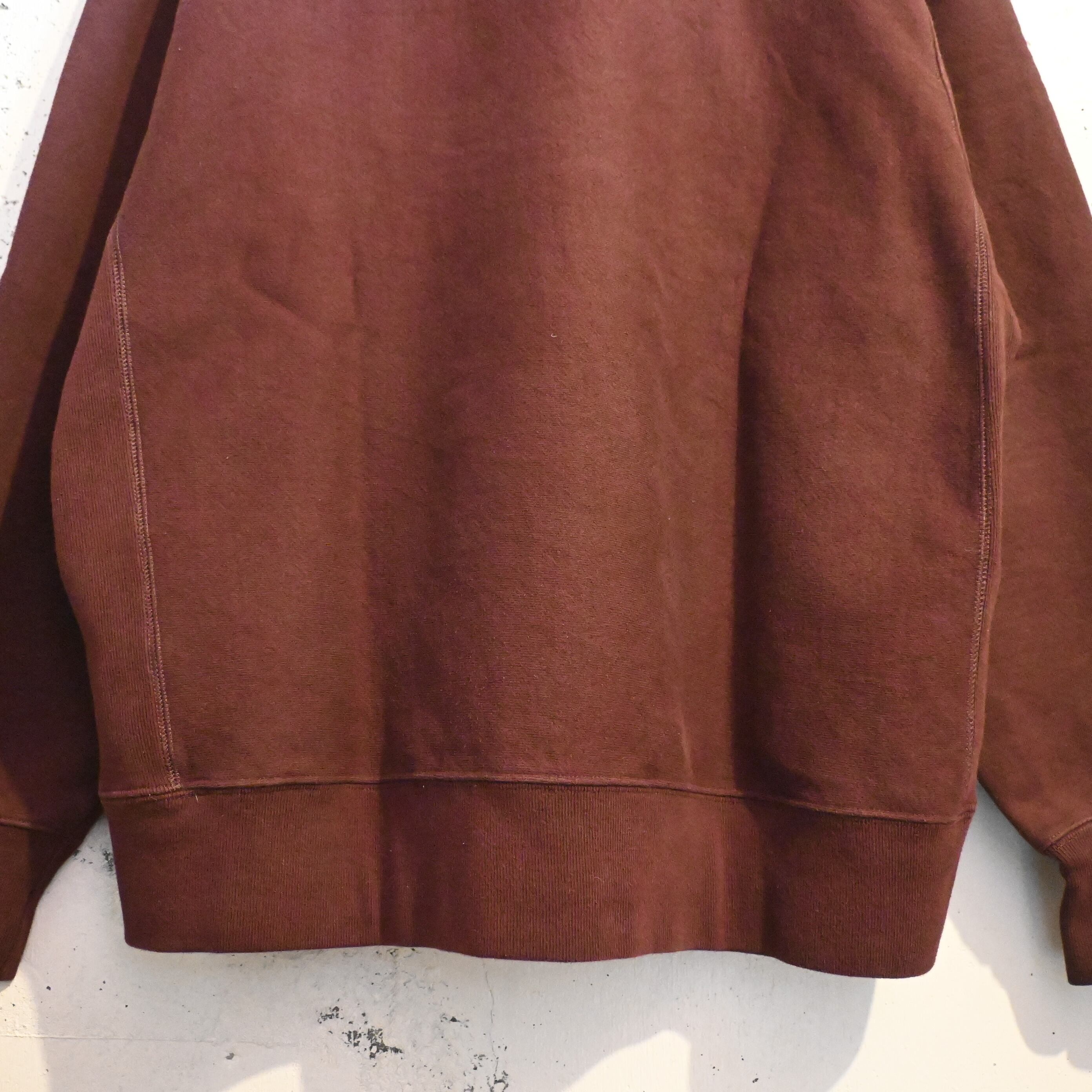 1930年代にChampionが開発した製法で、通常縦方向に使用されるスウェット生地を 横方向に使用することで縦縮みを軽減。さらに両脇には エクスパンションガゼット(サイドリブ) が入り、動きやすさと耐久性を高めた構造が特徴です。